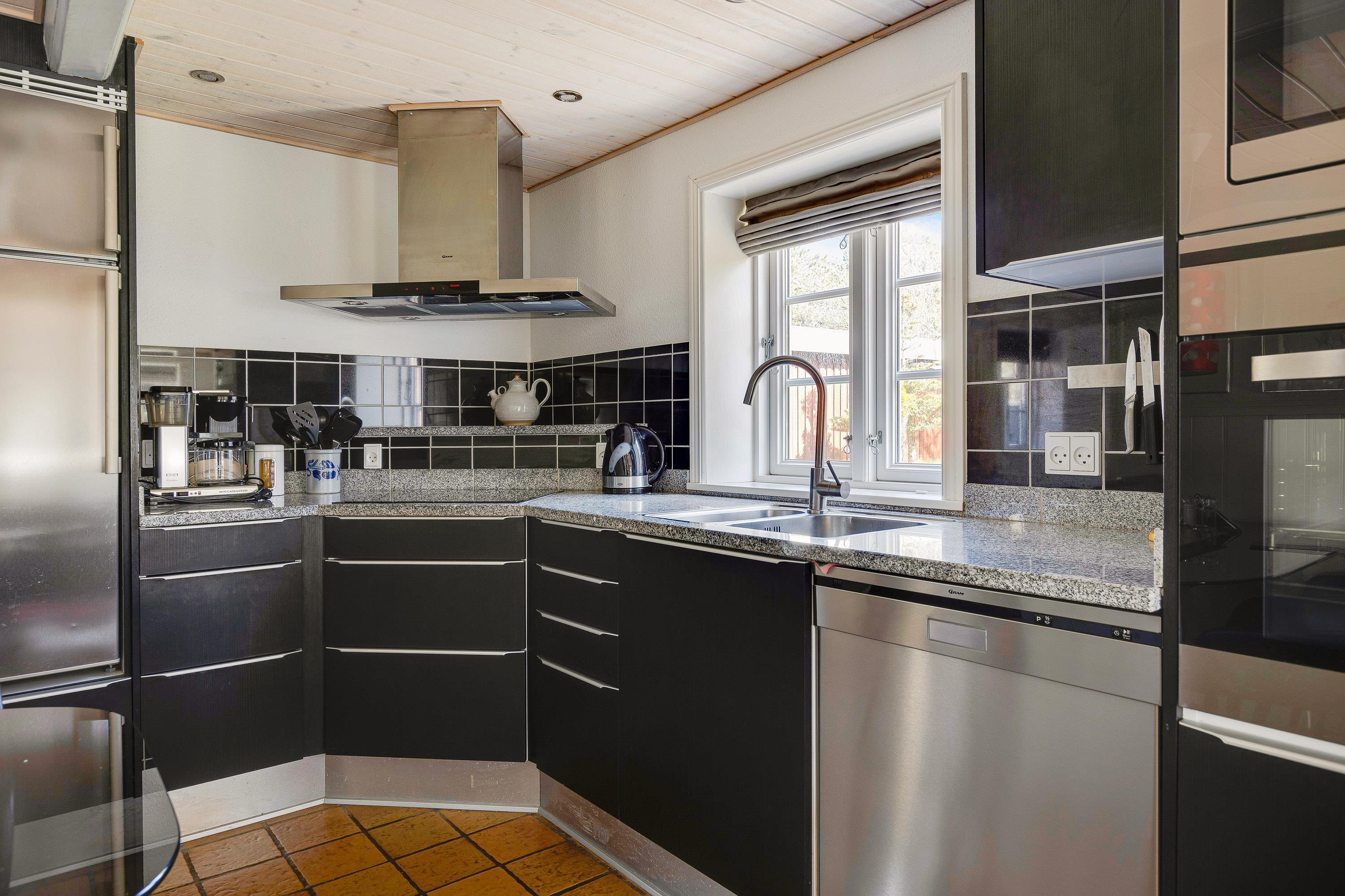 I kan tilberede en lækker middag i det veludstyrede køkken, som både har opvaskemaskine og mikroovn.