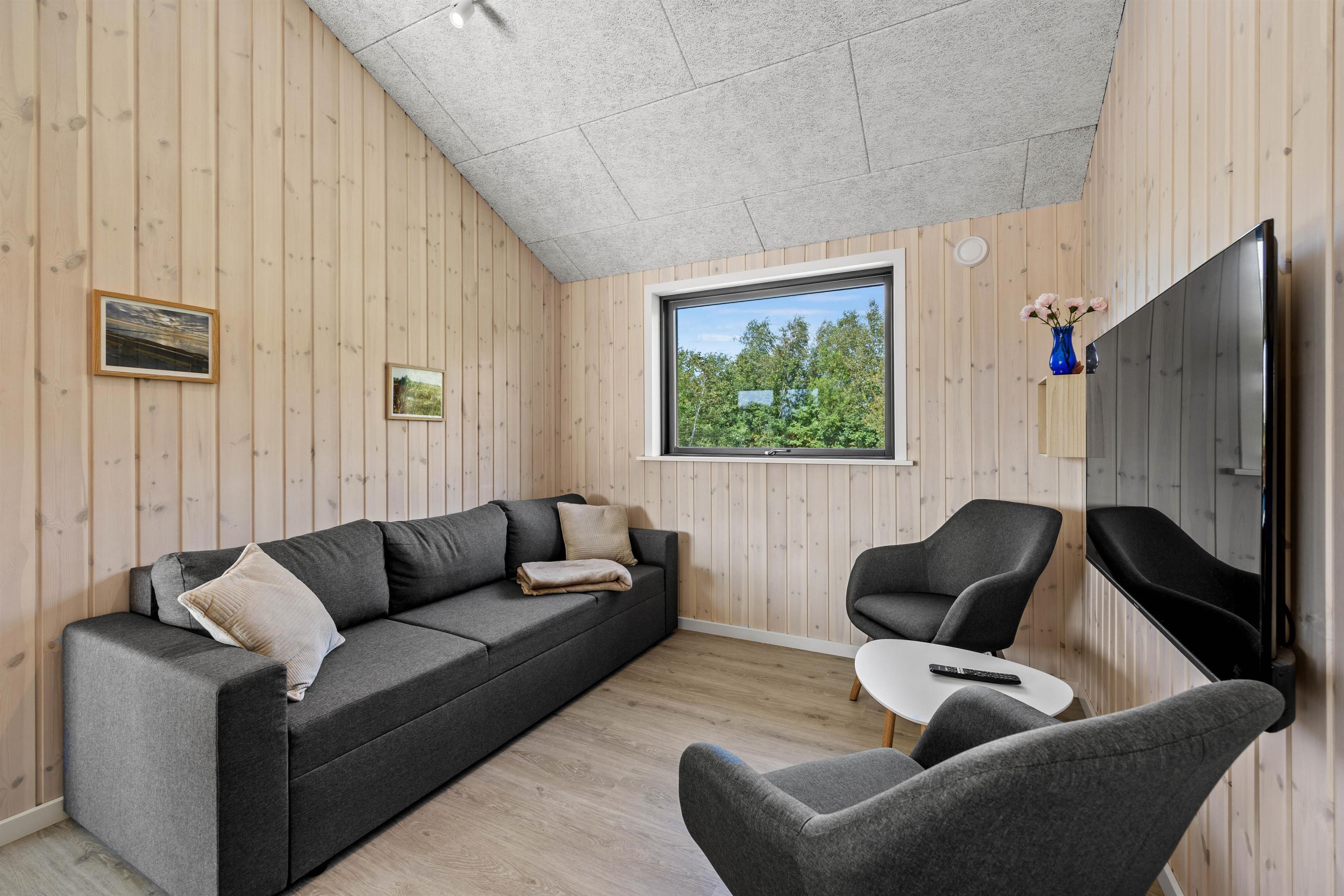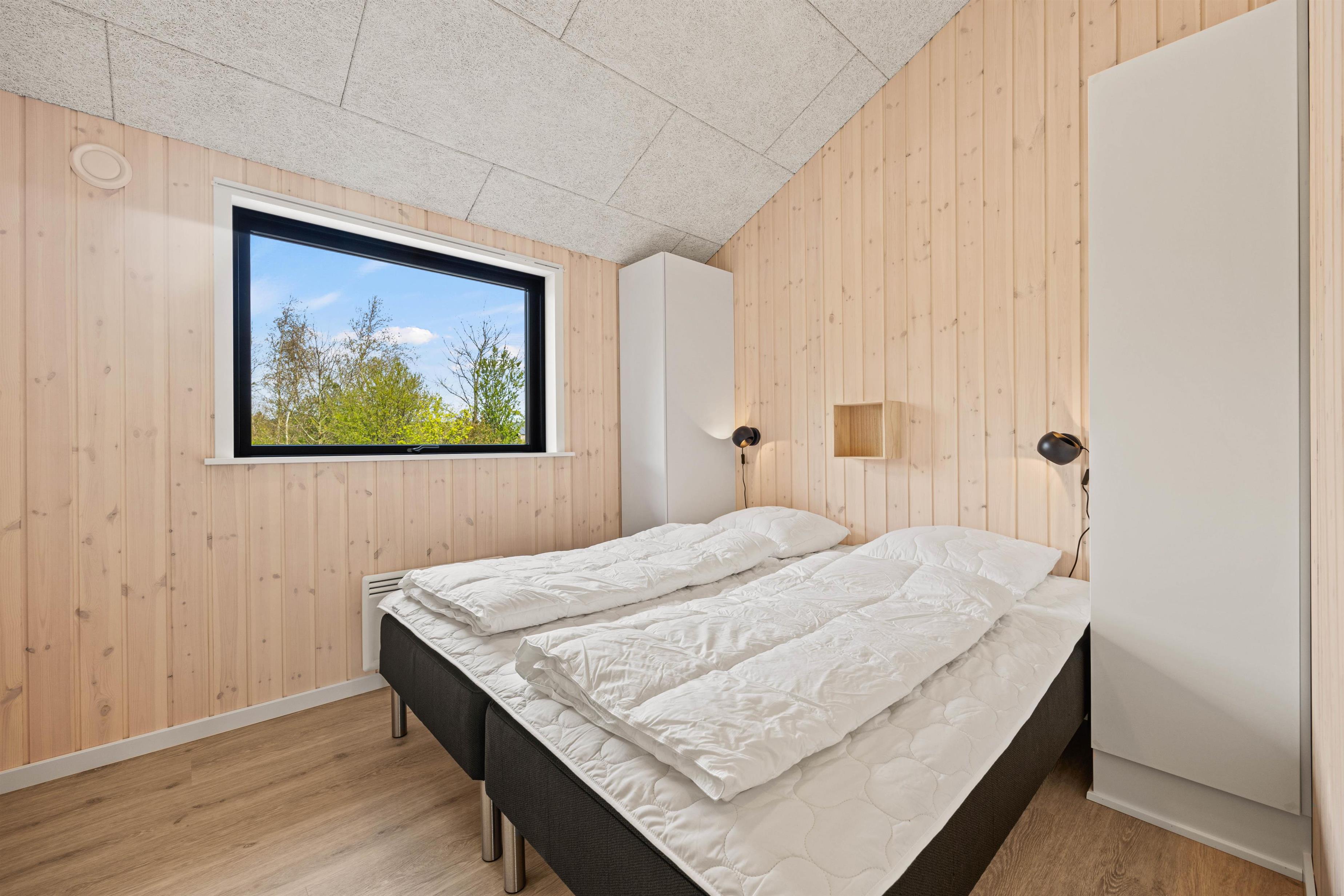 De 2 badeværelser med gulvvarme er praktisk indrettet, så I ikke behøver at stå i kø til tandbørstningen. Der er komfortable dobbeltsenge i de 4 rummelige soveværelser (2 enkeltsenge skubbet sammen til dobbeltseng). Til de små er der højstol og barneseng. Desuden er der vaskemaskine og tørretumbler til rådighed for jer, så I hurtigt kan opfriske håndklæderne. Der er en energibesparende varmepumpe, som hurtigt og effektivt sørger for et behageligt indeklima og en god temperatur. Desuden er der ladestik til el-bilen ved sommerhuset (ABB, Type 2) - Ladekabel/Adapter mangler og skal medbringes af gæsten.