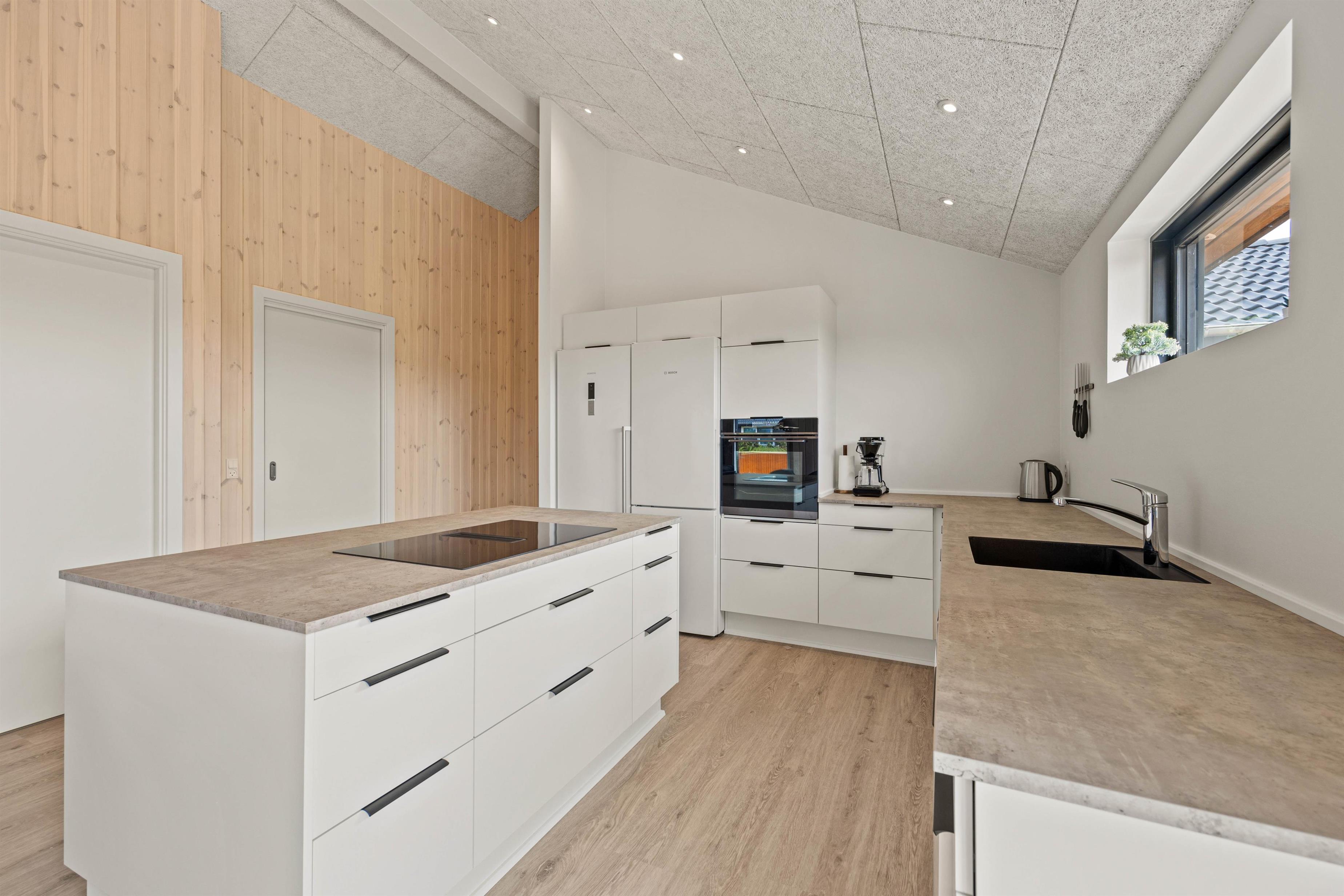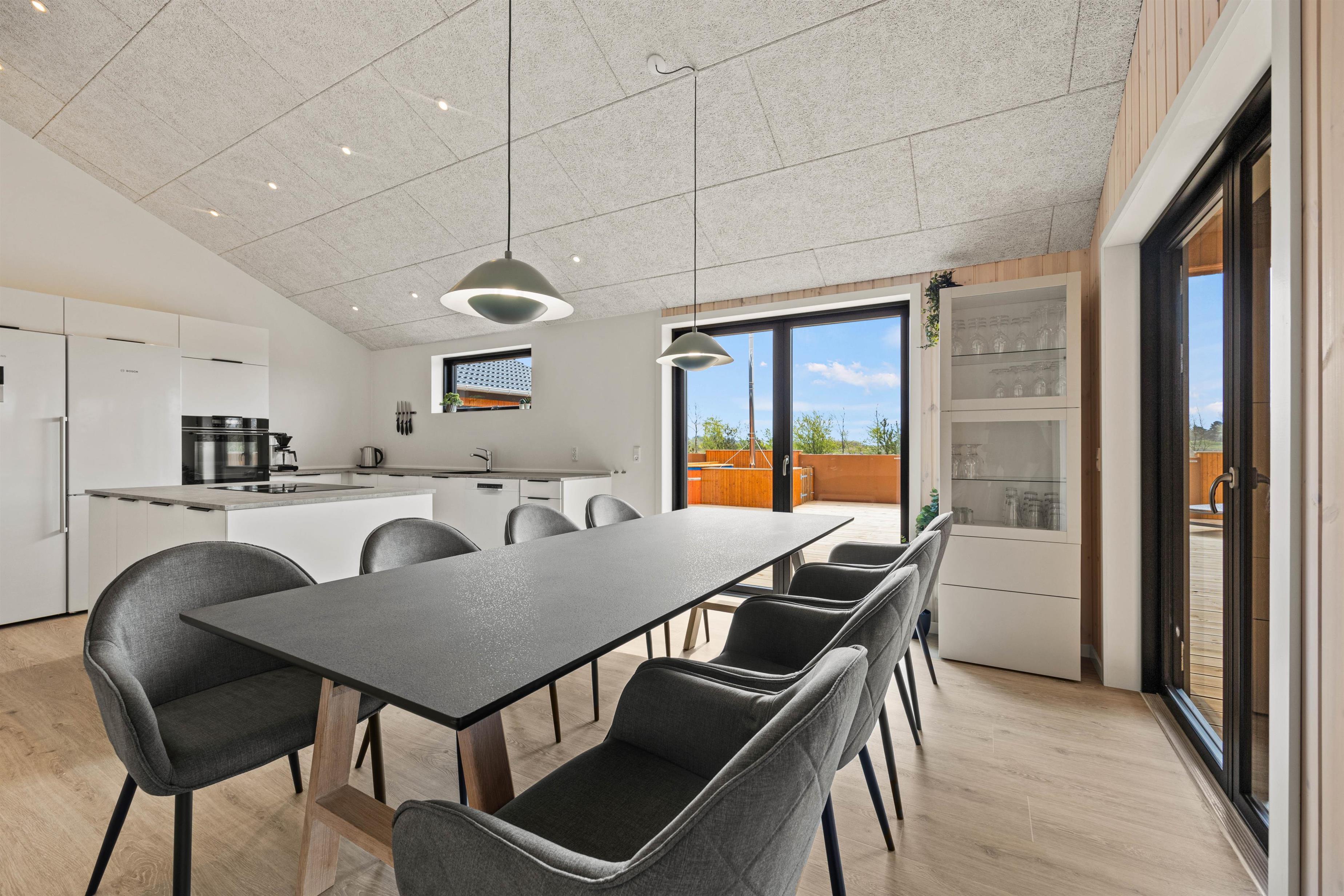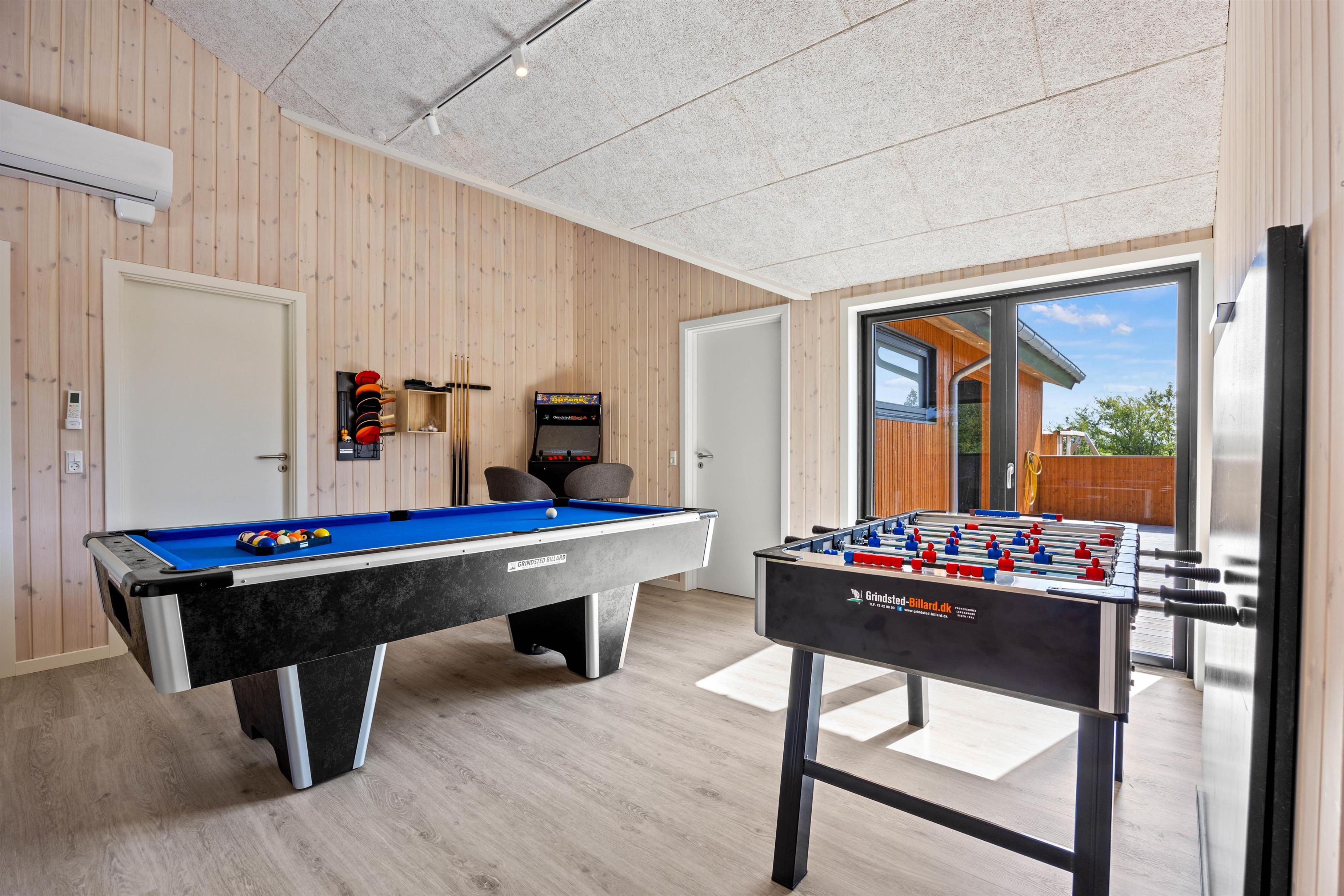 På Vestergårdsvænget 10 mærker I feriestemningen straks, I træder ind ad døren. De lyse gulve, vægge og lofter op i kip bidrager med et dejligt miljø, hvor I kan hygge jer sammen. Slap af i sofaen og nyd udsigten til terrassen, eller træk dig tilbage med en god bog. Ved spisebordet kan I spille om opvasken – selv om opvaskemaskinen tager det meste. Det åbne køkken i forbindelse med spisepladsen indeholder alt, hvad I behøver for at forkæle hinanden med hjemmelavede lækre måltider. Lad eventuelt teenagerne få en madaften, hvor de står for menuen. Er der konkurrencemennesker iblandt jer, kan I arrangere en poolturnering i aktivitetsrummet. Er I mere til afslapning, kan I se en film sammen via chromecast.