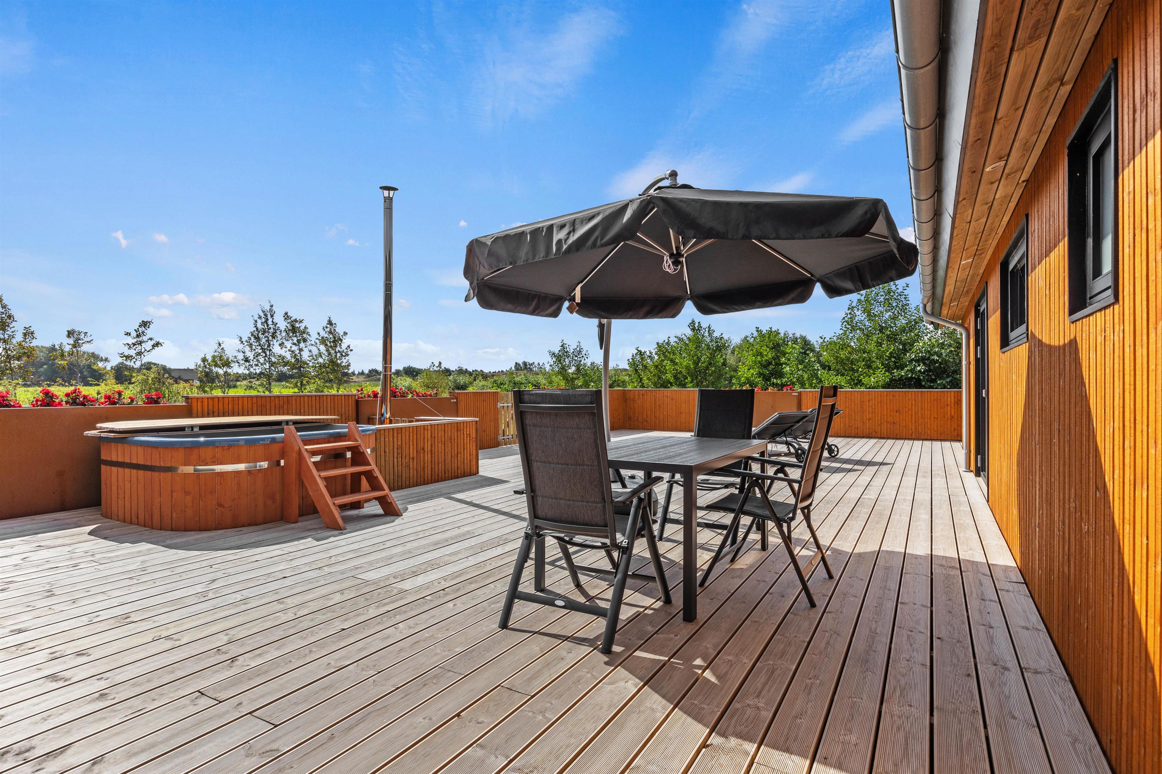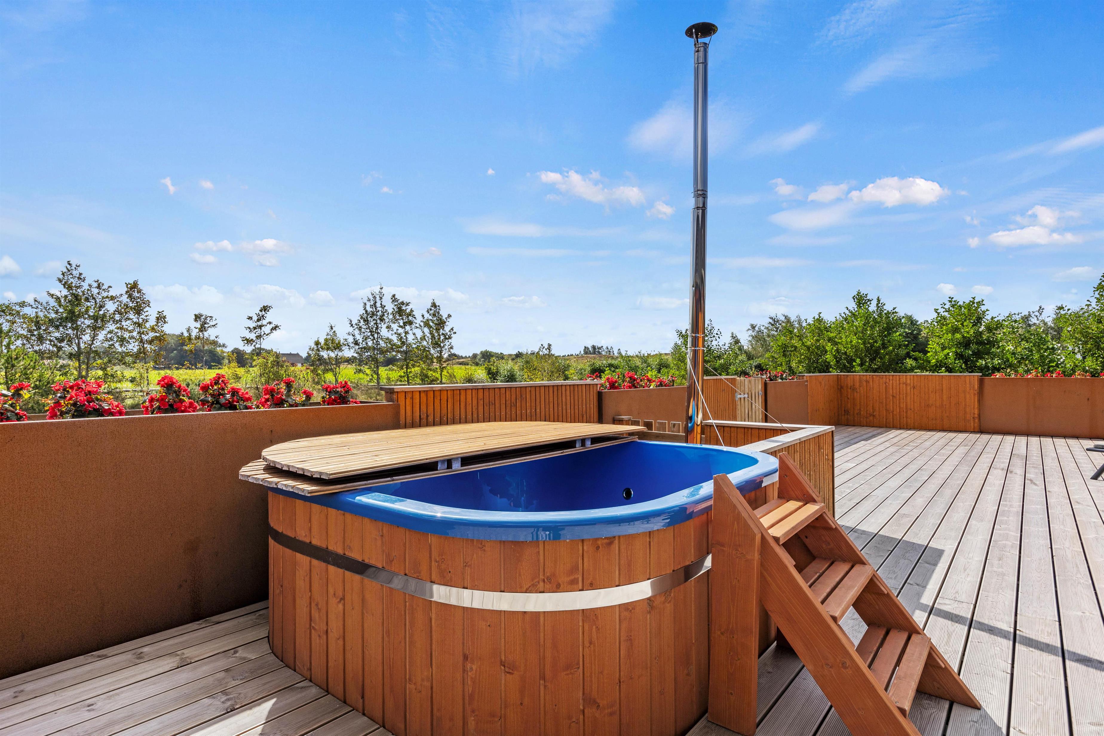 Lukket træterrasse med vildmarksbad