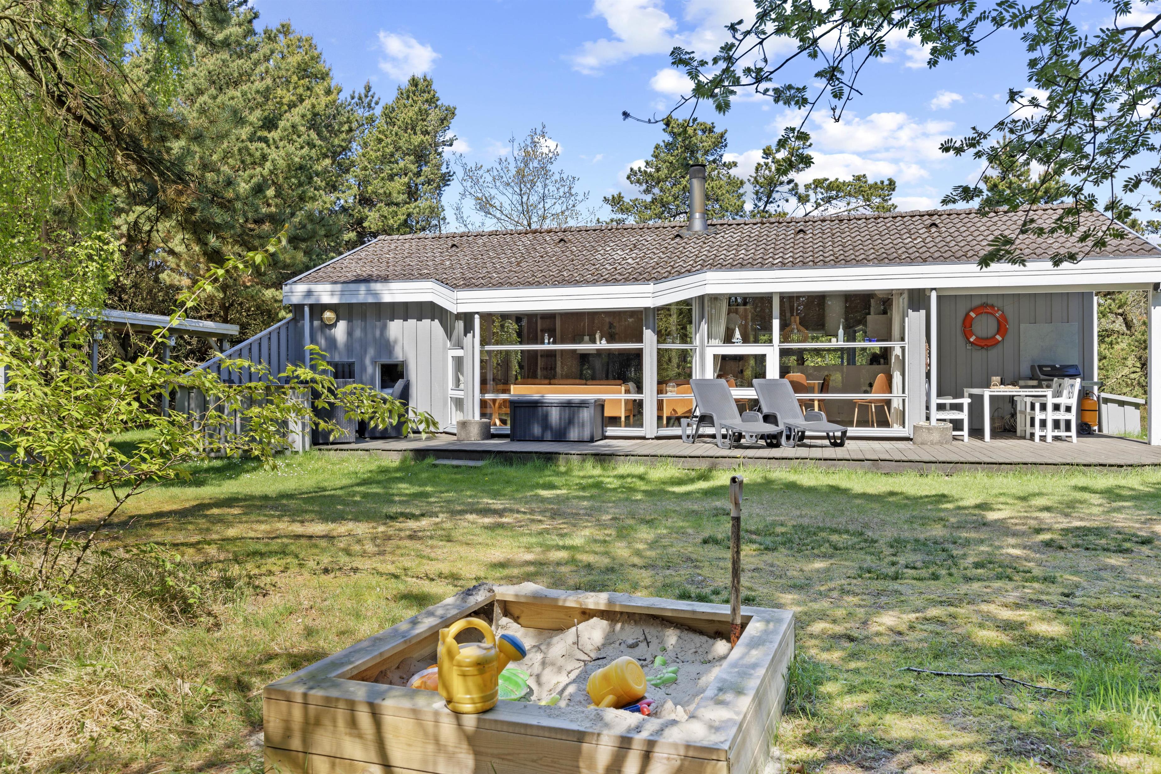 Træd ud på den delvist overdækkede terrasse, hvor I kan sætte jer tilbage og slappe af. Havemøblerne står klar til jer. Den grønne grund indbyder til leg, og familiens mindste kan få glæde af sandkassen samt gyngerne.