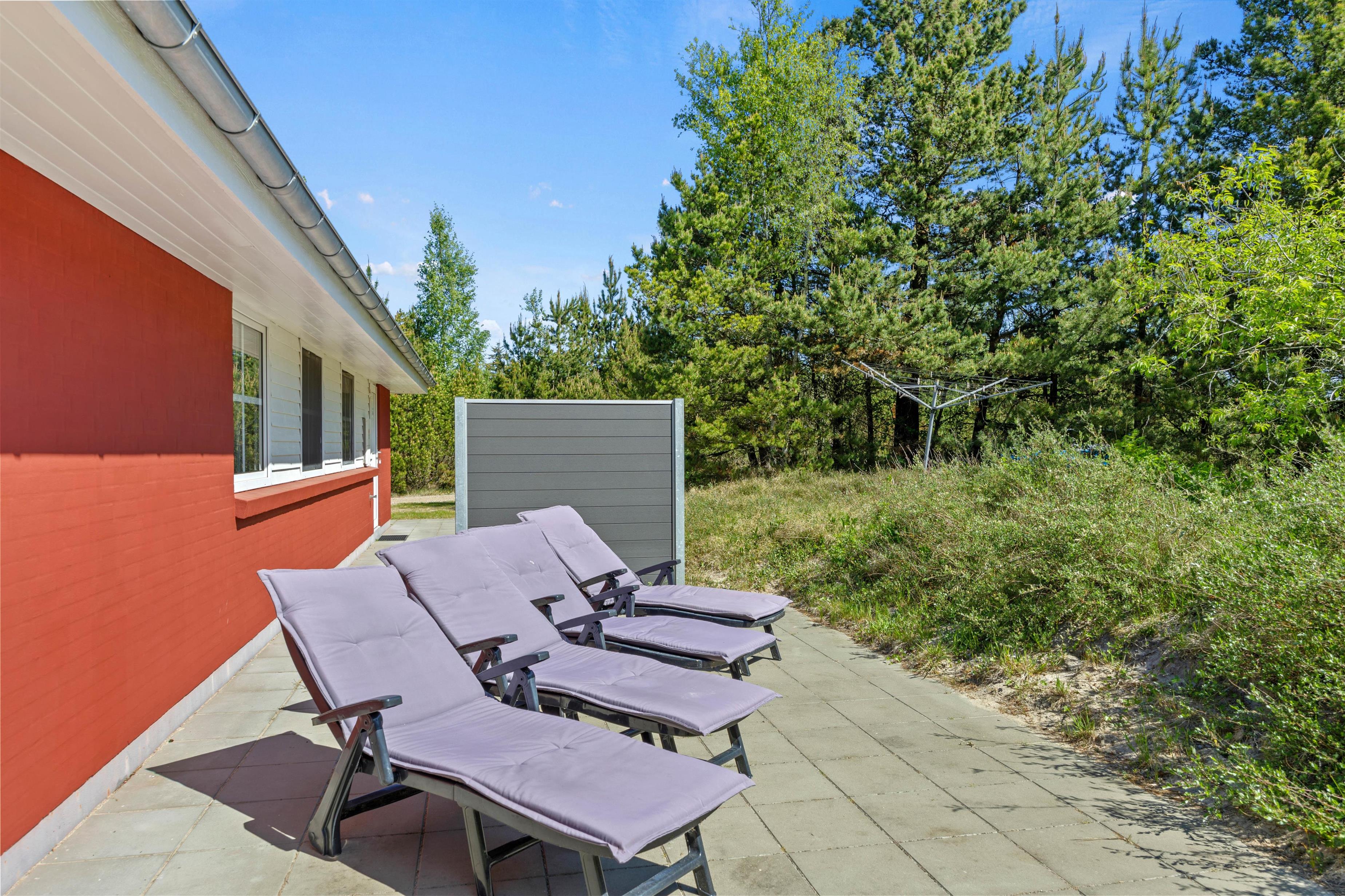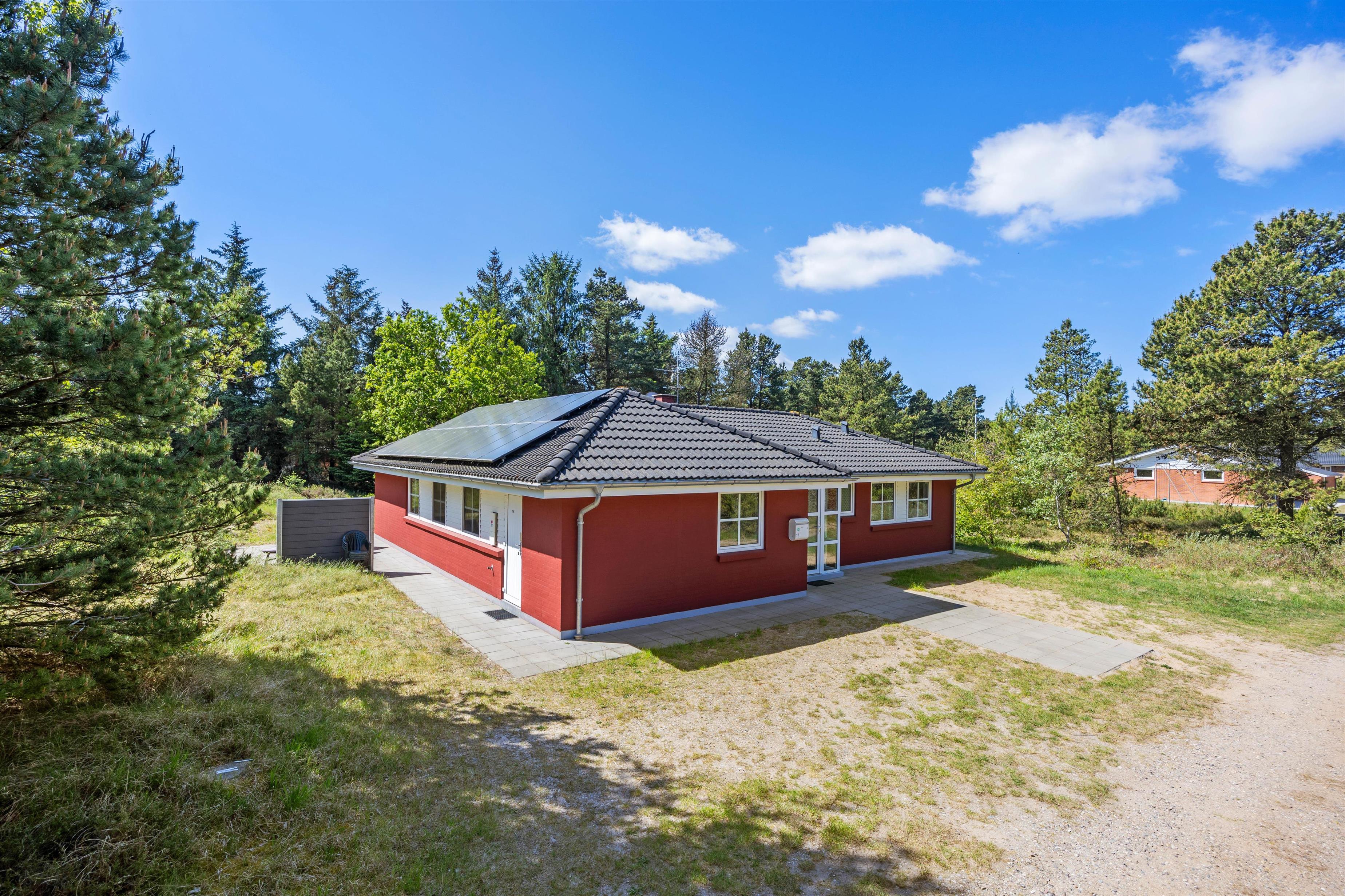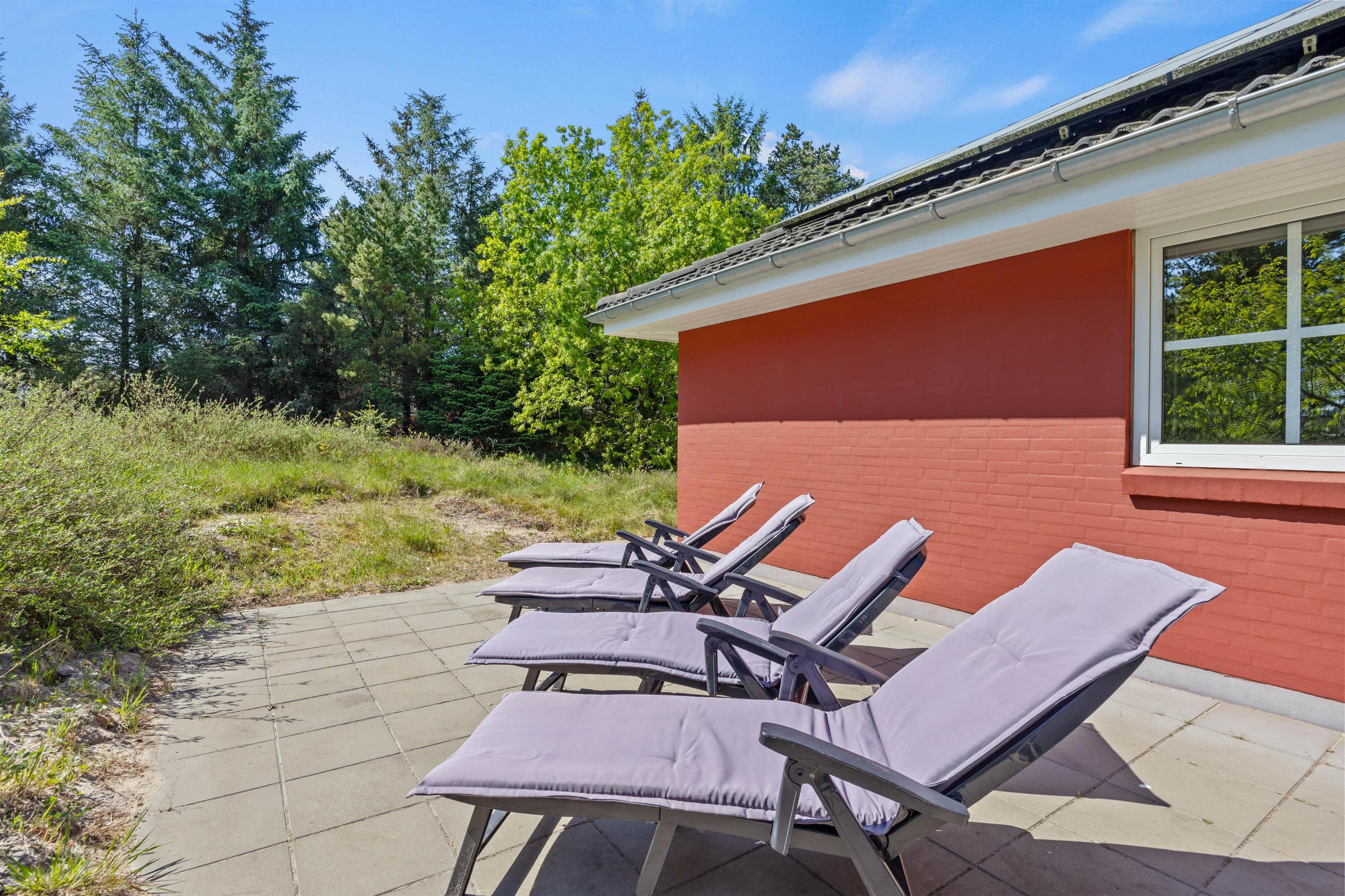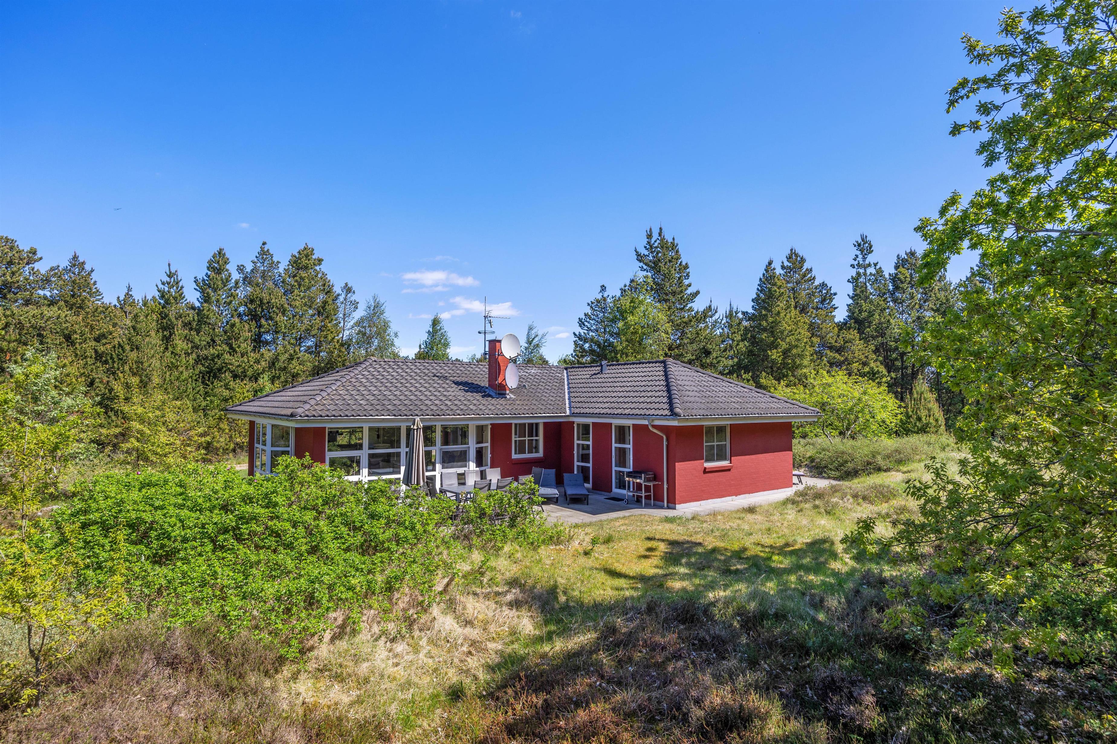 Udenfor finder I en stor naturgrund på 2.500 m², hvor der både er åbne terrasser med havemøbler, solvogne og gasgrill til sommerens grillmiddage. Ved siden af sommerhuset ligger et stort, fælles areal med legeplads, som giver børnene frirum til leg, mens de voksne kan slappe af i fredelige omgivelser. Den private sauna inviterer til velvære efter en dag fuld af aktiviteter, og med både vaskemaskine og tørretumbler er praktiske ærinder hurtigt klaret.