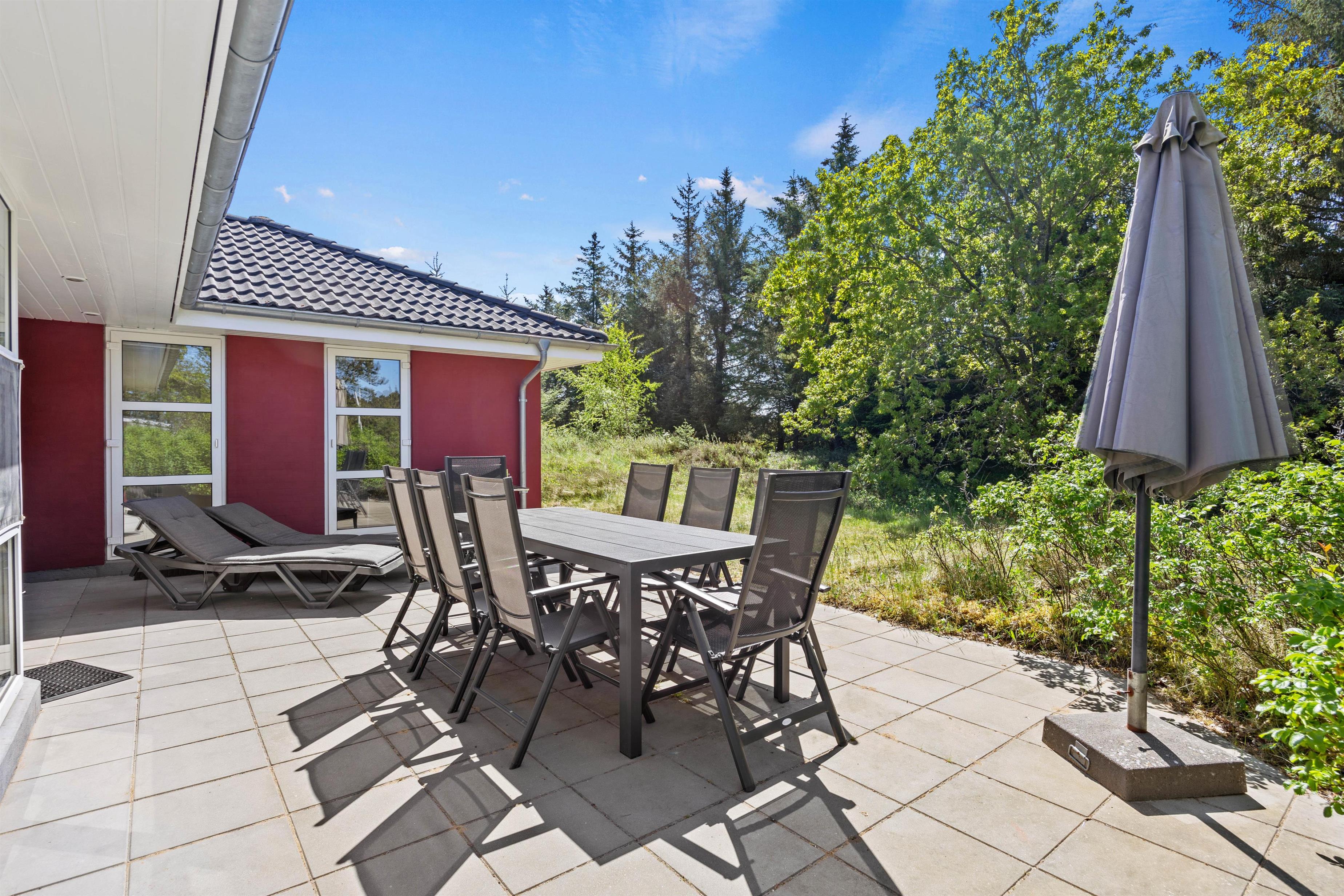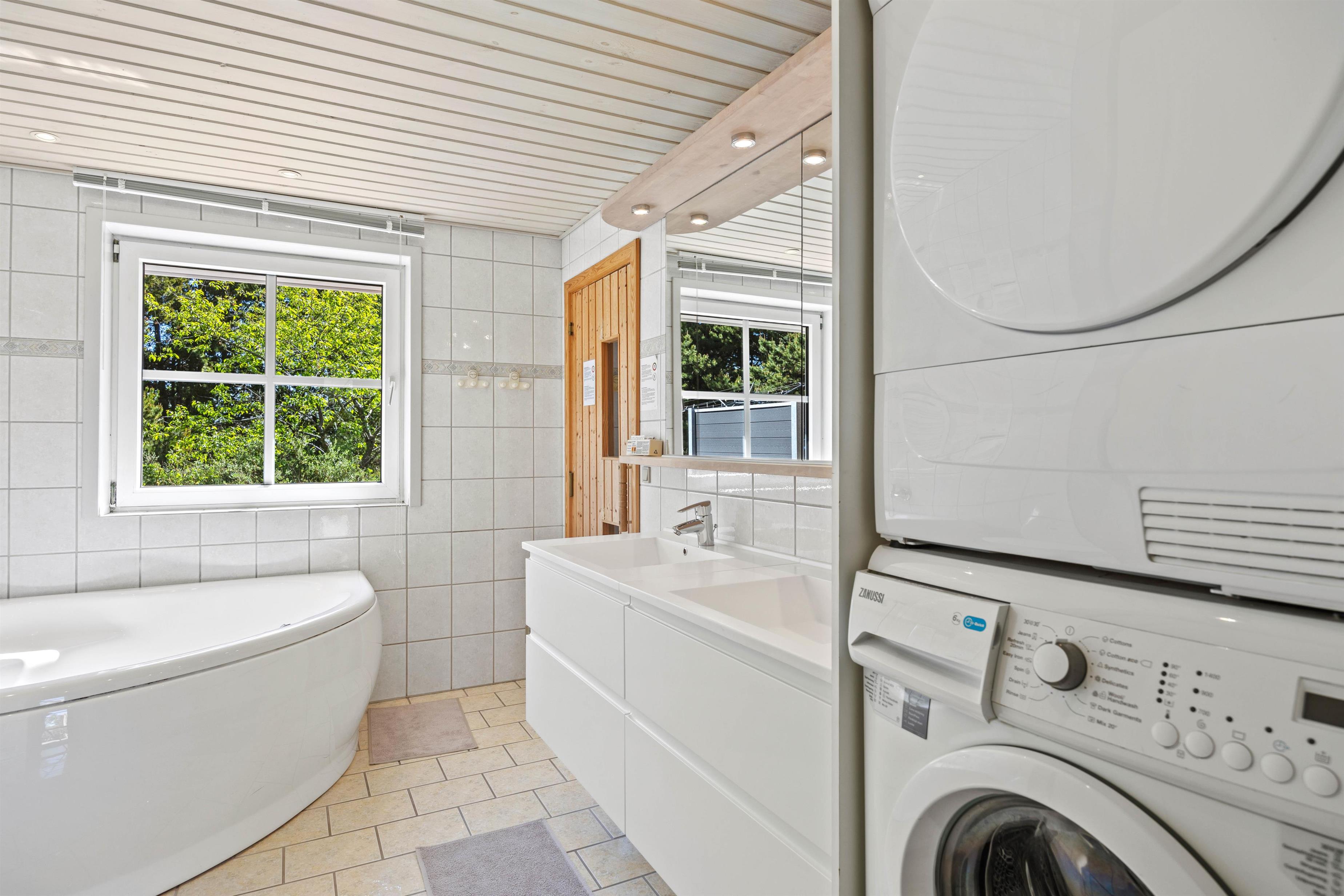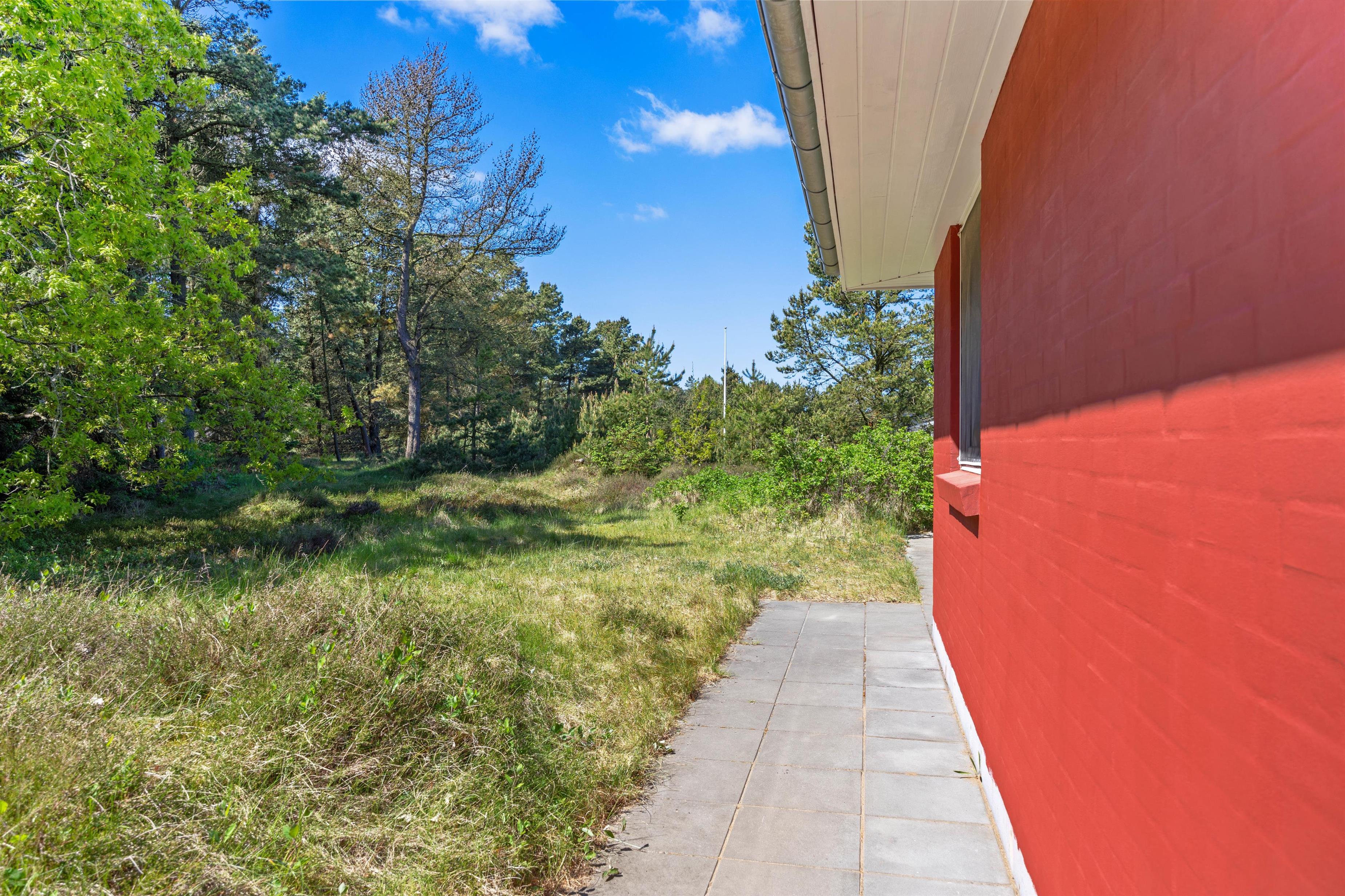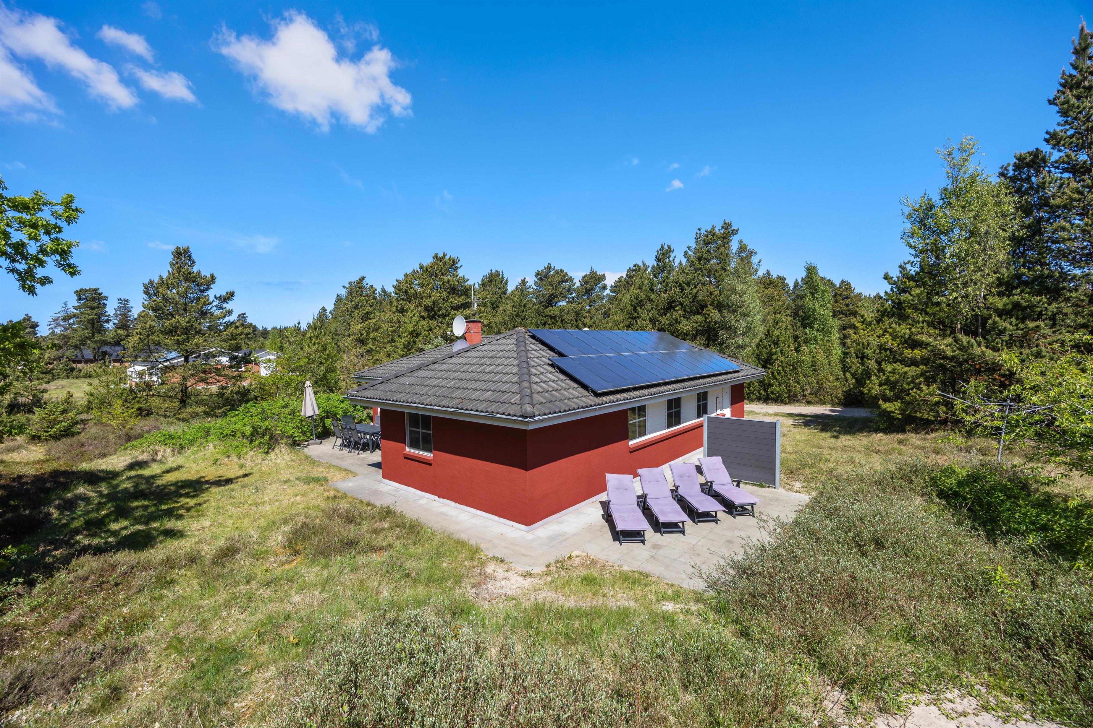 Udenfor finder I en stor naturgrund på 2.500 m², hvor der både er åbne terrasser med havemøbler, solvogne og gasgrill til sommerens grillmiddage. Ved siden af sommerhuset ligger et stort, fælles areal med legeplads, som giver børnene frirum til leg, mens de voksne kan slappe af i fredelige omgivelser. Den private sauna inviterer til velvære efter en dag fuld af aktiviteter, og med både vaskemaskine og tørretumbler er praktiske ærinder hurtigt klaret.
