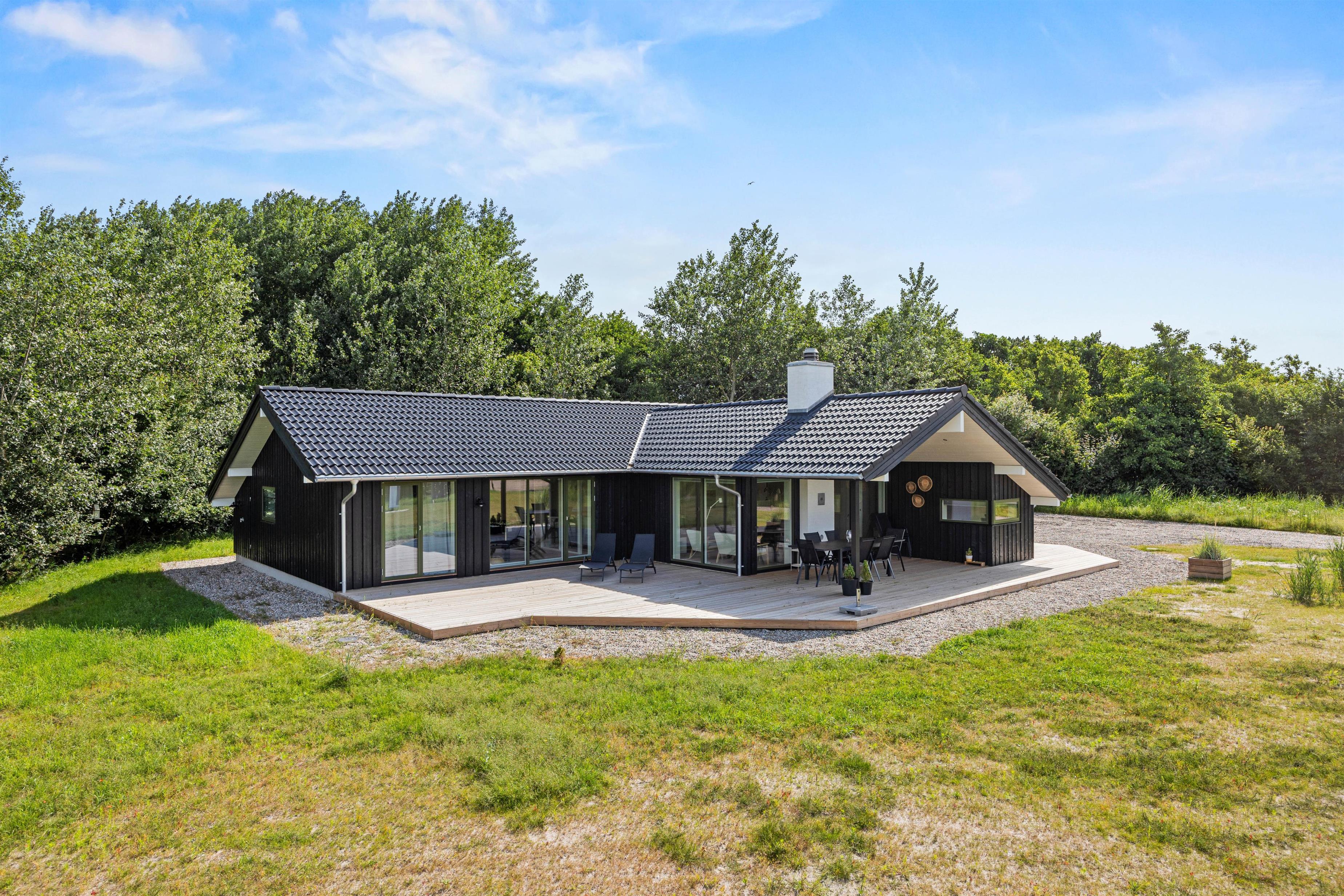 Det moderne feriehus ligger på en naturgrund på ca. 2500 kvadratmeter. Ved feriehuset er der ladestik til el-bil, en udendørs bruser i sommerhalvåret samt en stor rutsjebane, gynge og sandkasse til børnene. Her finder I også et badekar, som I kan fylde med varmt eller koldt vand fra den udendørs bruser.