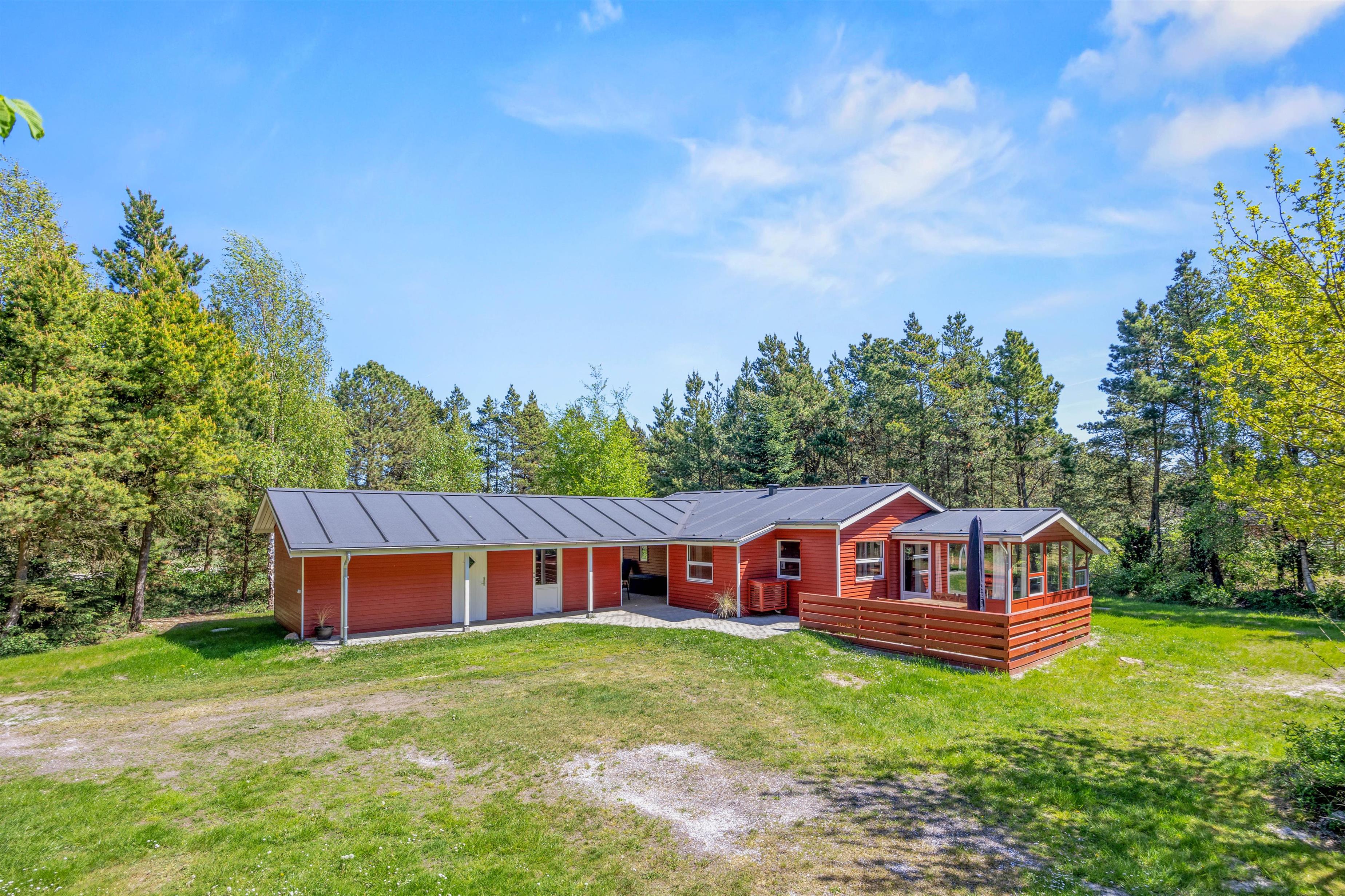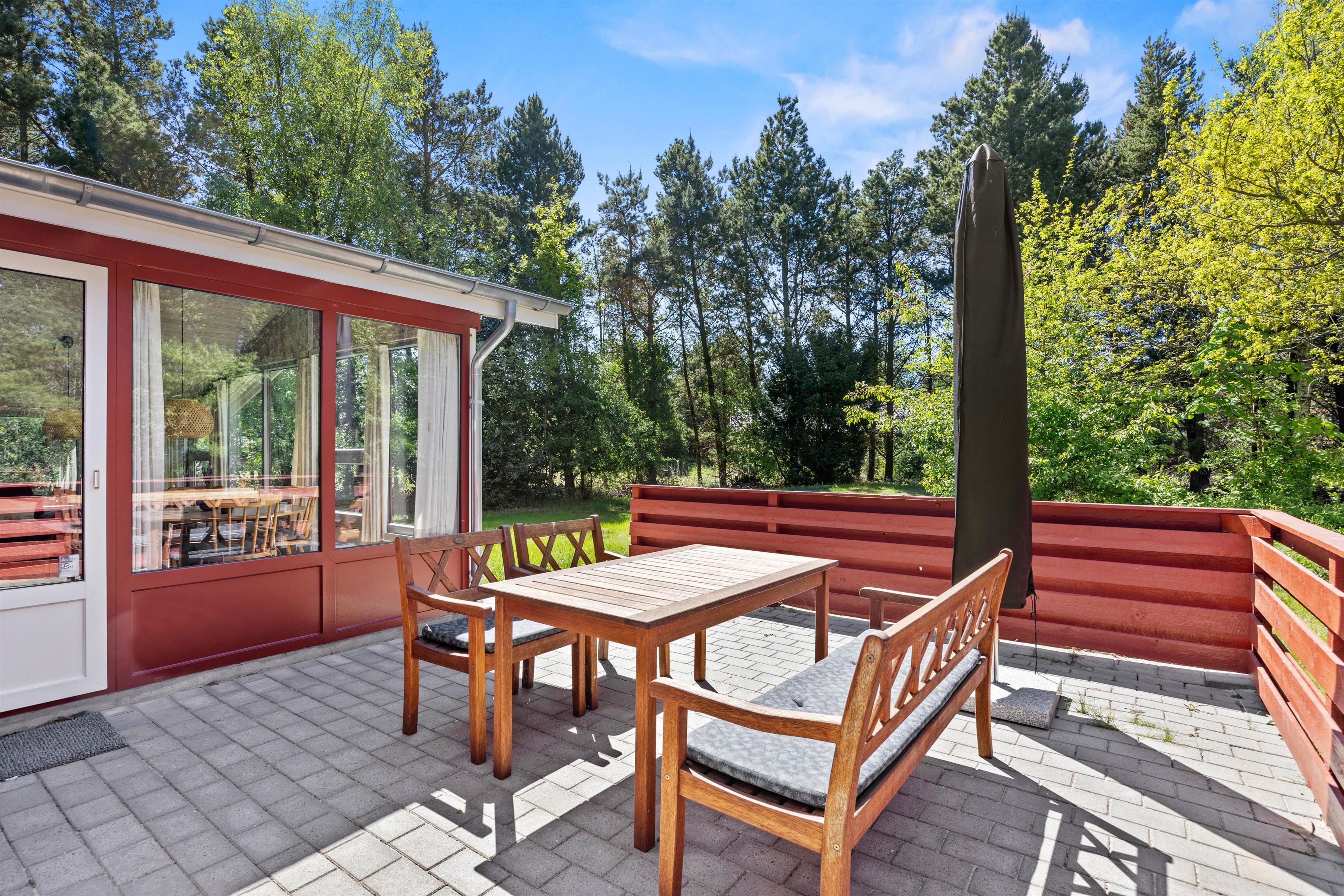 På den 2500 kvadratmeter store naturgrund er der masser af plads til at slappe af eller slå sig løs. Her kan du læne dig tilbage på terrassen, mens dine børn gynger eller spiller et spil vikingeskak. De omgivende buske og træer gør, at du er helt uforstyrret og beskyttet mod vinden. Du kan tænde op i gasgrillen og trylle en lækker middag frem, som I kan nyde den i den friske havluft.
