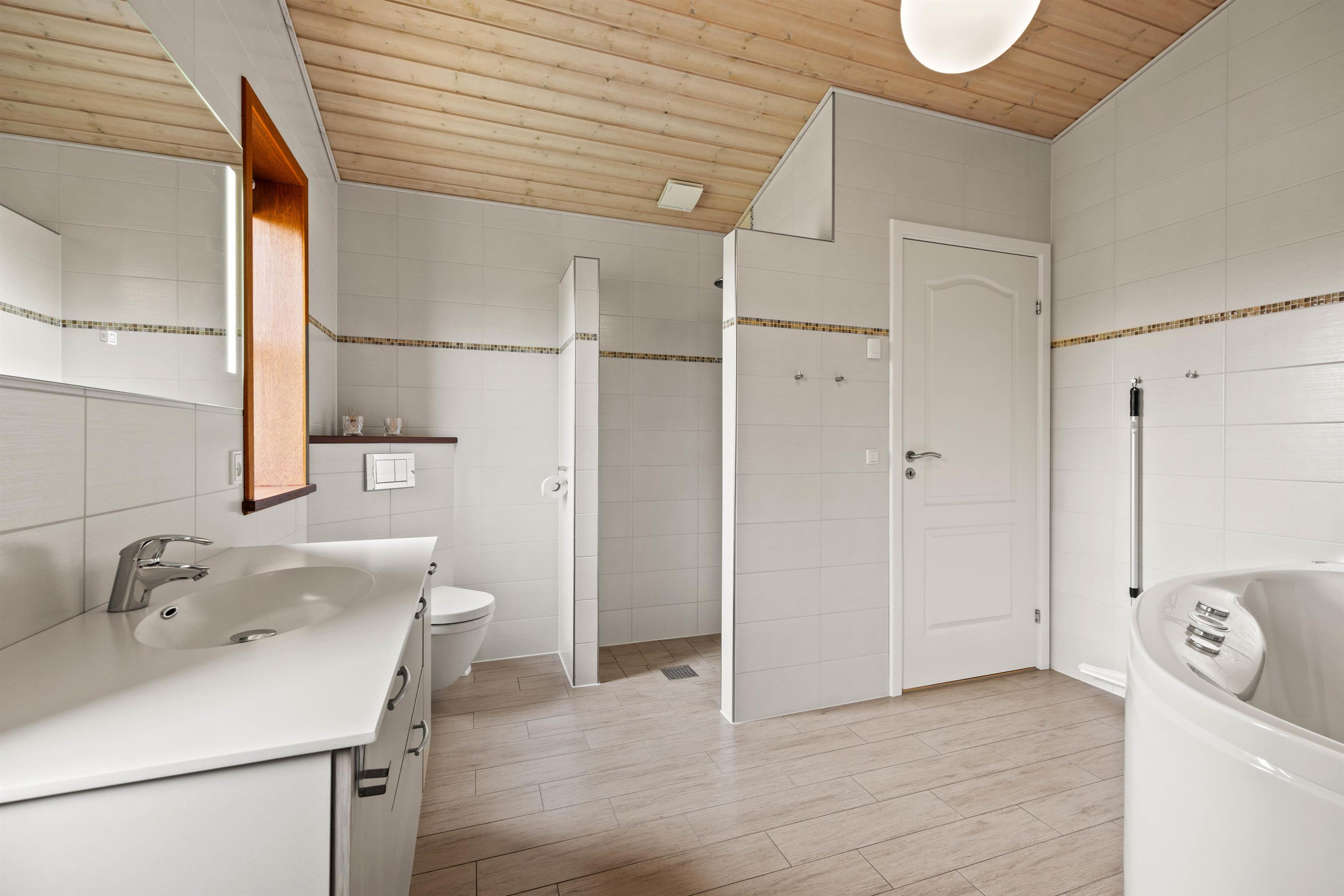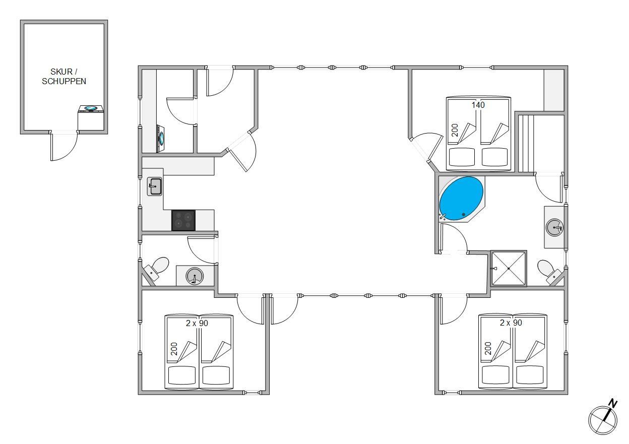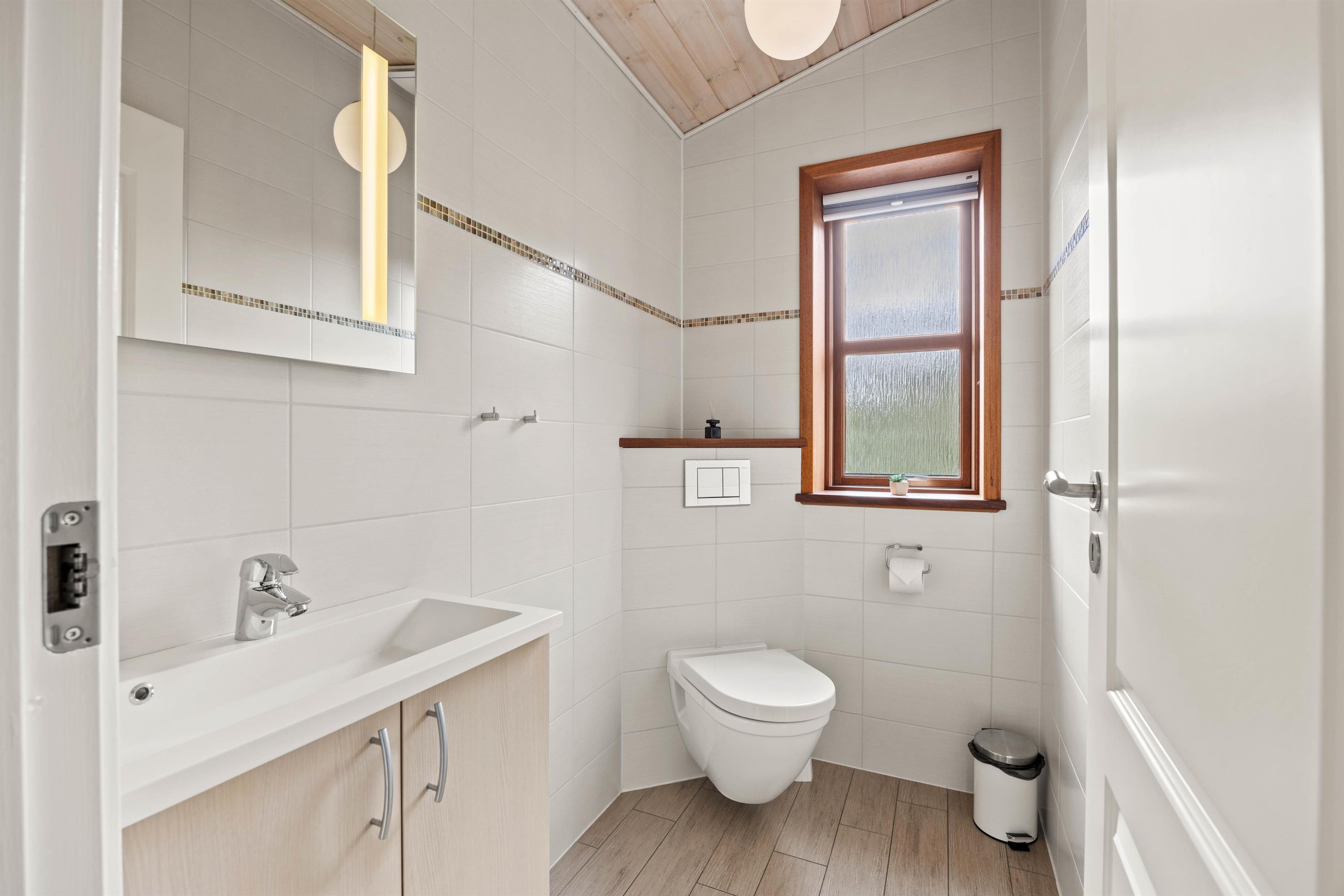 Sommerhuset har 3 gode soveværelser, hvori der også er TV i alle soveværelser. I stuen er der et smart tv med soundbar med bluetooth og en DAB radio med bluetooth. På det store badeværelse med spa og sauna kan I sidde i spabadet, mens I også kan se TV fra fjernsynet på badeværelset – det er da luksus og ren afslapning! Feriehuset har også et gæstetoilet, der ligesom det store badeværelse, har gulvvarme. Det er særligt praktisk med 2 badeværelser, så der ikke opstår kø om morgenen. Praktisk er det også med sommerhusets vaskemaskine og tørretumbler, som sørger for rent og tørt tøj gennem hele jeres ferie.