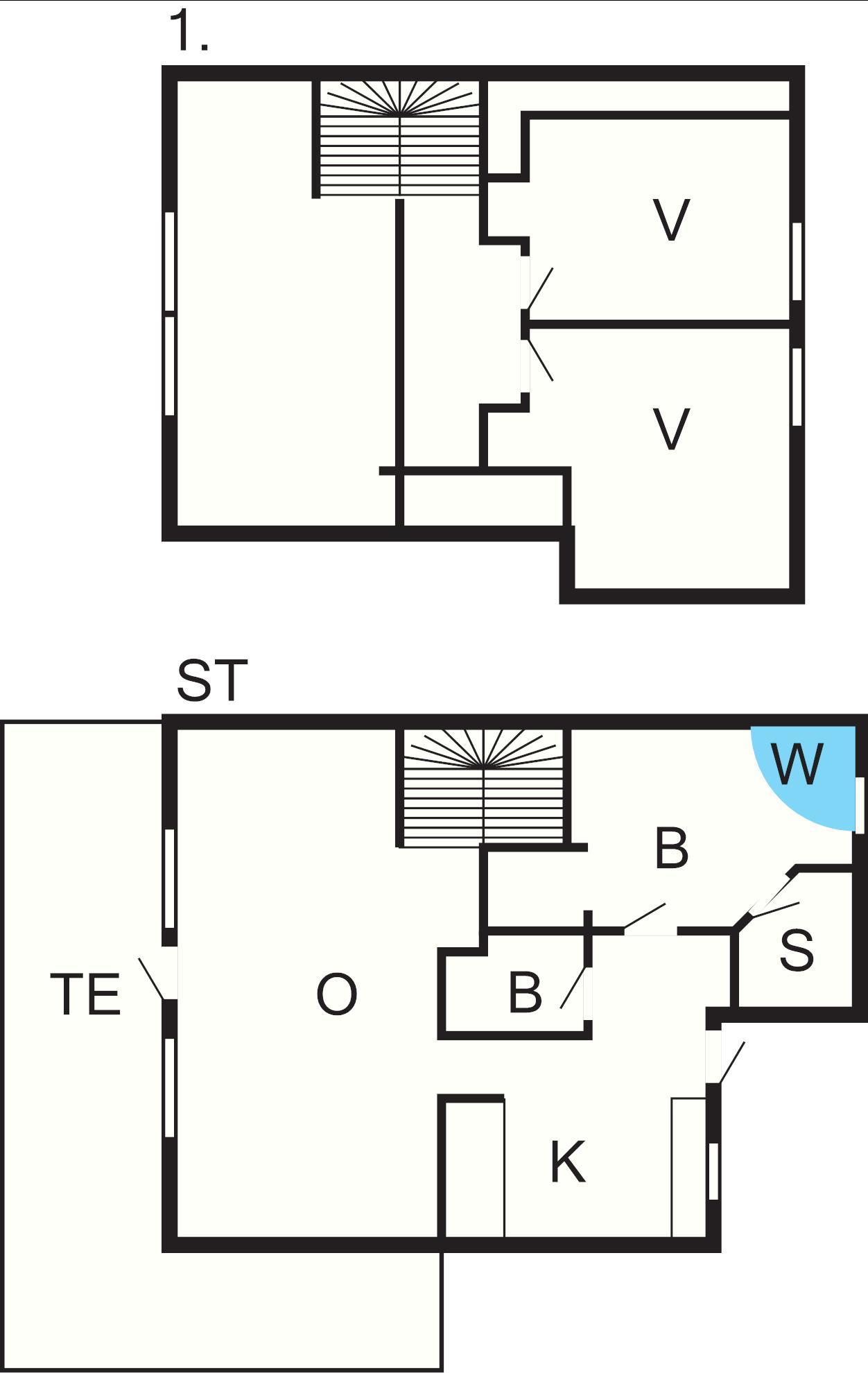 1 Opholdsstue: Brændeovn, dvd-afspiller, tv, kabel-tv, høj stol