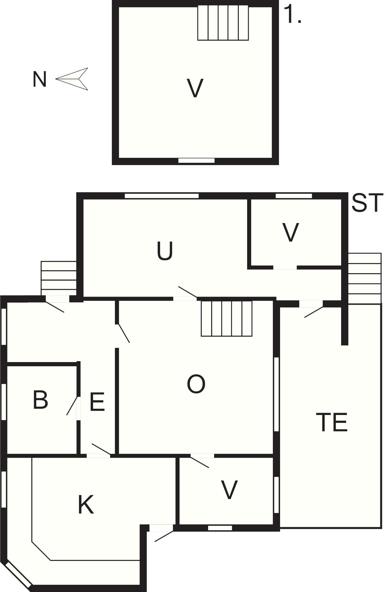 1 Opholdsstue: 25 m2, brændeovn, radio, stereoanlæg med cd, tv, kabel-tv