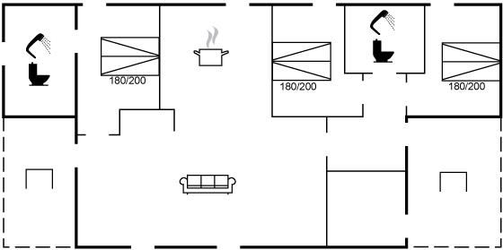 Der er i alt 3 soveværelser. Sovepladserne fordeler sig på: 6 sovepladser i dobbeltsenge. 4 sovepladser på madrasser. 4 af disse sovepladser befinder sig på husets hems.