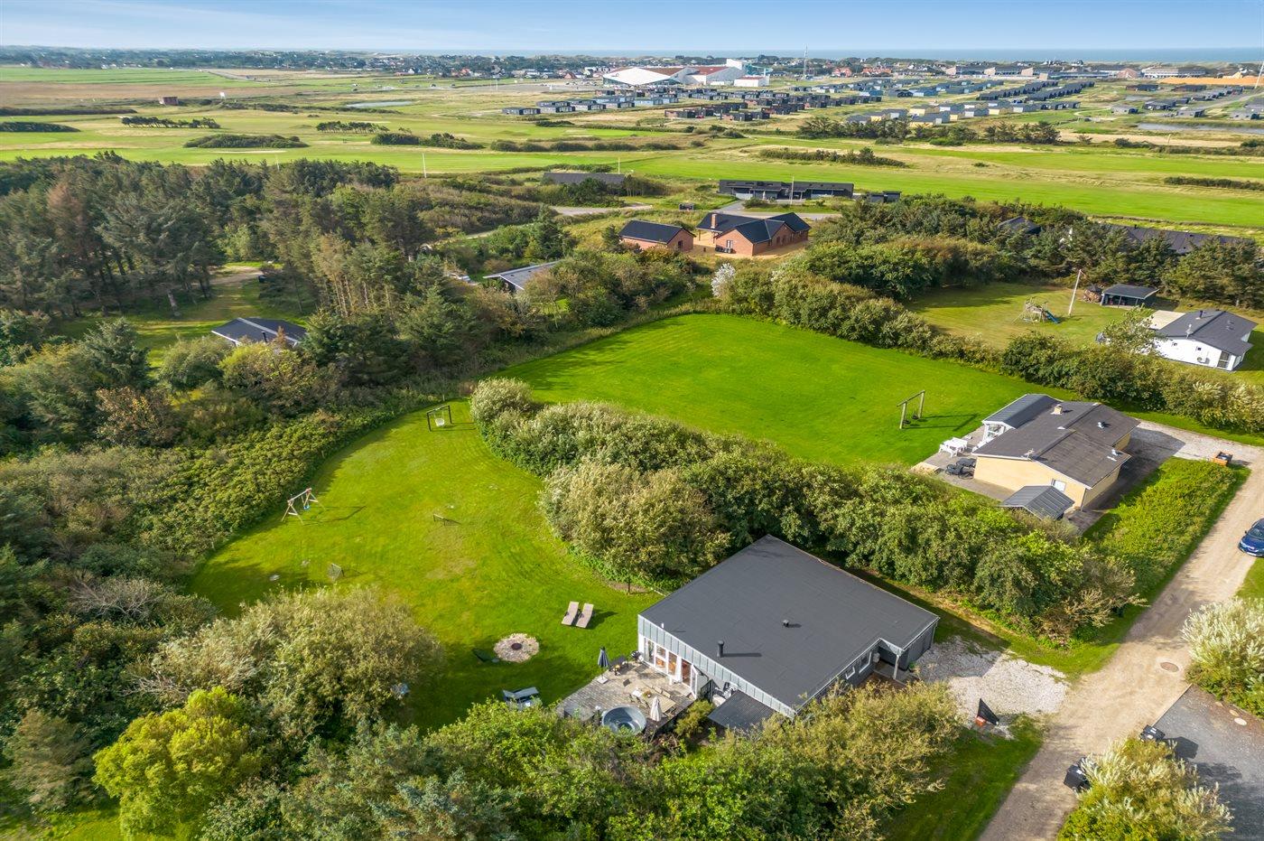 Ferieboligen er beliggende på en 2513 m² stor naturgrund. Grunden er indhegnet. Der er 1350 m til havet. Nærmeste forretning er beliggende i en afstand af 1200 m. Der er en golfbane i en afstand af 200 m. Til ferieboligen hører åbent terrasseareal. Der er redskabsrum. Gynge. Sandkasse. Parkering ved ferieboligen.