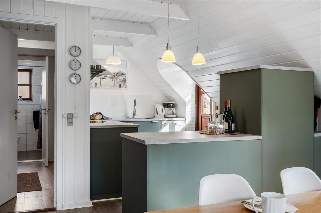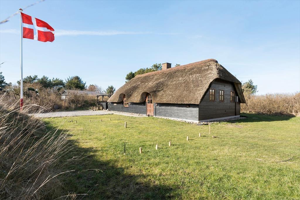 Det stråtækte sommerhus har stået her i Søndervig siden 1978, og i 2021 blev det opgraderet med nyt køkken og mange andre forbedringer, så I får en hyggelig og velfungerende ramme om ferielivet. Netop køkkenet ligger i åben forbindelse med stuen, så madlavningen kan nemt indgå i det sociale samvær. Midt i stuen står en hygge- og varmespredende brændeovn, og et fladskærms-tv med Chromecast hænger på væggen nær sofaafsnittet. Fra en fordelingsgang har I adgang til et praktisk brusebadeværelse og tre gode soveværelser, der alle er udstyret med garderobeskabe.