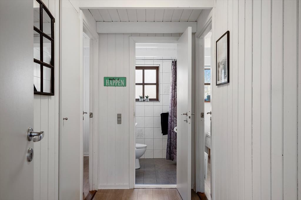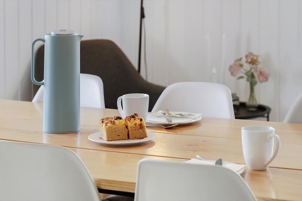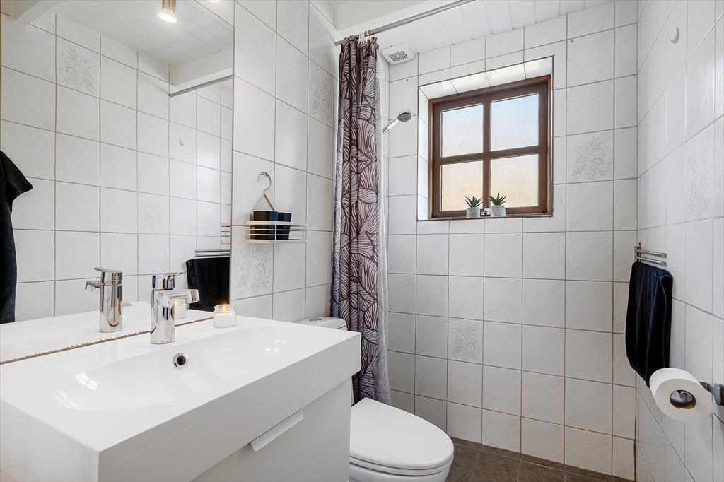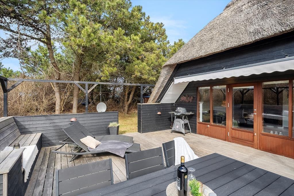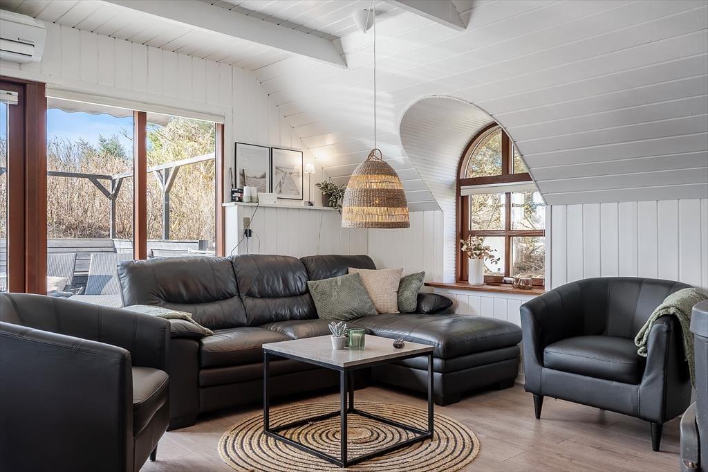 I sommerhuset er der varmepumpe med køleeffekt – men I kan også åbne havedøren op på vid gab, når det er sommerligt i vejret. Det giver jer også mulighed for frit at bevæge jer mellem stuen og terrassen, der med delvis afskærmning, en indbygget bænk og gode havemøbler fungerer som en skøn oase på solrige dage.