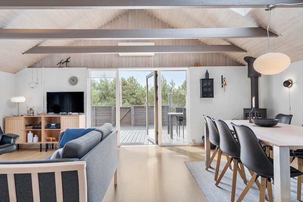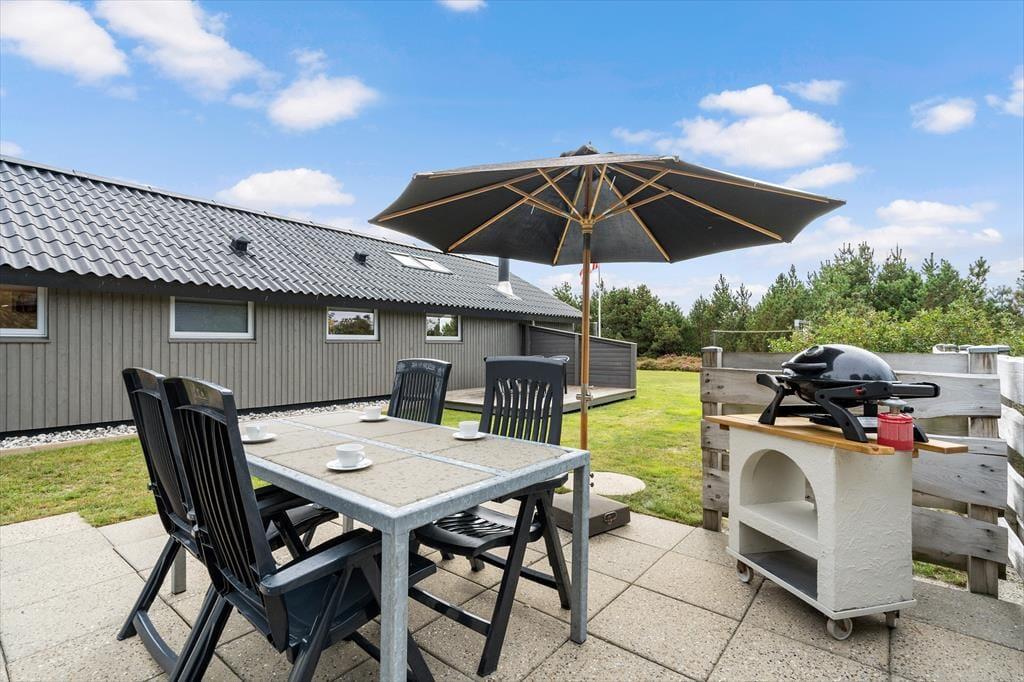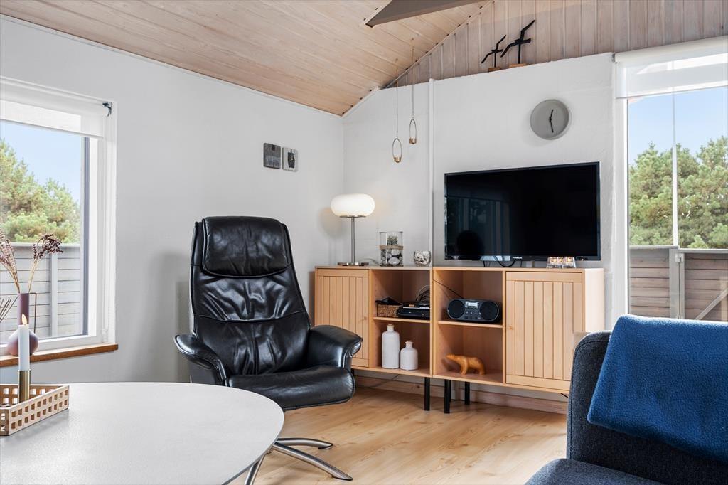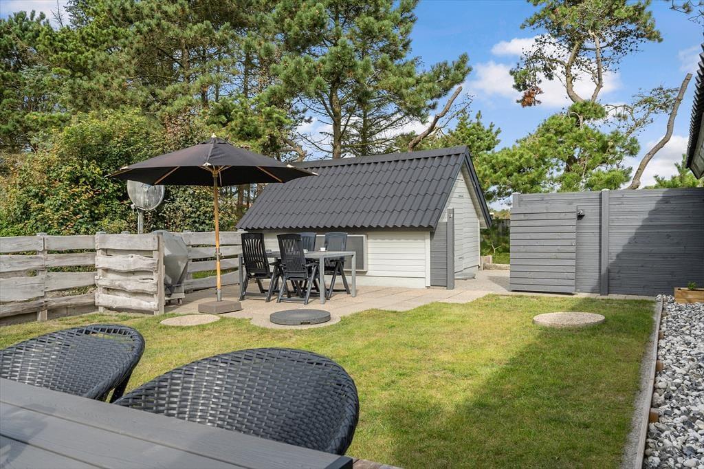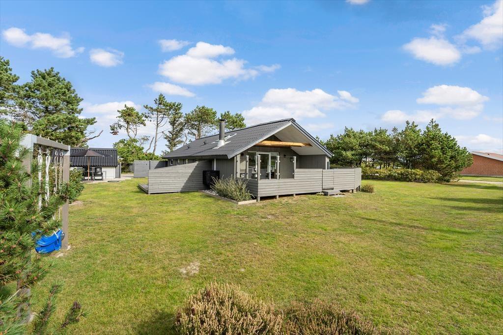 Dette velindrettede sommerhus giver plads til alt det, som det gode ferie liv består af. Vil I spille boldspil på græsplænen, grille på terrassen eller slappe af med krydsogtværser nær stuens brændeovn? Det hele og meget mere kan lade sig gøre her på Frans Julius Vej 17 – og takket være den attraktive adresse får I ovenikøbet rig mulighed for at udforske Søndervig og Holmsland Klit.