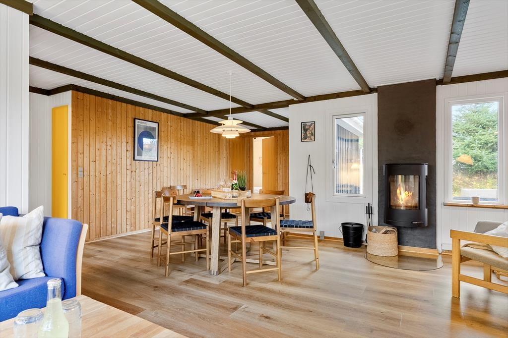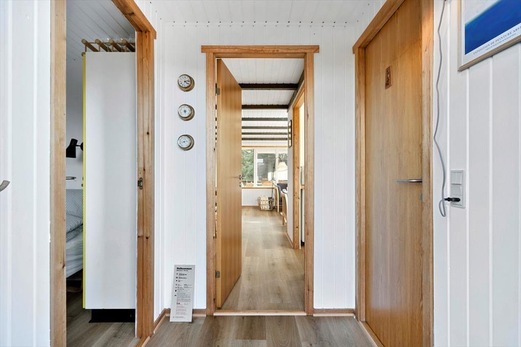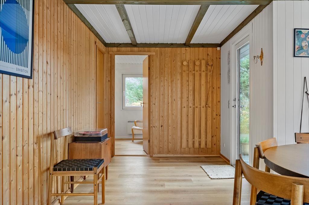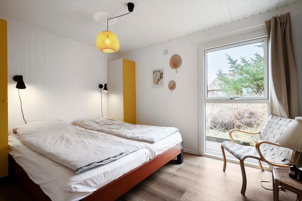 Sommerhuset, der er et klassisk træsommerhus fra 1977, har aldrig tidligere været brugt til udlejning, og det er tydeligt at se, at ejerne har passet godt på huset. En grundig renovering i 2023 indbefatter, at vægge og lofter er nymalede, og nyt møblement sørger for, at I får det behageligt inden døre. I det nye køkken kan I se frem til at lave lækker mad, og takket være den åbne forbindelse til stuen behøver I ikke at gå glip af hyggesnakken, selvom der skal røres i gryderne. I stuen er der både brændeovn og varmepumpe, hvis I får brug for lidt ekstra varme på eventuelle kølige dage og aftener. Tre gode soveværelser er placeret mod nordøst, og fra entréen har I adgang til husets pæne brusebadeværelse.
