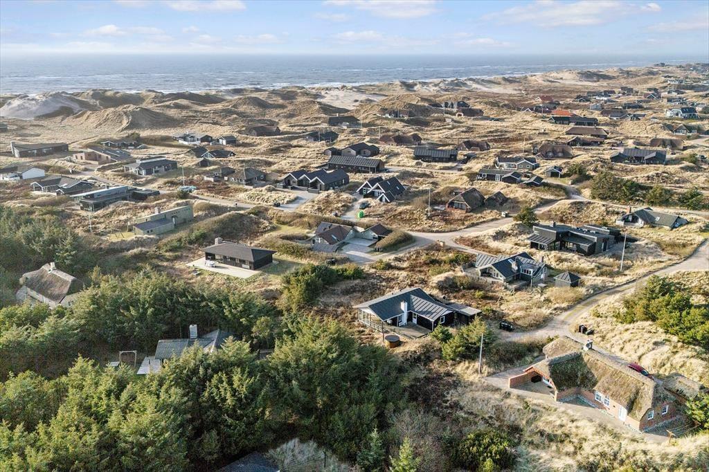 Sommerhuset ligger helt ugeneret for enden af en lukket vej, så det er det helt rette sted at lade batterierne op og holde fuldstændigt fri. Trænger I til en slentretur, er der kun få hundrede meter til Søndervig Strand og Vesterhavet, og hvis I har medbragt eller lejet cykler, kan I se frem til at undersøge småveje og cykelstier på hele Holmsland Klit. Surfing er desuden en af de populære aktiviteter på disse kanter, og hvis vejret nærmere indbyder til indendørs hygge, er der et stort badeland i Søndervig.