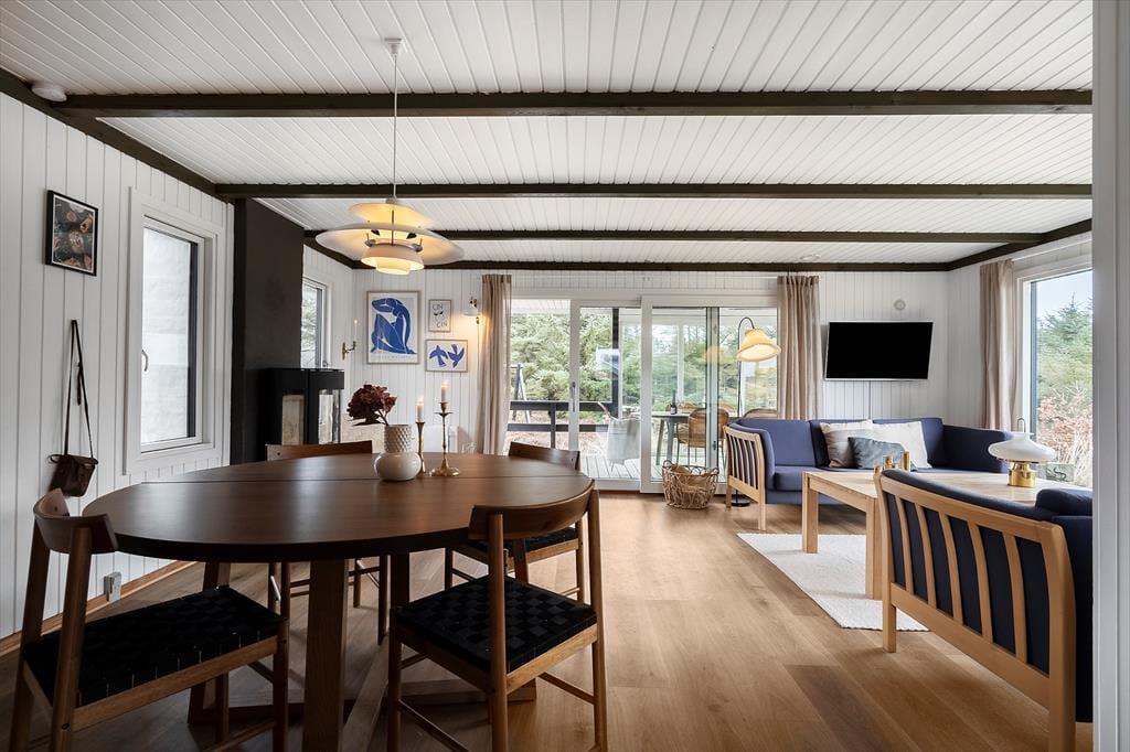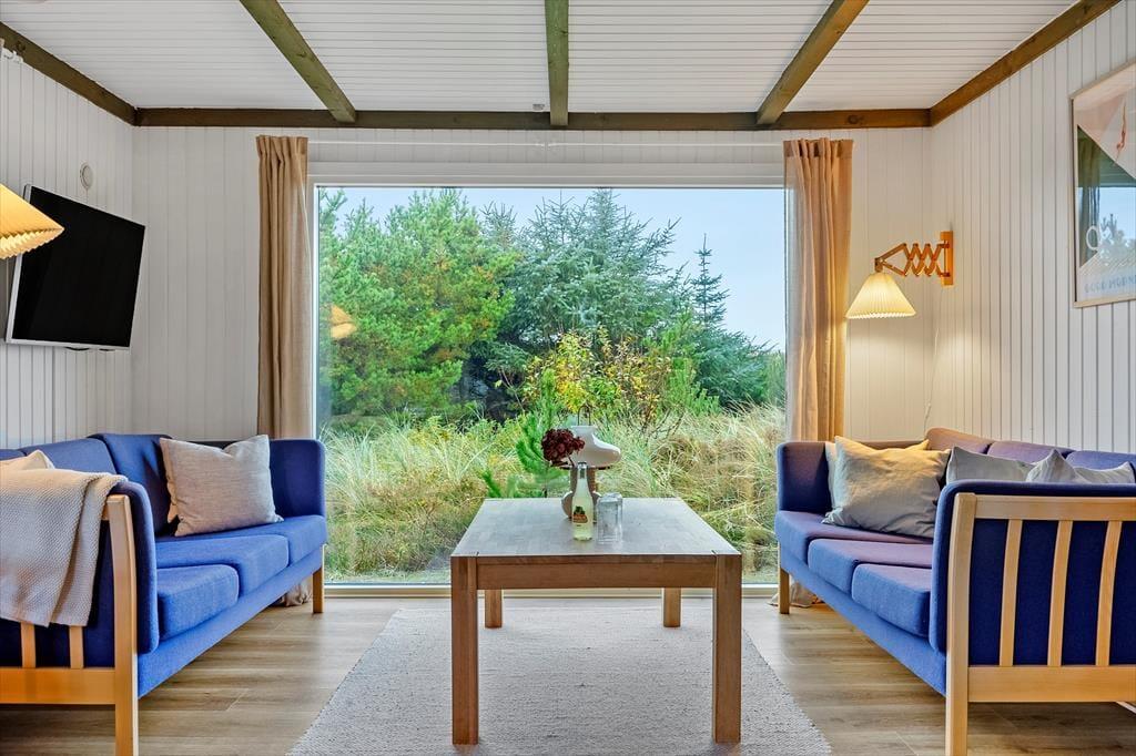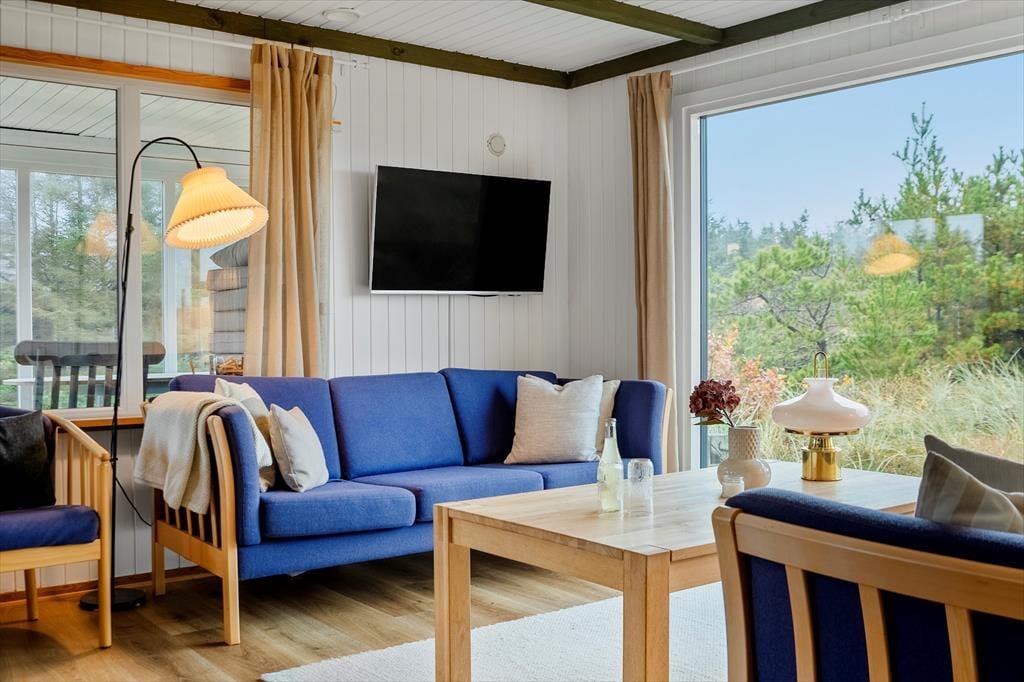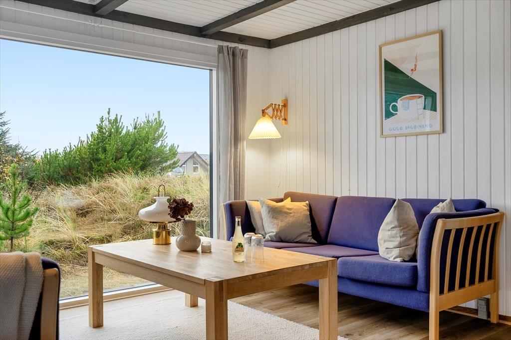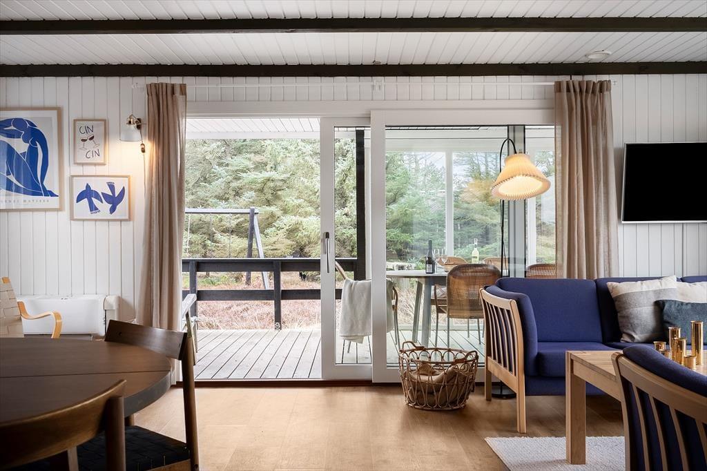 Det er nemt at komme i feriestemning, når I tilbringer dagene på Nordsøvej 466 lige syd for Søndervig. Sommerhuset er nemlig hyggeligt indrettet og der er der er lagt op til mange gode stunder inden døre, og ude kan I nyde livet på den ugenerede naturgrund, der byder på både vildmarksbad og petanquebane.