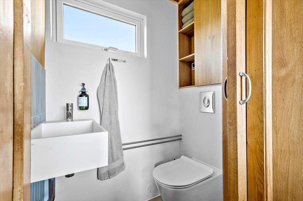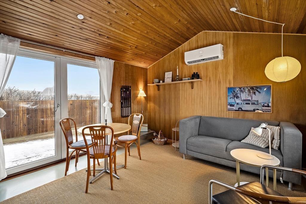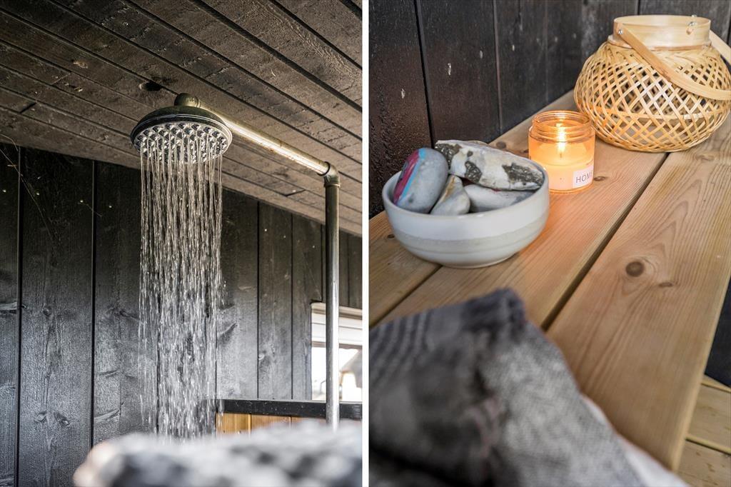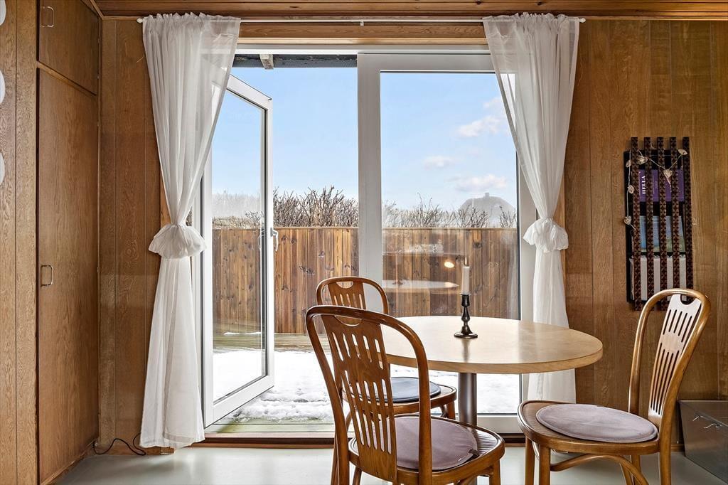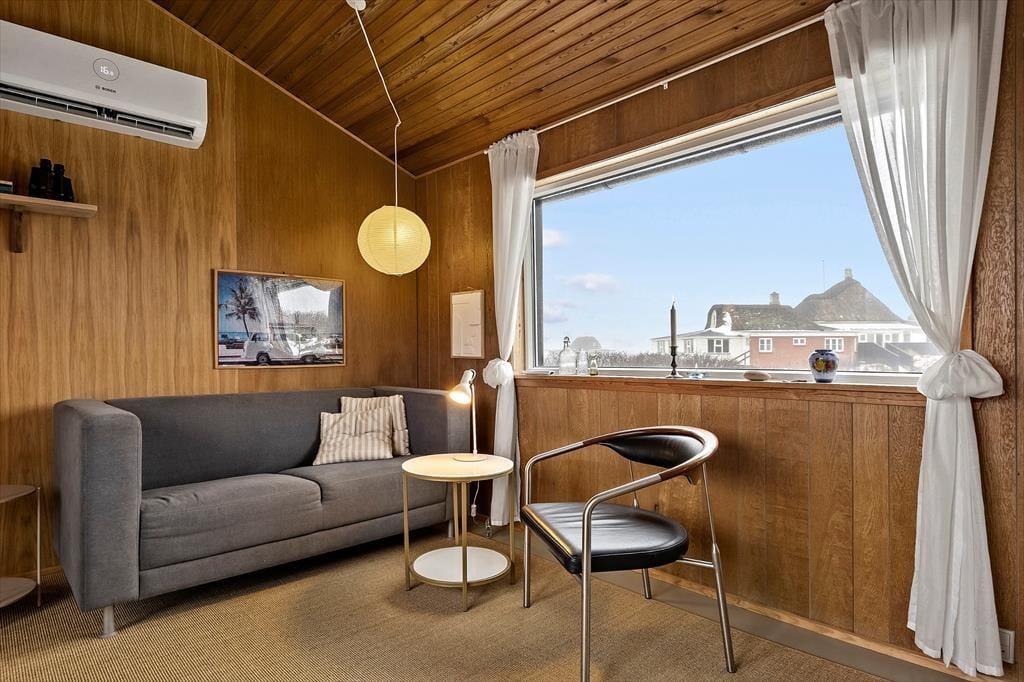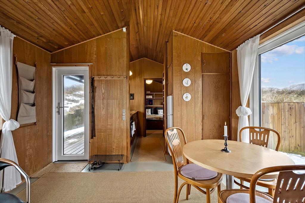 Udenfor finder du to dejlige terrasser, hvorfra du kan nyde udsigten til klitterne, der rejser sig mod himlen. Her kan du lade morgensolen varme dig, mens du nyder dagens første kop kaffe, eller samle familien til måltider under åben himmel. Når dagen er ved at være slut, og solen begynder at gå ned, kan I tage et friskt bad under den udendørs bruser – helt i pagt med naturen. Den korte afstand til havet gør det nemt at tage en tur ned til stranden, hvor børnene kan bygge sandslotte, og de voksne kan slentre barfodet i vandkanten.