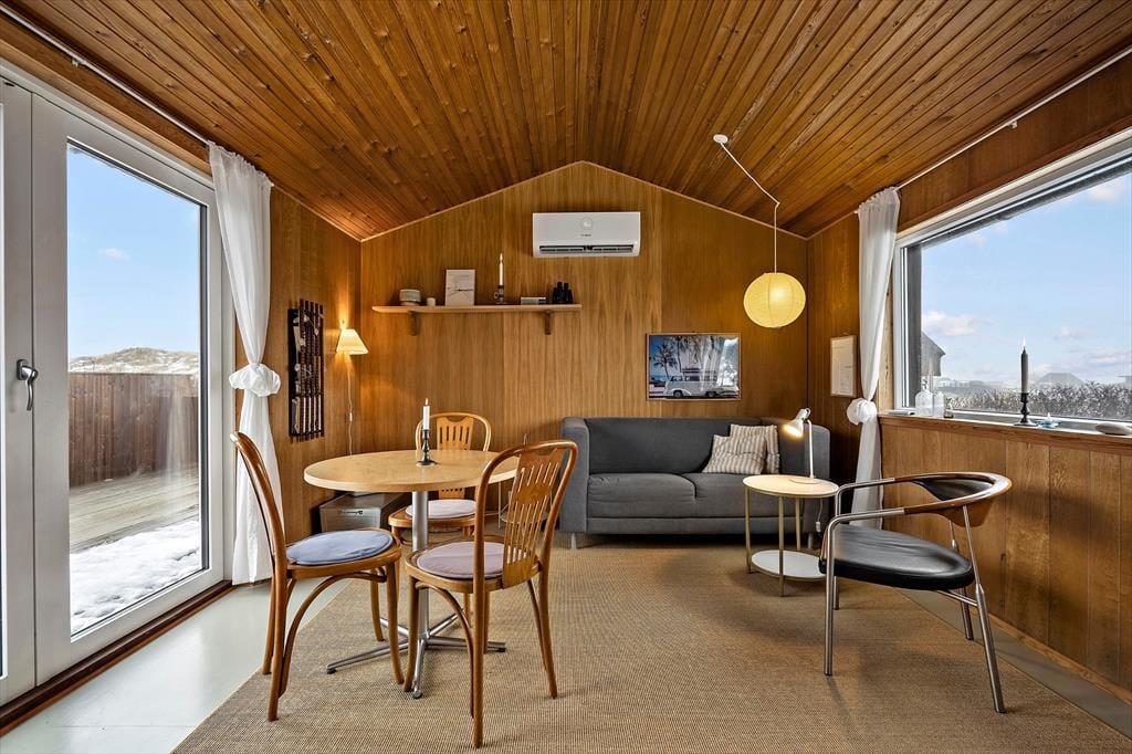 Indenfor i det lille træhus mødes du af en enkel og hyggelig stemning, hvor alt inviterer til ro og afslapning. Her er ingen skærme til at forstyrre jer – kun plads til at tage tingene helt i eget tempo. Huset er indrettet med et toilet, men badefaciliteterne finder du udenfor. Hverdagens bekymringer bliver hurtigt glemt, når I samles om en god bog, et sjovt brætspil eller måske bare en stille snak over en kop varm kakao.