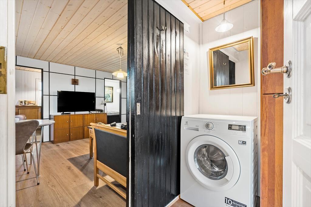 Sommerhus i Søndervig Strand og By, Vestjylland, med plads til 4 voksne og 1 husdyr. Der er en hyggelig indretning, og du finder desuden vaskemaskine, opvaskemaskine og tørretumbler i boligen.