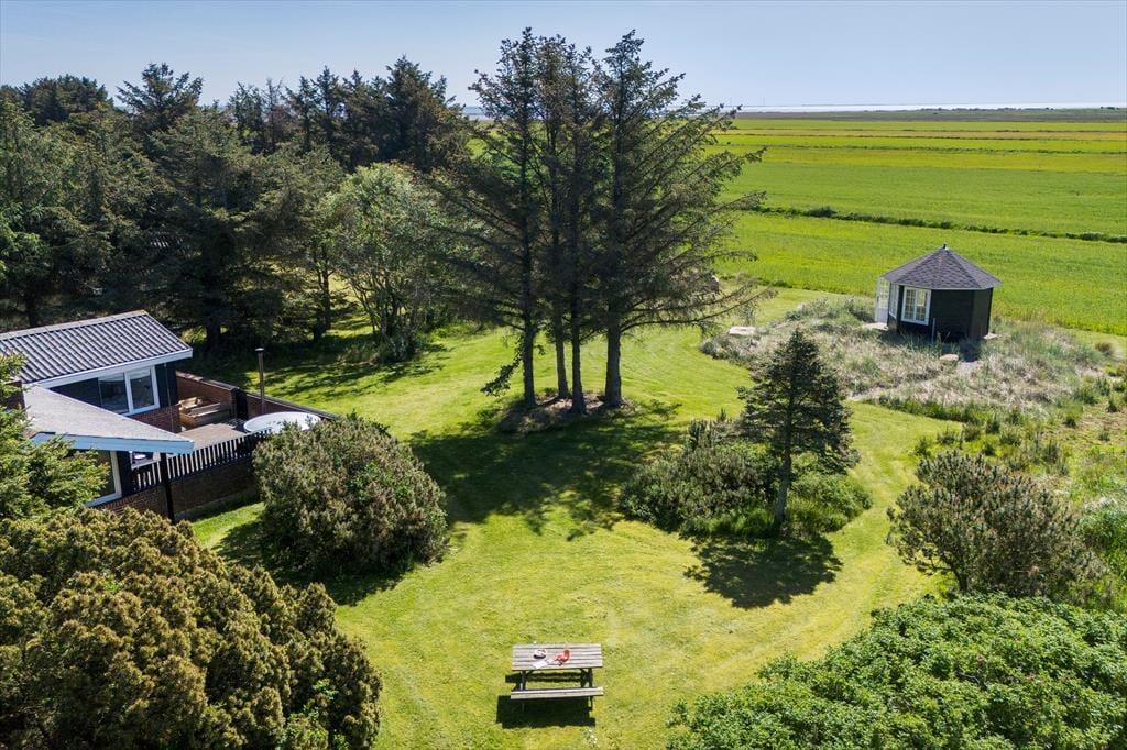 Vildmarksbadet. Den gode lænestol nær brændeovnen. Eller havepavillonen, der ligger med udsigt til mark og fjord? Det kan være svært at udpege sin yndlingsplads i dette hyggelige sommerhus, for der er mange dejlige hyggekroge og solbeskinnede steder at vælge imellem her på Fyrrekrat 2 i Søndervig.