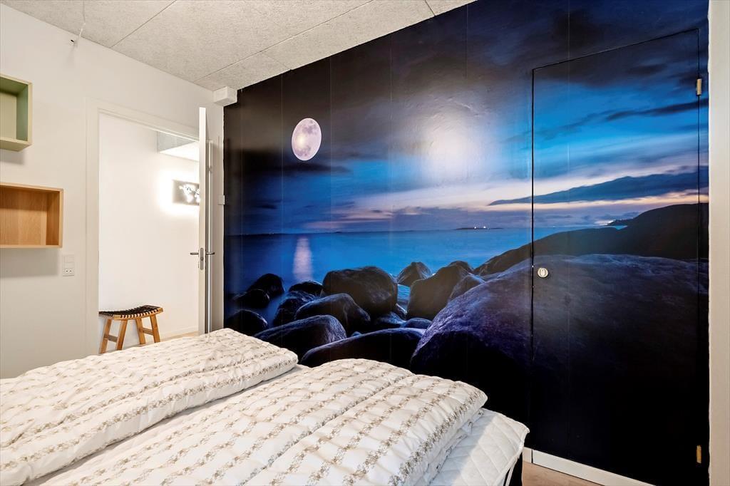 Det lille, funktionelle køkken ligger i forlængelse af stuen, hvilket gør det let at være sammen, uanset om du står ved komfuret eller slapper af i sofaen. Soveværelset er hyggeligt indrettet og skaber et trygt og roligt rum, hvor du kan vågne veludhvilet og klar til en ny dag i Søndervig. Her får du en ferielejlighed, der både føles nem, hjemlig og overskuelig – lige som en feriebolig skal være.