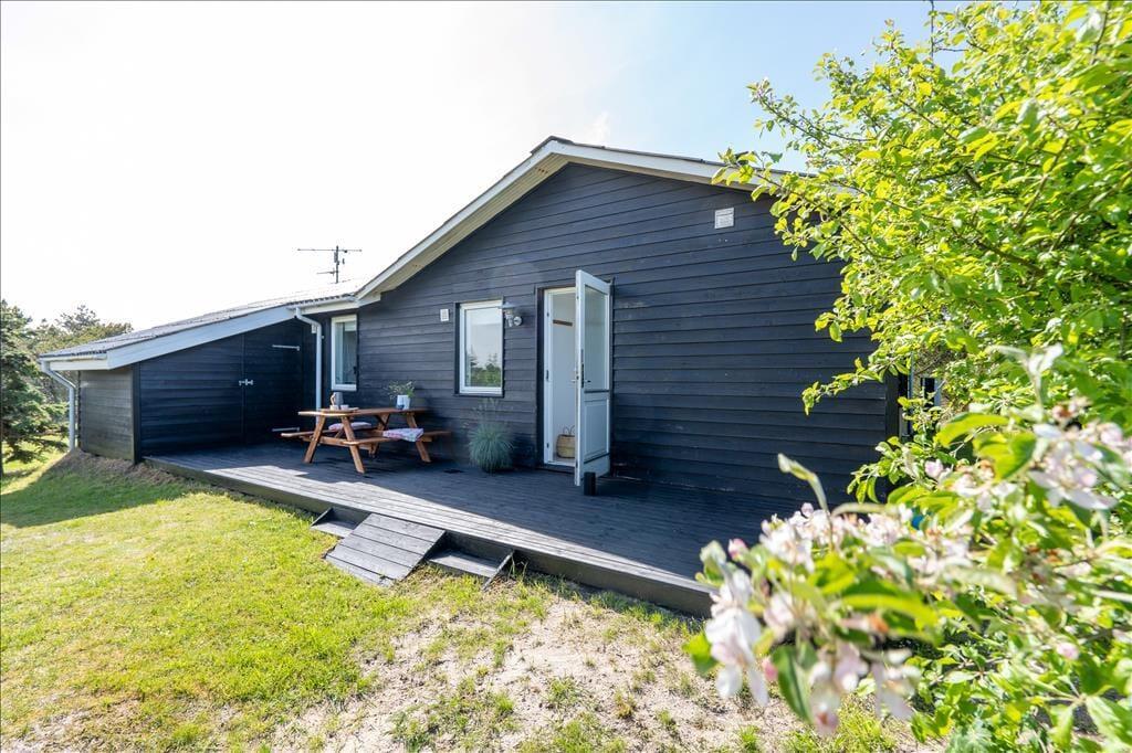 Dette indbydende sommerhus i det sydlige Søndervig ligger på en hyggelig grund omkranset af frodige træer og beplantning, og derfor kan I nyde feriedagene komplet ugeneret på den sydvendte terrasse og i haven, hvor der også er sandkasse og fodboldmål. Med sengepladser til fem personer fungerer sommerhuset ideelt til børnefamilien, og I har nem adgang til smuk natur samt blot 750 meter til stranden og Vesterhavet.