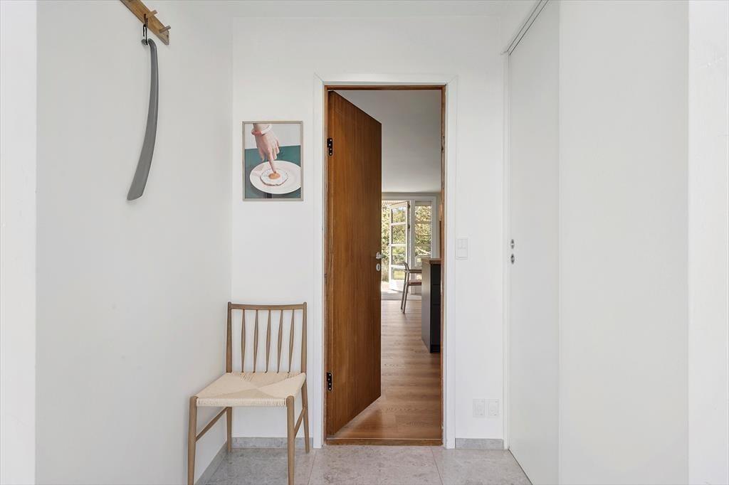 Beplantningen omkring grunden giver læ for vinden, og sommerdagene kan bruges i solen på det sydvendte, delvist overdækkede terrassemiljø. På husets modsatte side og i haven findes yderligere terrasser, og grunden giver god plads til leg og boldspil.