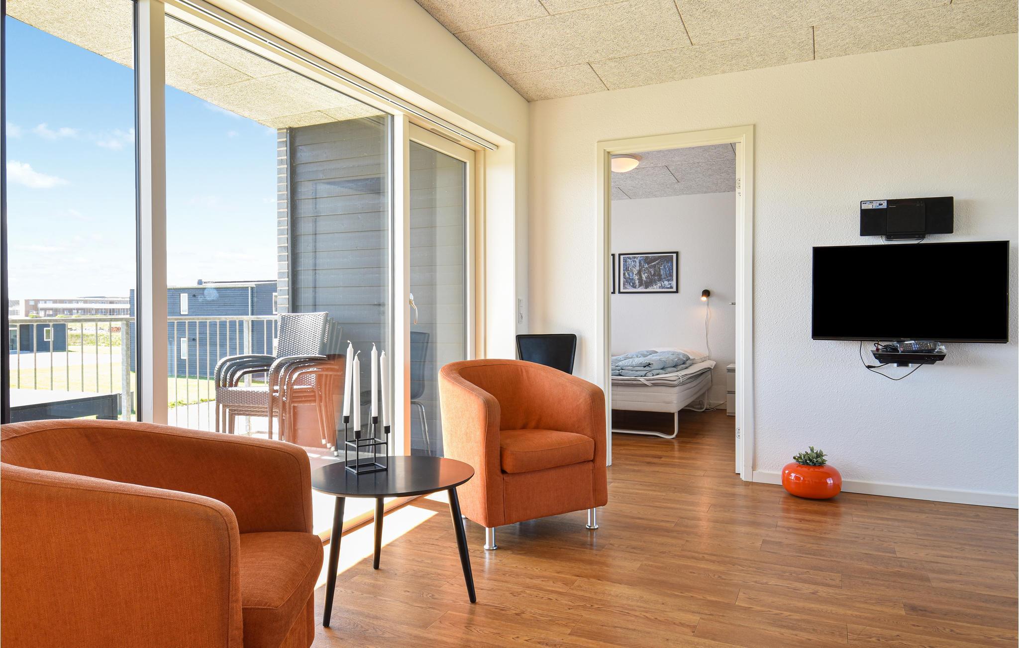I et skønt naturområde og lige udenfor den populære turistbadeby Søndervig, ligger denne velindrettede 1. sals lejlighed med en nordvestvendt terrasse og udsigt over klitter og sommerhusområdet. Fra den sydvendte terrasse er der udsigt over Søndervig og det kommende Lalandia. Søndervig er byen med den letteste adgang til Vesterhavet. Derfor er den også fra gammel tid en rigtig badeby, som gør meget for, at gæster skal føle sig velkomne. De forretningsdrivende i Søndervig ved hvad der skal til for at opfylde alle gæsters ønsker, uanset om I er inde i byen for at handle, spise eller få en kop kaffe på en fortovscafé eller blive forkælet med wellness - her mangler ikke noget.