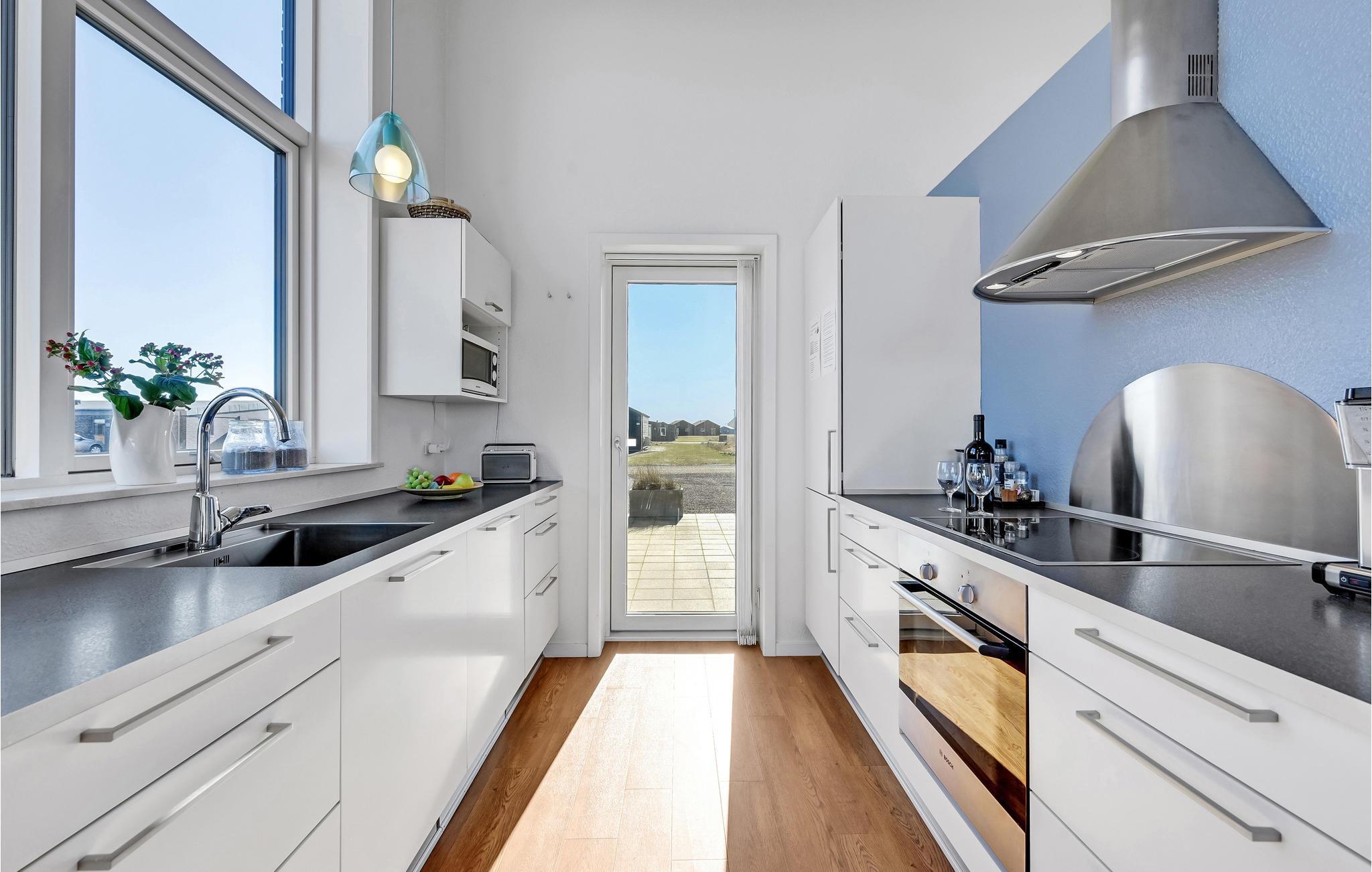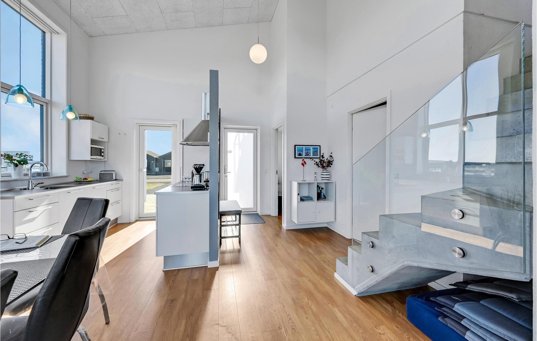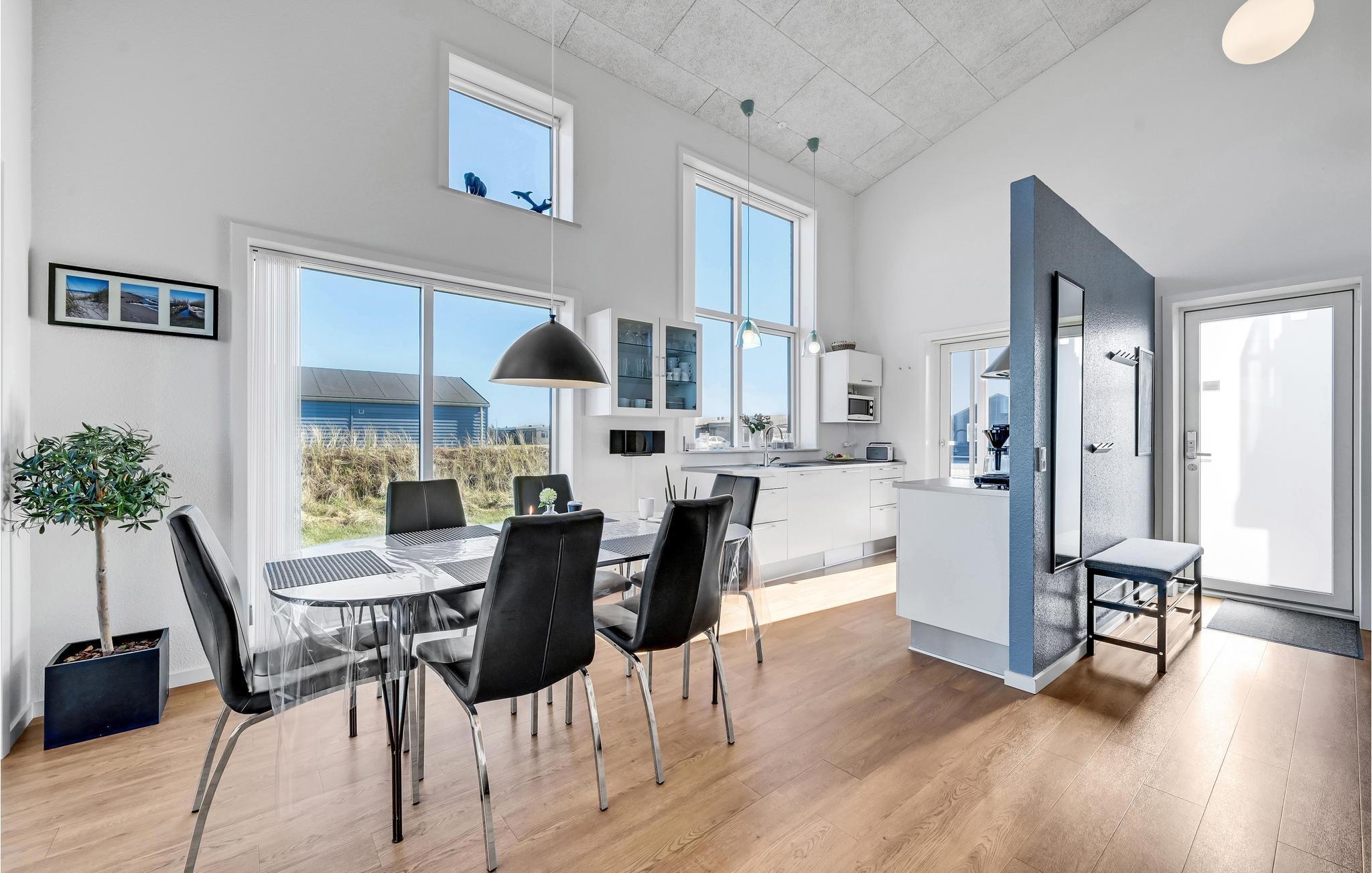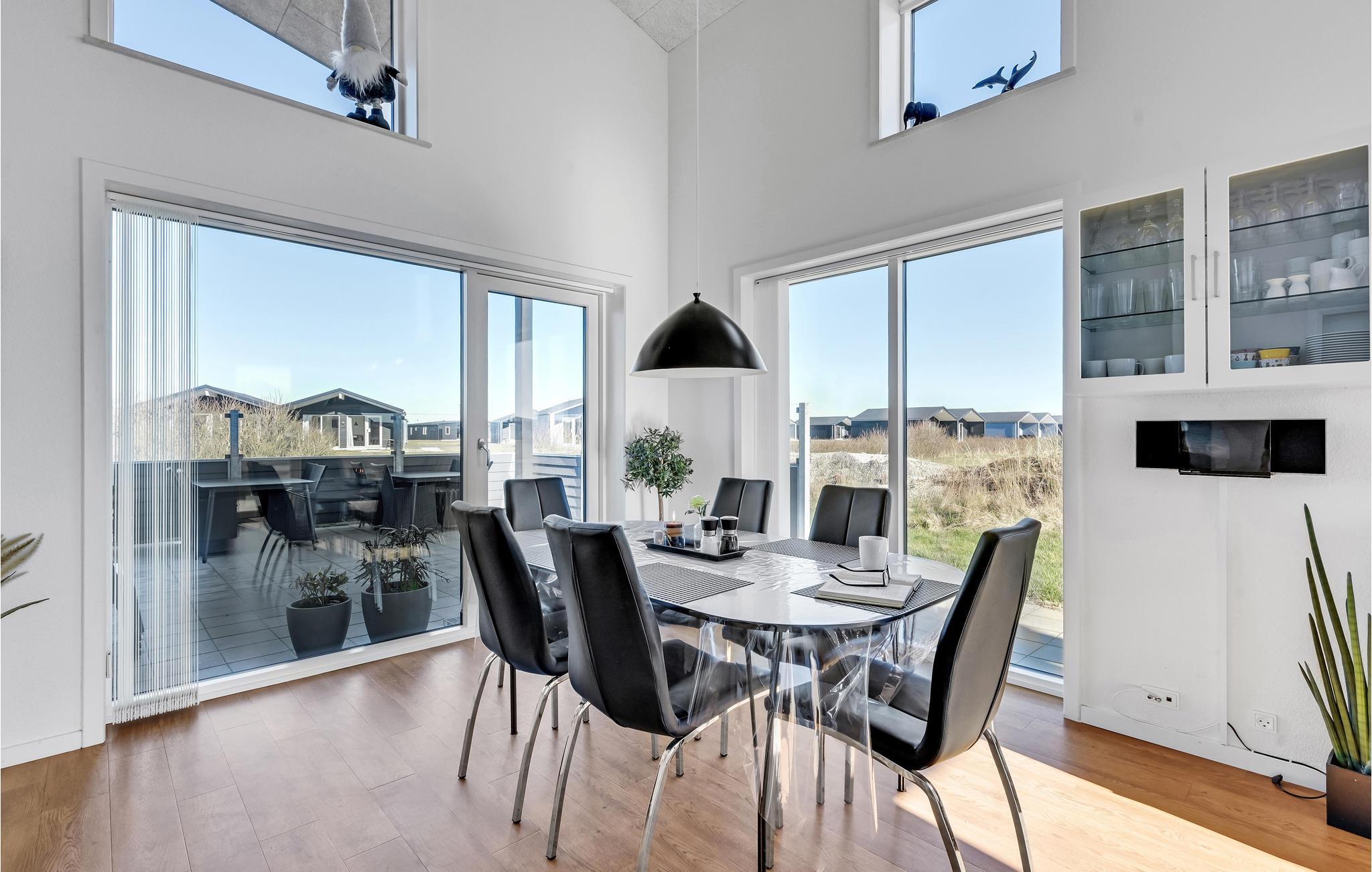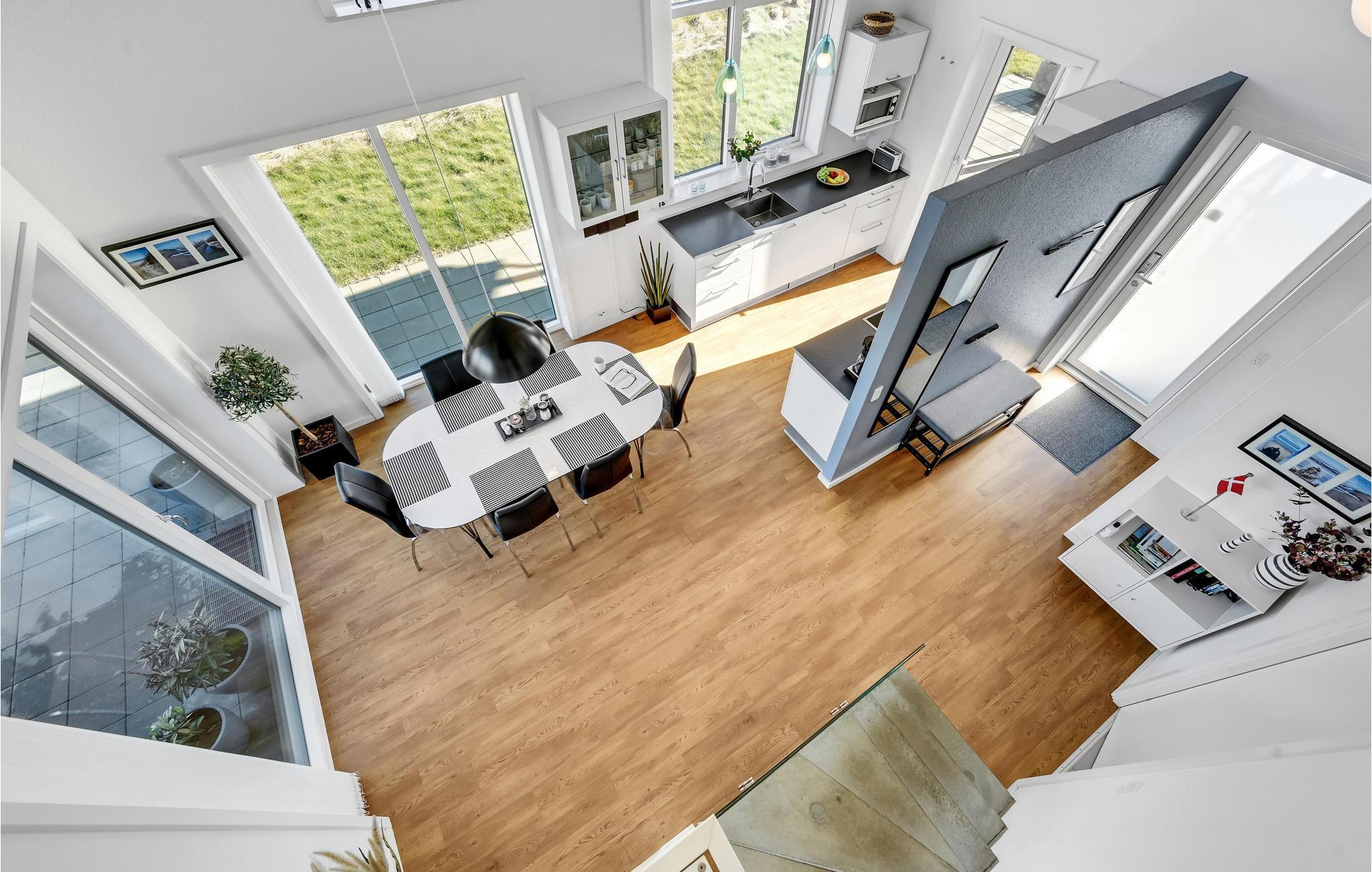 Velkommen i dette feriehus, der med sine gode faciliteter egner sig perfekt til en eller flere familier. Huset har en stue og en spiseplads med store vinduer, hvor I kan tilbringe mange hyggelige timer sammen. Husets mange værelser gør det også nemt at trække sig tilbage og nyde lidt privatliv. På altanen på 1. sal finder I det ideelle sted at starte dagen med en kop kaffe.
