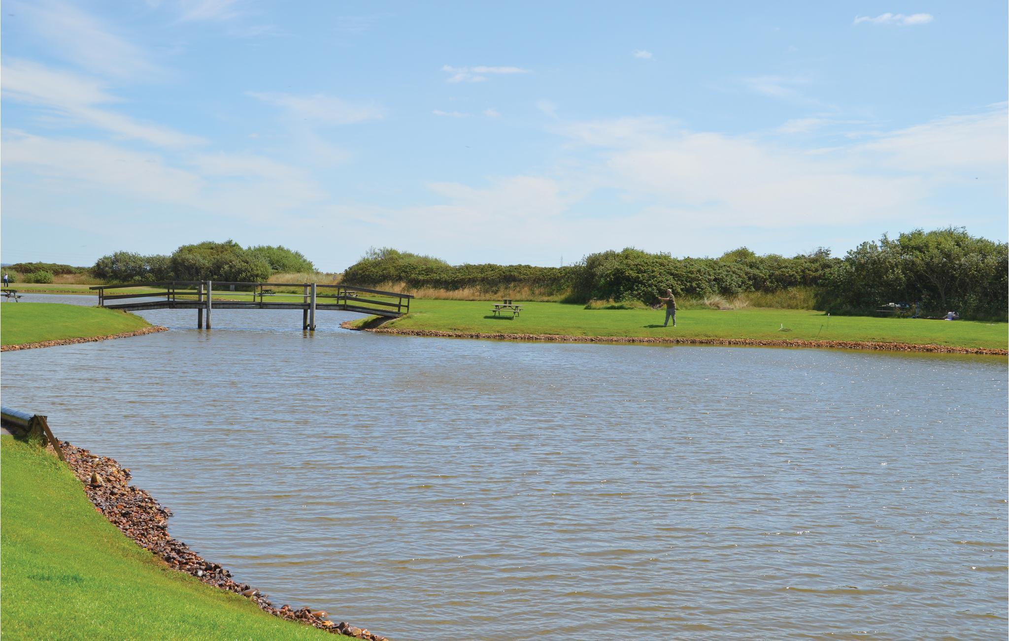 Huset ligger i et feriecenter tæt på en golfbane og 500 meter fra Vesterhavets sandstrande. Her kan I bade og gå friske ture langs vandet hele året rundt. Den hyggelige by Søndervig ligger smukt ved Vesterhavet og byder på forskellige aktiviteter såsom minigolf, tennis og svømmehal få hundrede meter fra huset.