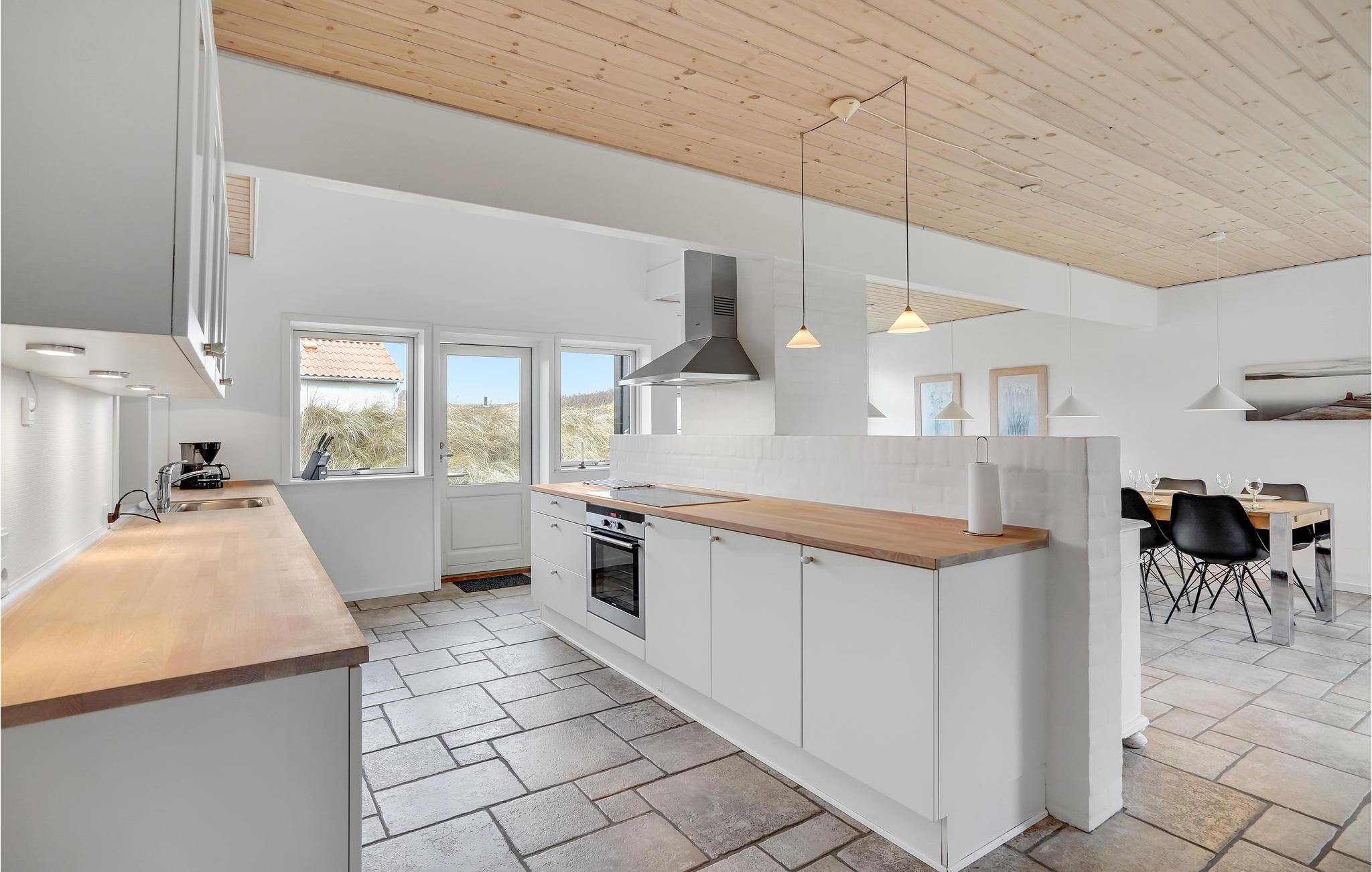 Midt i Søndervig og kun 200 m fra Vesterhavet ligger denne perle af et feriehus i flot og gennemført kvalitet.