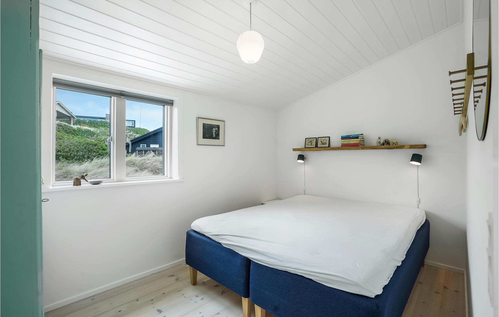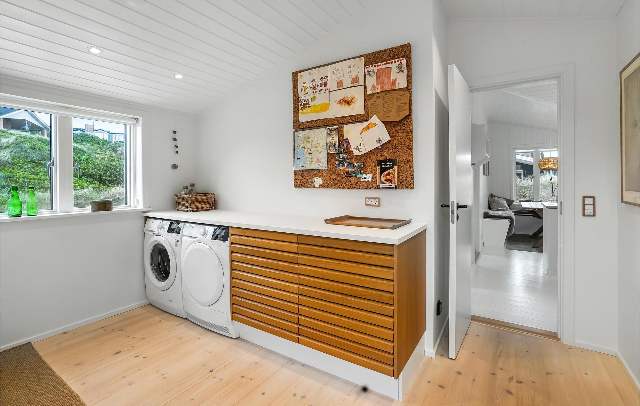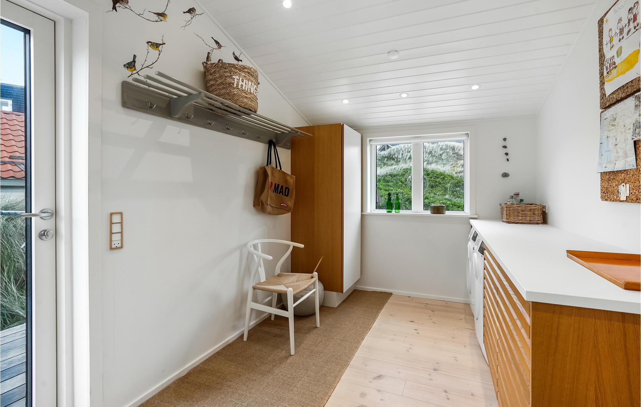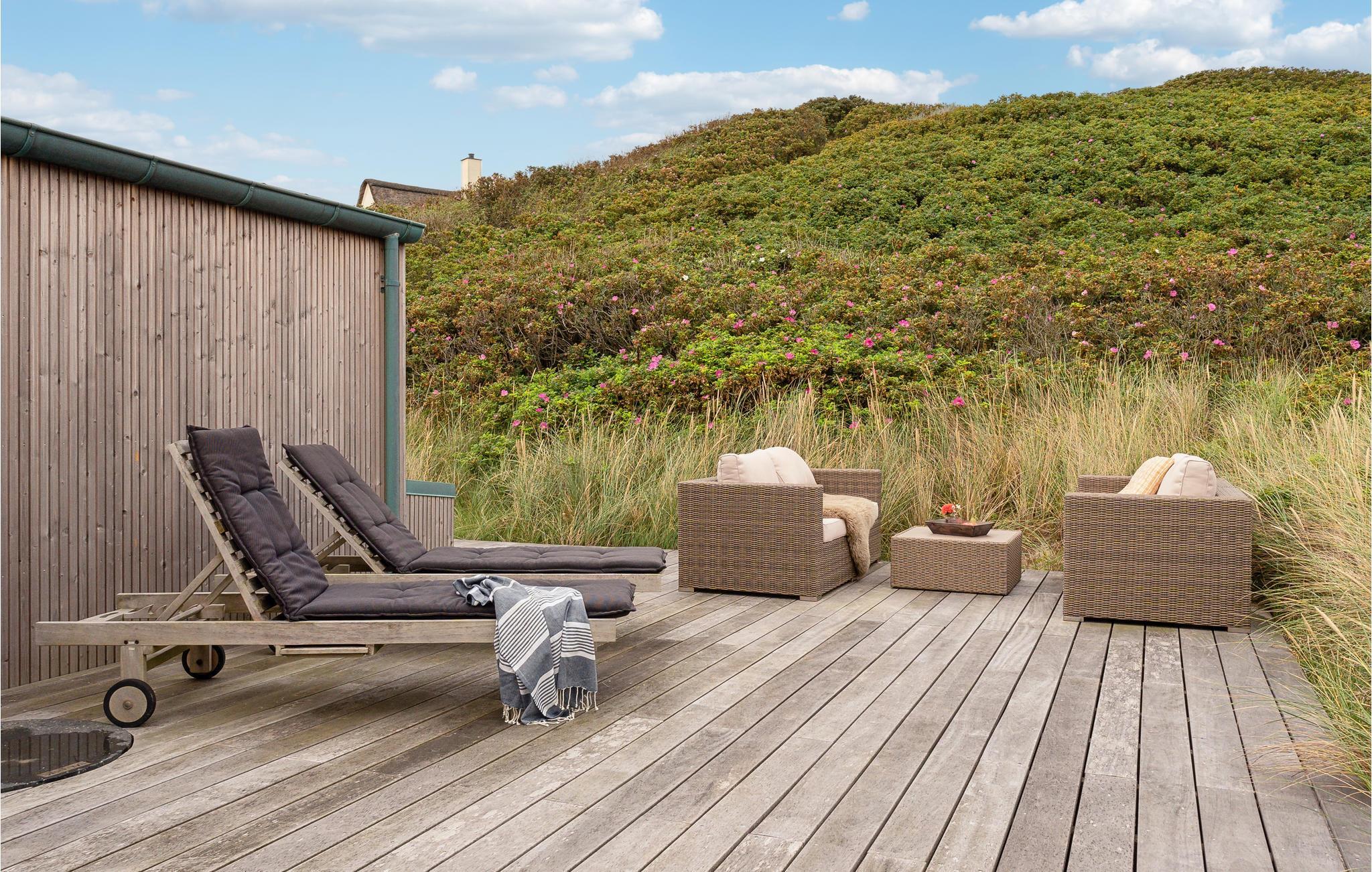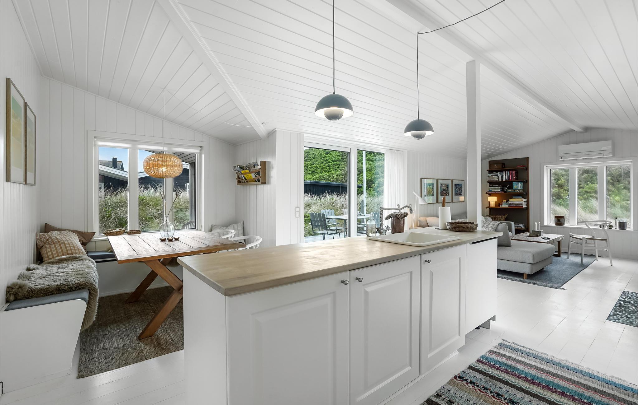 Tag med jeres lille familie eller et par venner til dette dejlige feriehus i Søndervig. Husets rustikke ydre harmonerer godt med naturomgivelserne, og huset overrasker indenfor med sit hvide indre. Nærheden til stranden og lyset afspejler sig i opholdsstuens gennemgående hvide farve, som også viser sammenhængen og adskillelsen fra de øvrige rum. Her vil I føle jer godt tilpas. Det veludstyrede feriehus byder på en dejlig stor terrasse, der løber næsten hele vejen rundt om huset. Her kan I slikke sol på liggestolene og nyde stemningsfulde lange grillaftener. Efter en dukkert i Vesterhavet kan I skylle sandet af under den udendørs bruser. Beliggenheden indbyder til en rolig og afslappende ferie med mange dejlige stunder ved havet, som kun er få skridt væk.