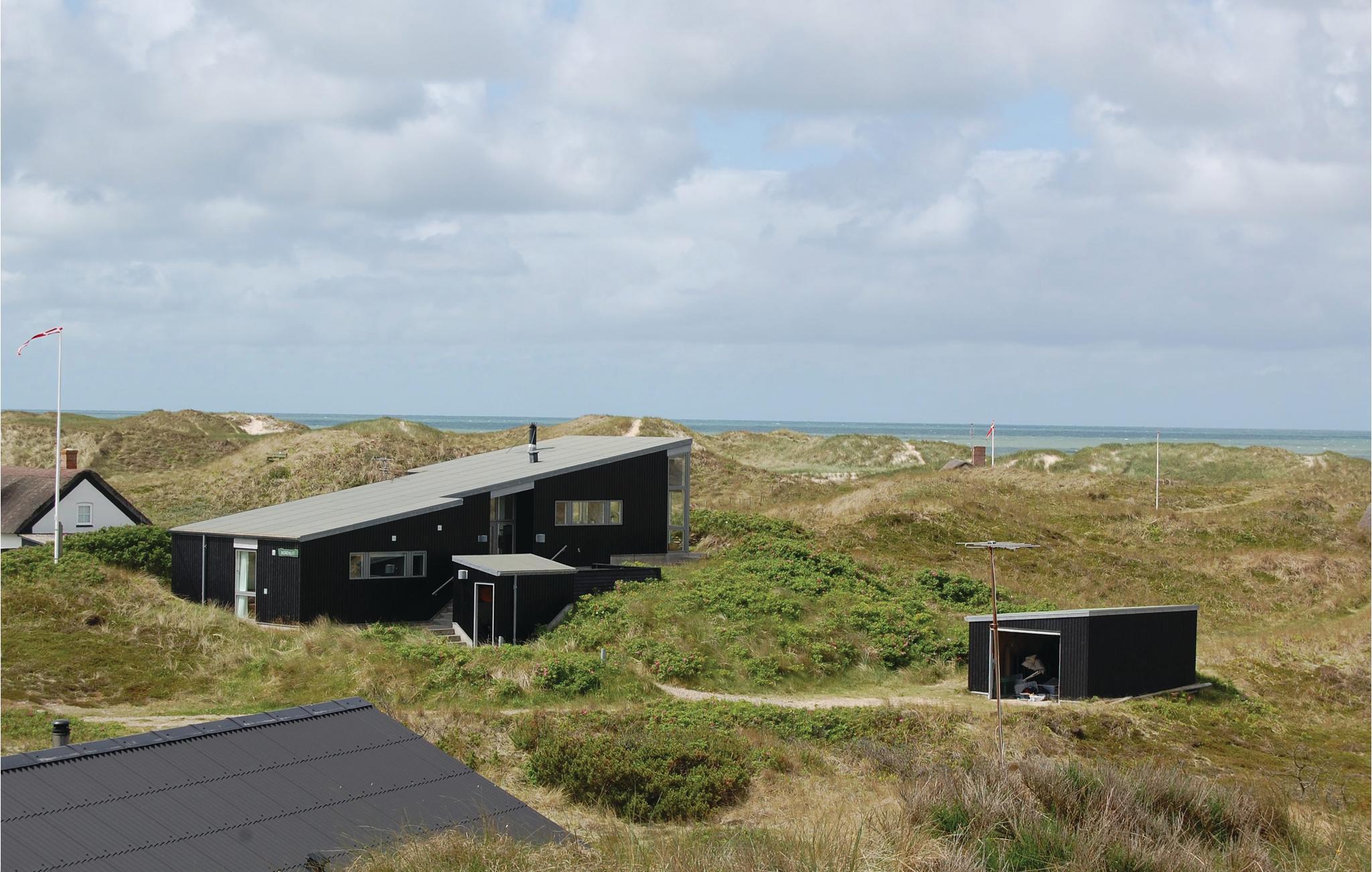 Feriehus med panoramaudsigt over Vesterhavet og klitter, moderne faciliteter og terrasse til afslapning.