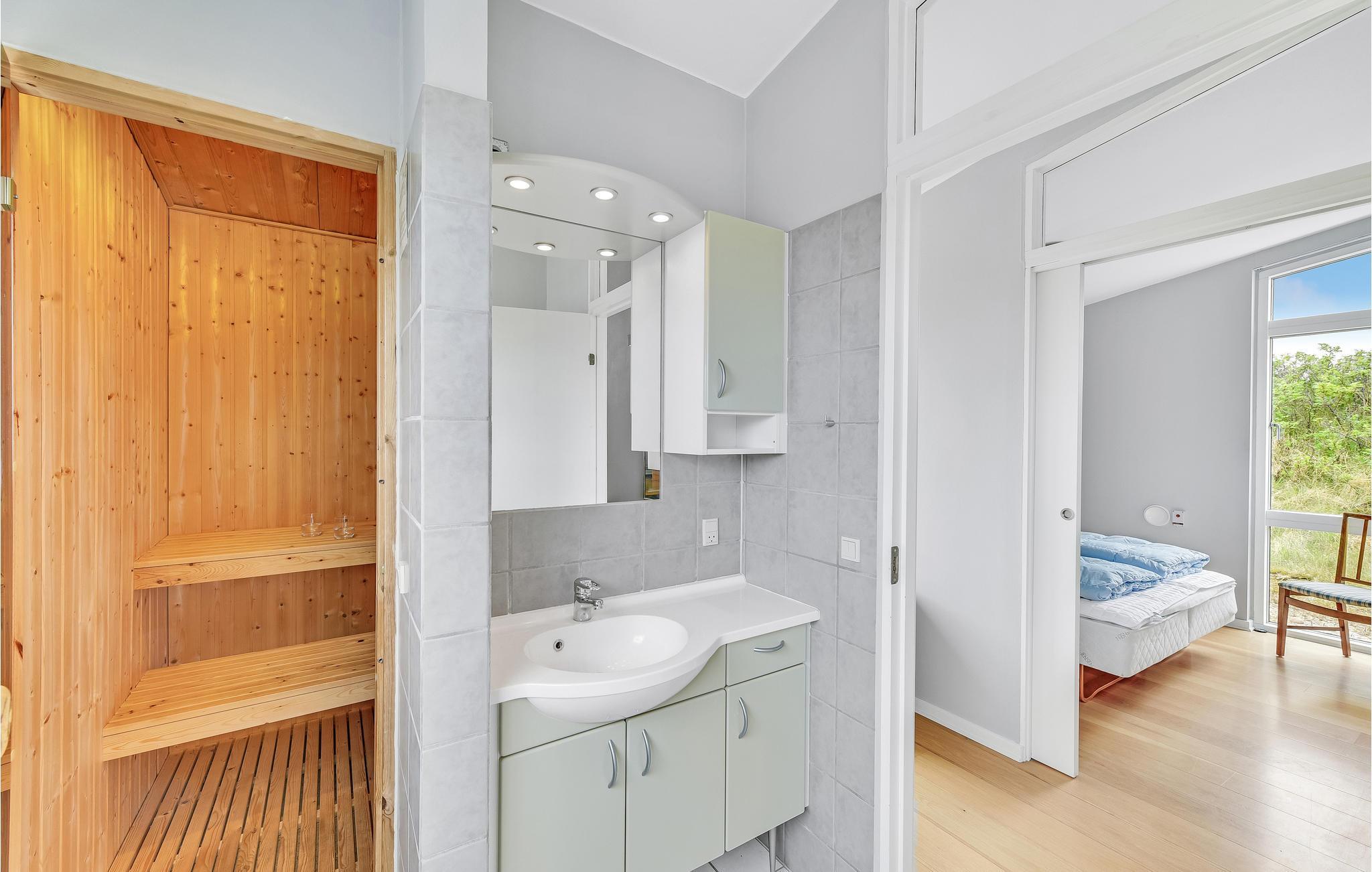 Der er en pragtfuld panoramaudsigt over Vesterhavet og klitterne fra dette skønne, velbeliggende feriehus, der har en enestående beliggenhed på toppen af en klit. Det store panoramavindue fremhæver den lyse atmosfære og giver en fornemmelse af, at naturen kommer ind i huset. Det er udstyret med alle moderne faciliteter. Terrasserne indbyder til afslappende timer med solbadning om dagen og flotte solnedgange på de smukke sommeraftener. Omgivelserne er ideelle til traveture i den smukke, barske natur, ligesom Søndervig med butikker, bowlingcenter, badeland m.m. ligger i gåafstand fra huset. Har I lyst til en ferie, hvor nøgleordene er natur, strand, hav, klitter og masser af frisk luft, er dette hus perfekt.