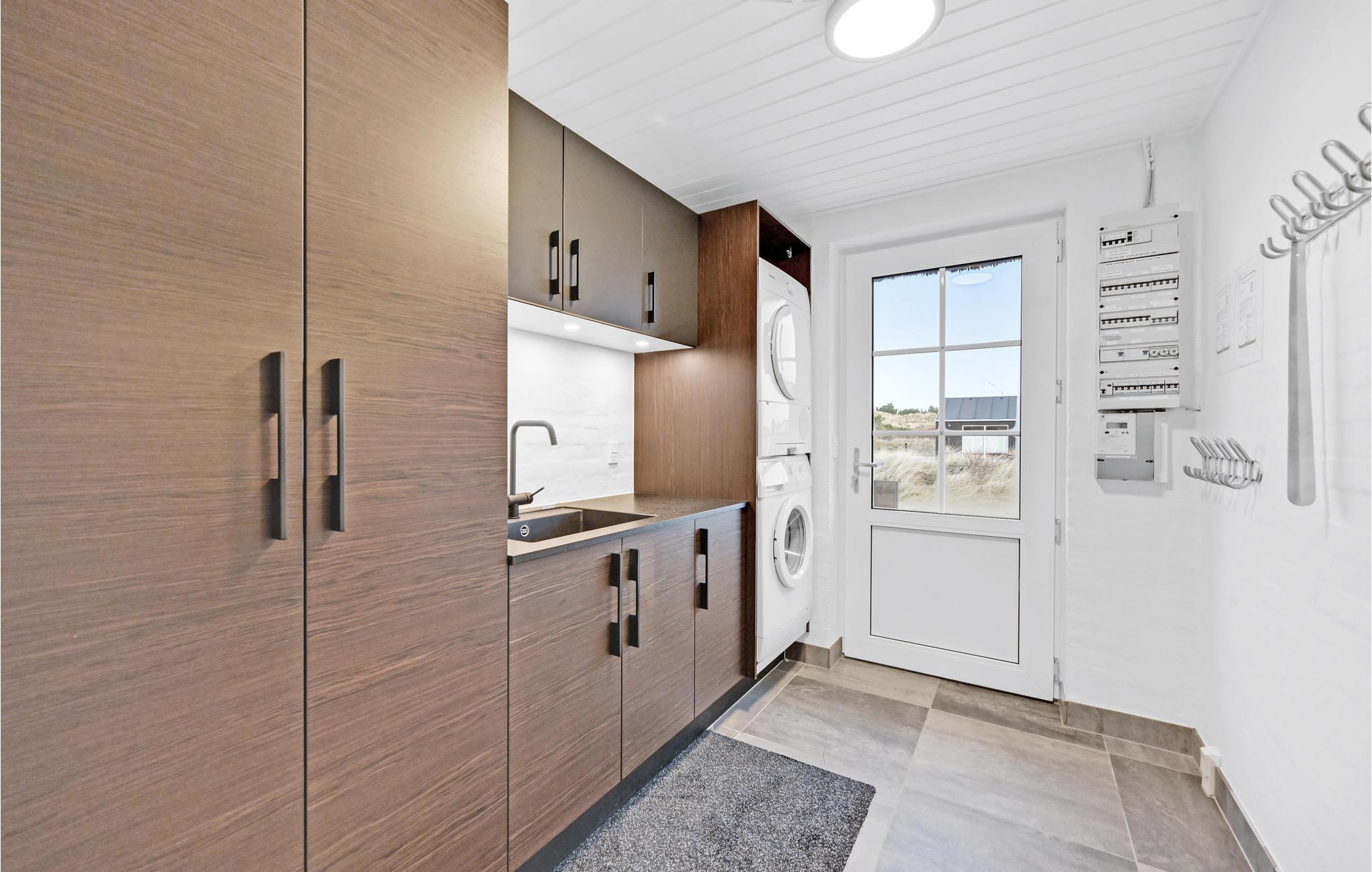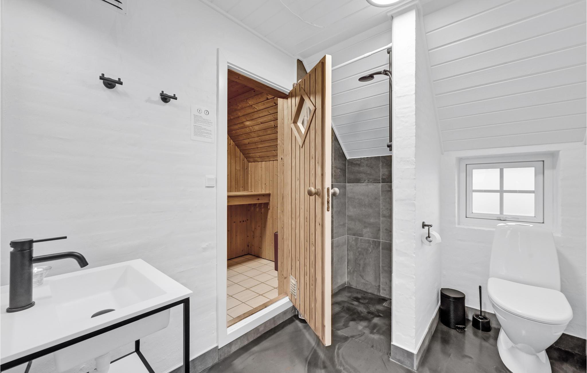 I det dejlige feriehusområde Søndervig, ligger dette store, velindrettede feriehus med god plads til alle. Huset er indrettet med et skønt stort køkken, i åben kombination med stuen, hvorfra I har udgang til den lukkede terrasse og adgang til pool afdelingen med spa og sauna. Derudover er der seks gode soverum, de fire med dobbeltsenge og to med fire køjepladser hver. Der er tre pæne badeværelser i huset. I bor ikke langt fra Søndervig, som er en udpræget ferieby, med masser af liv om sommeren. Her er bl.a. en stor dagligvareforretning, cykeludlejning, div. specialforretninger mm. Hvide Sande ligger heller ikke langt fra huset, og er I friske kan I cykle, da der er cykelsti helt til Hvide Sande! Det er en gammel fiskerby, hvor I kan opleve en fiskeauktion, selv fiske fra molerne og nyde et måltid mad i en af restauranterne mm. I området er der mange kilometer cykelstier, flere gode fiskesøer, fine surf muligheder ved Ringkøbing Fjord og glem endelig ikke at gå en tur langs Vesterhavet – uanset vejr! Vesterhavet er smukt og indbydende om sommeren og når vejret er godt, men når vinden raser og kulden bider, er det barskt og storslået. Efter en god dag, i den friske havluft, kan I slappe af og nyde roen i feriehuset, uanset om det bliver på terrassen, ved brændeovnen, i spaen eller et helt fjerde sted.
