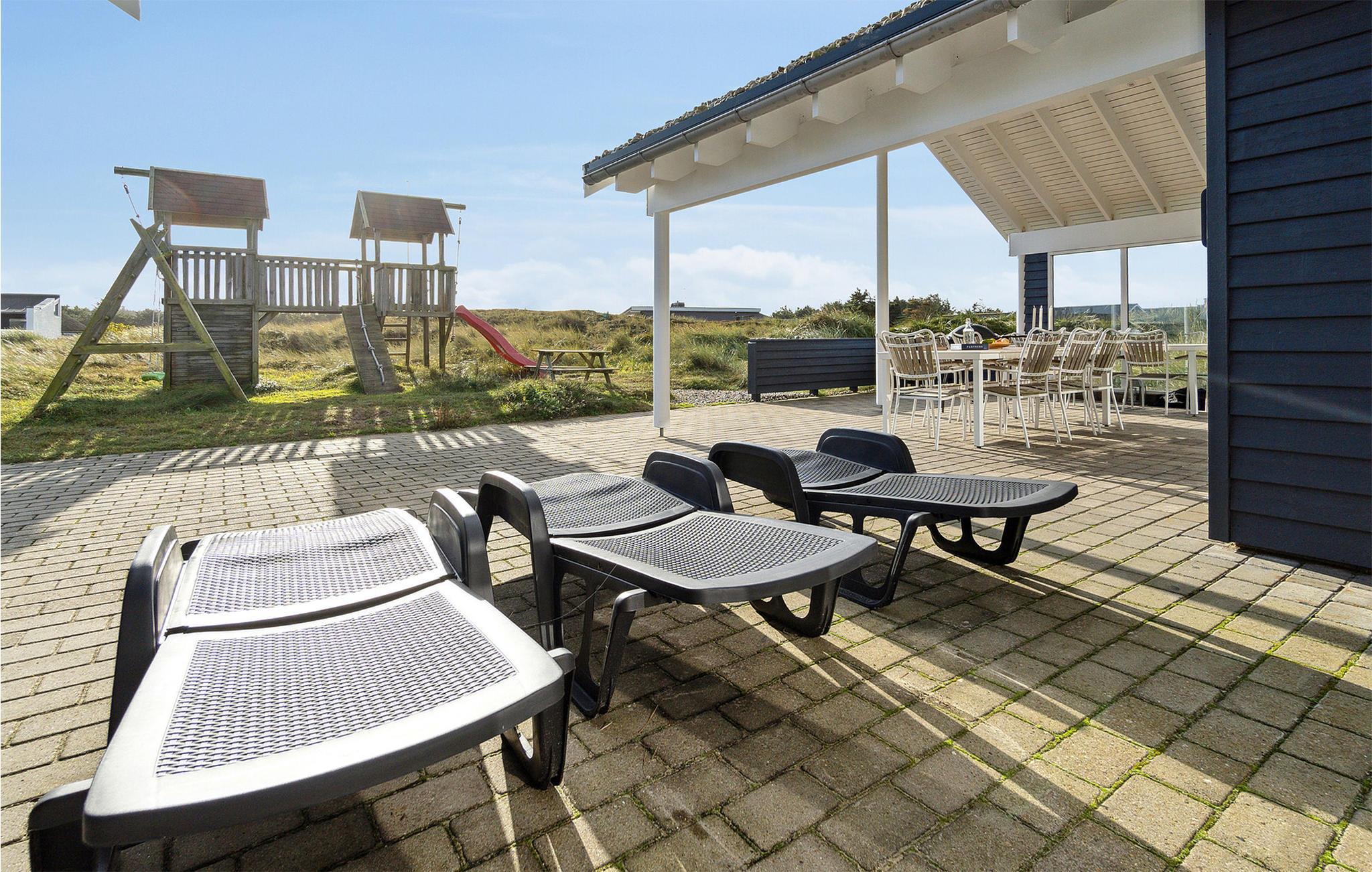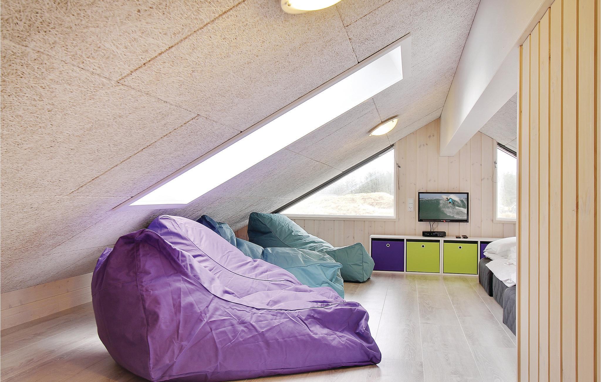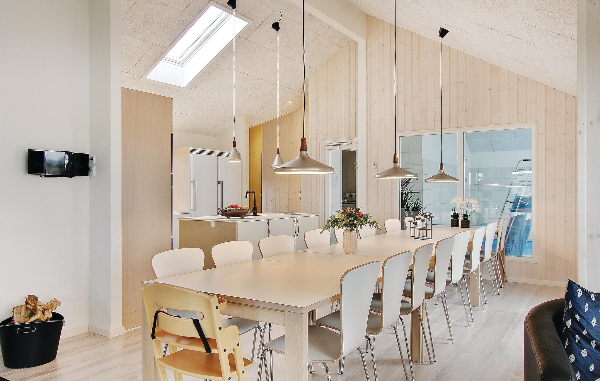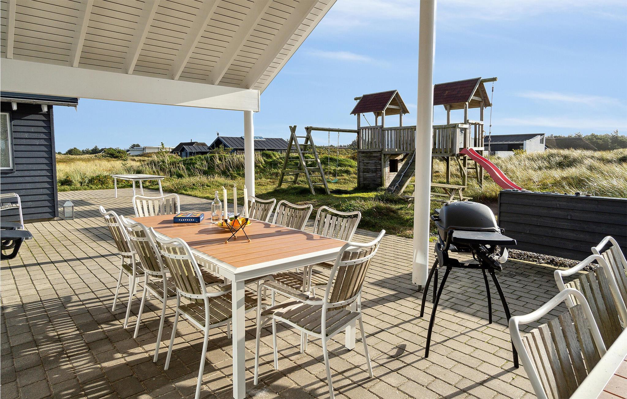 Nær feriebyen Søndervigs mange muligheder og skønne strand ligger dette pragtfulde poolhus, der med sine mange aktivitetsmuligheder er de perfekte rammer for en succesfuld ferie året rundt. Huset byder på al tænkelig komfort, og er bygget op omkring to soveafdelinger med hvert sit badeværelse, hvilket gør det meget velegnet til flere familier, som ønsker at holde ferie sammen. De to store hemse, med plads til 4 personer, vil helt sikkert være et hit hos børnene. Huset er udstyret med lydisolerende lofter, hvilket gør det meget behageligt at færdes i huset. Der er lagt stor vægt på luksus - her tænkes specielt på husets imponerende poolafdeling, som indeholder stor pool med vandrutsjebane og et dejligt fire personers spabad samt en stor sauna. I det store aktivitetsrum kan der spilles både billard/bordtennis, dart, bordfodbold, PS3 og Wii. I baren er der rig mulighed for at mikse spændende drinks, eller servere kolde øl og sodavand fra barens køleskab. Køkkenet er særdeles velindrettet og udstyret med to komfurer og to opvaskemaskiner samt to kølefryseskabe, så der uden problemer kan være mange kokke og køkkenskrivere om den fælles madlavning. Den danske sommer kan nydes på den delvist overdækkede terrasse, mens børnene gynger og leger i sandkassen.