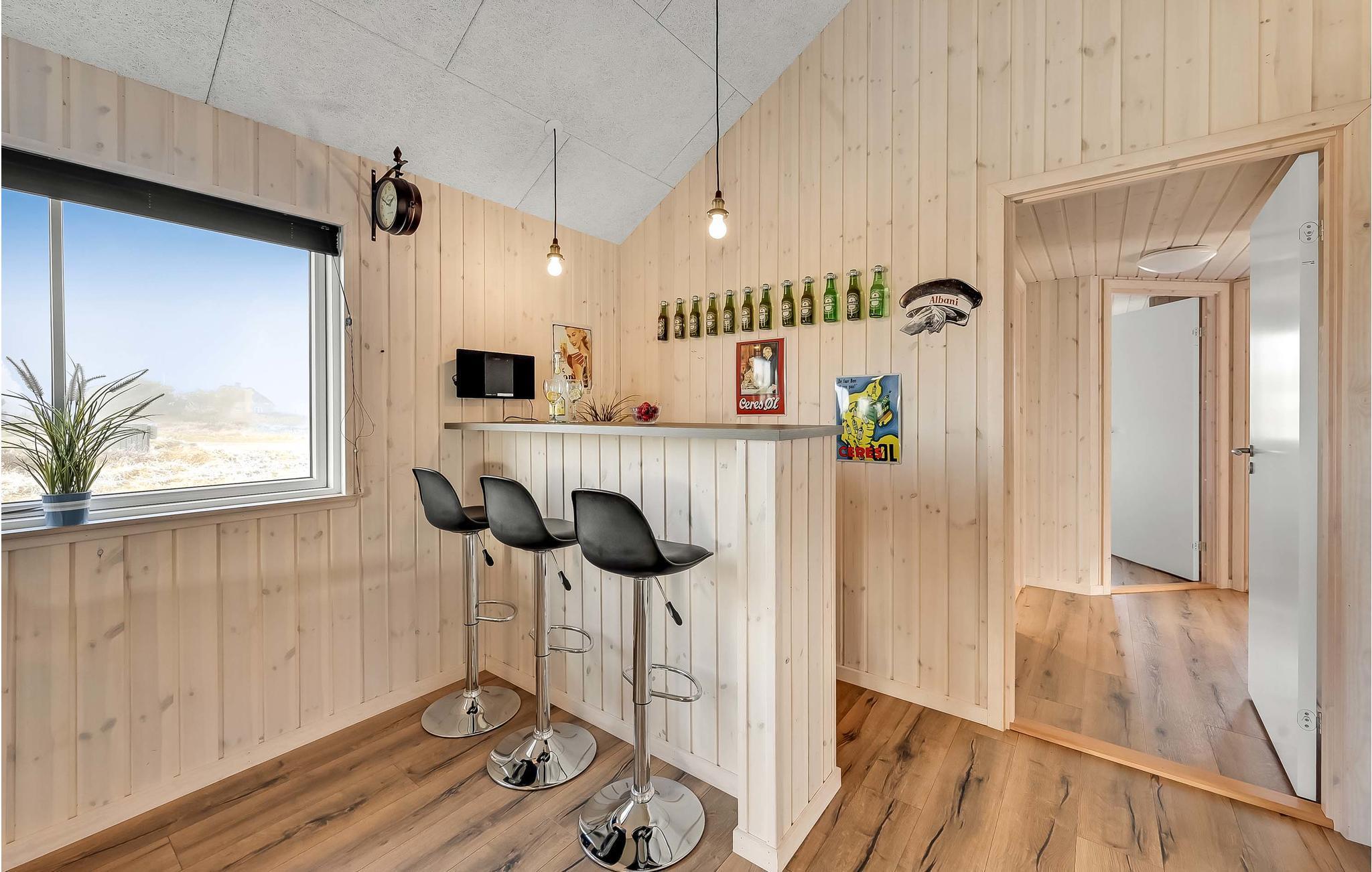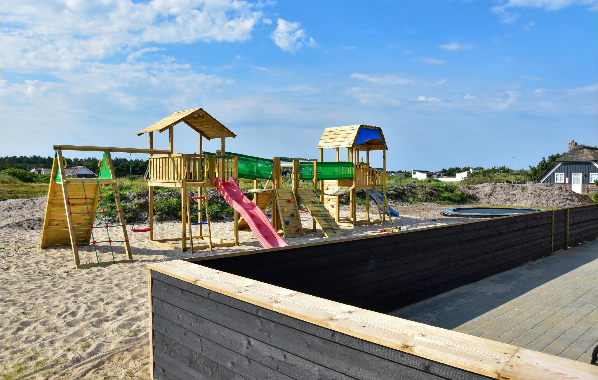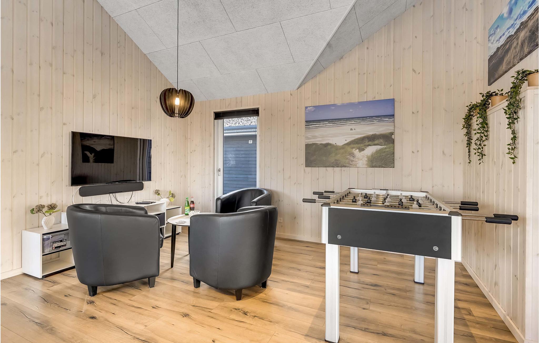 I det store aktivitetsrum kan der spilles både billard/bordtennis, bordfodbold, PS3 og Wii. I baren er der rig mulighed for at mikse spændende drinks, eller servere kolde øl og sodavand fra barens køleskab. Køkkenet er særdeles velindrettet og udstyret med to komfurer og to opvaskemaskiner samt to køle/fryseskabe, så der uden problemer kan være mange kokke og køkkenskrivere om den fælles madlavning. Den danske sommer kan nydes på den delvist overdækkede terrasse, mens børnene gynger og leger i sandkassen. Der er ikke langt til fiskerbyen Hvide Sande, og her kan købes friske fisk. Er I vilde med surfing kan Hvide Sande også varmt anbefales, da der er mange muligheder for forskellige vandsportaktiviteter.