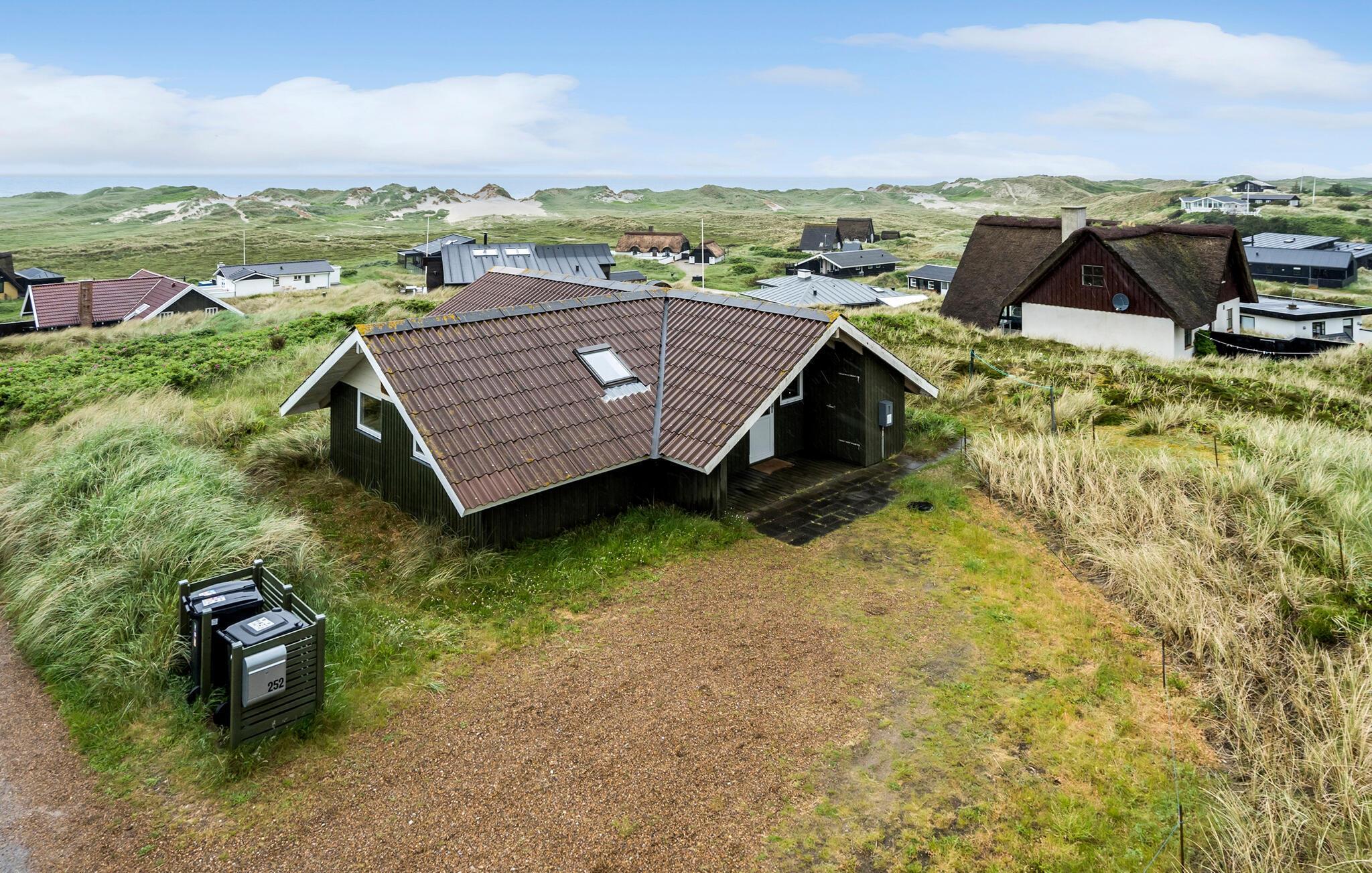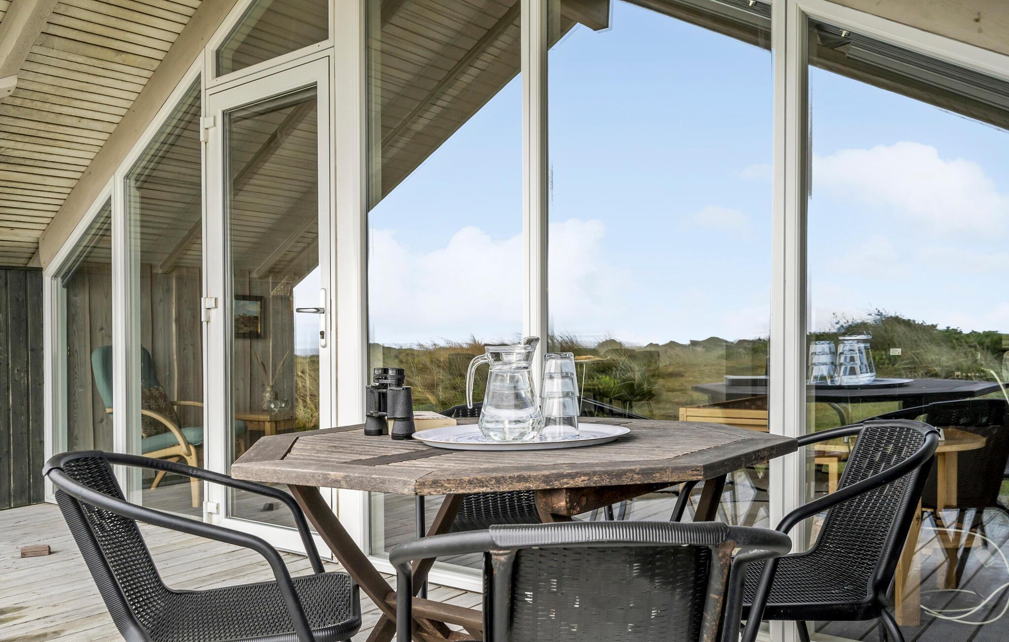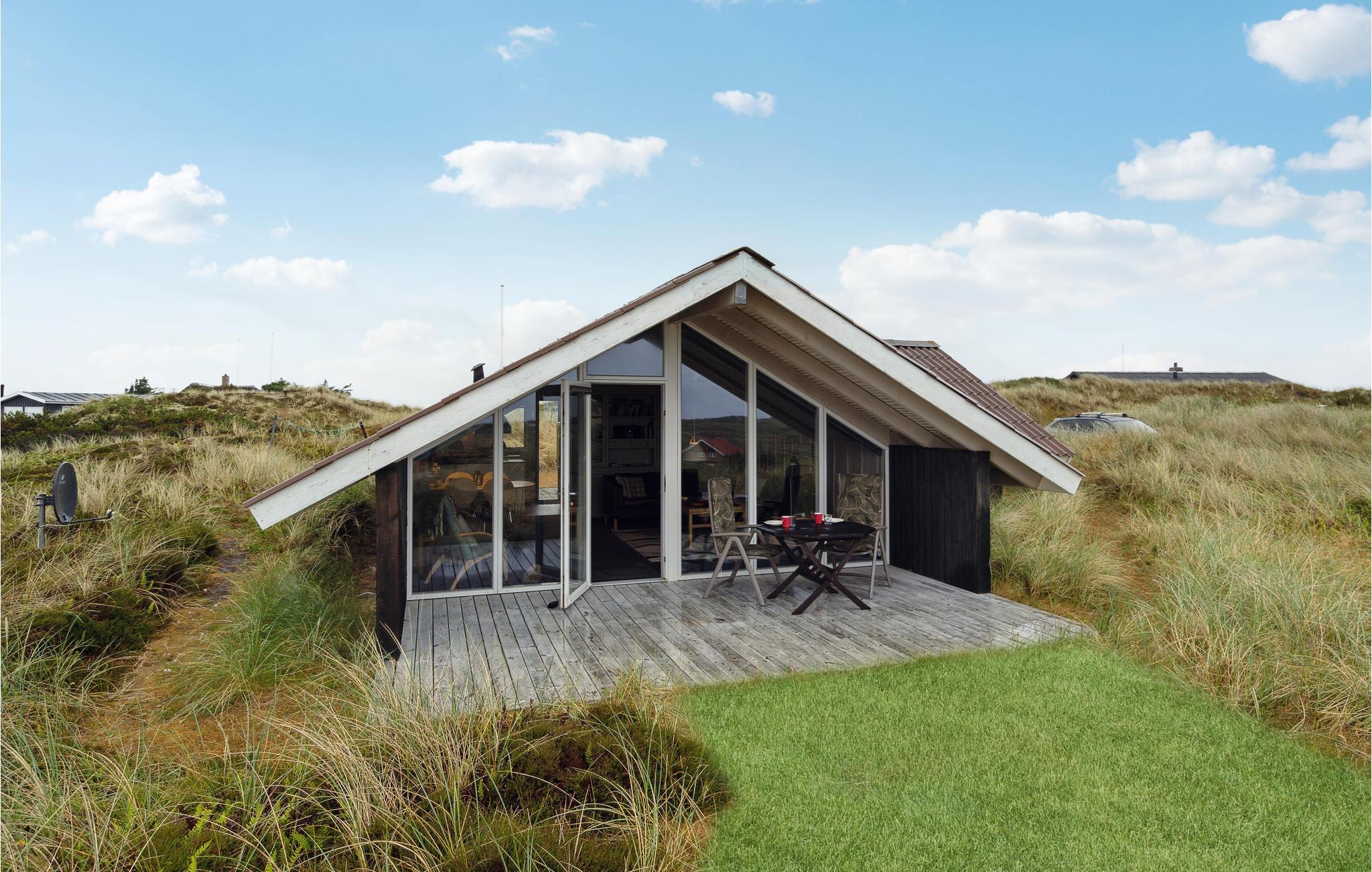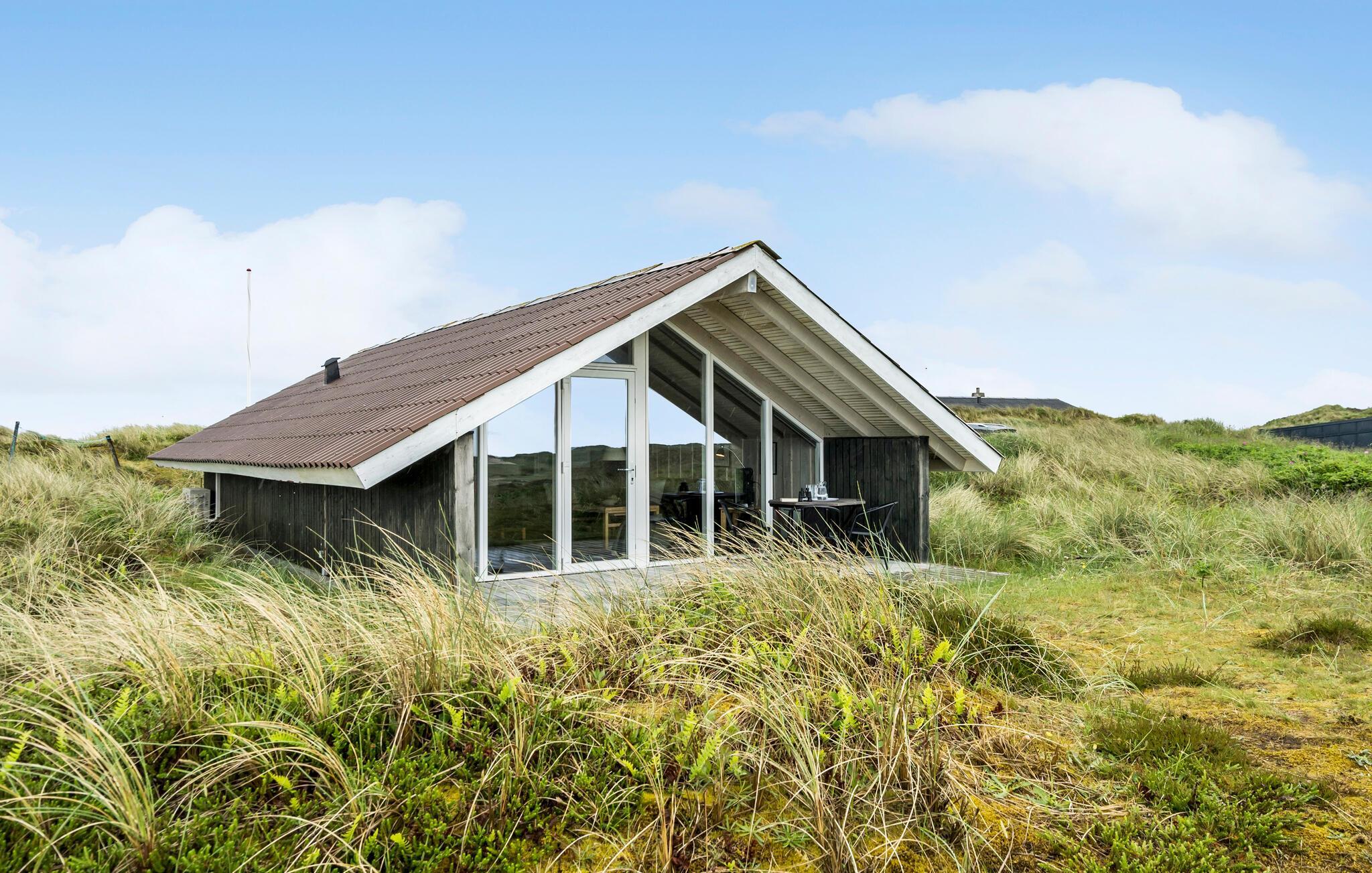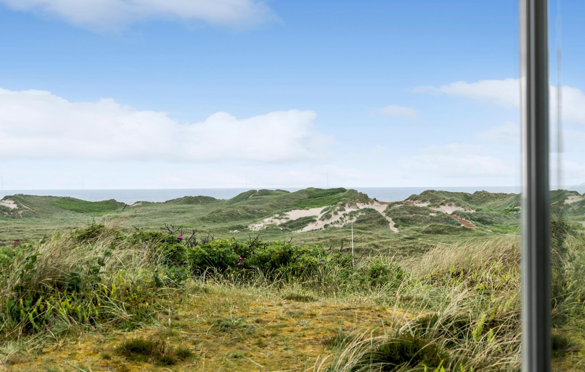 Feriehus med panoramaudsigt over havet, beliggende fredeligt på klitterne nær Søndervig Strand.