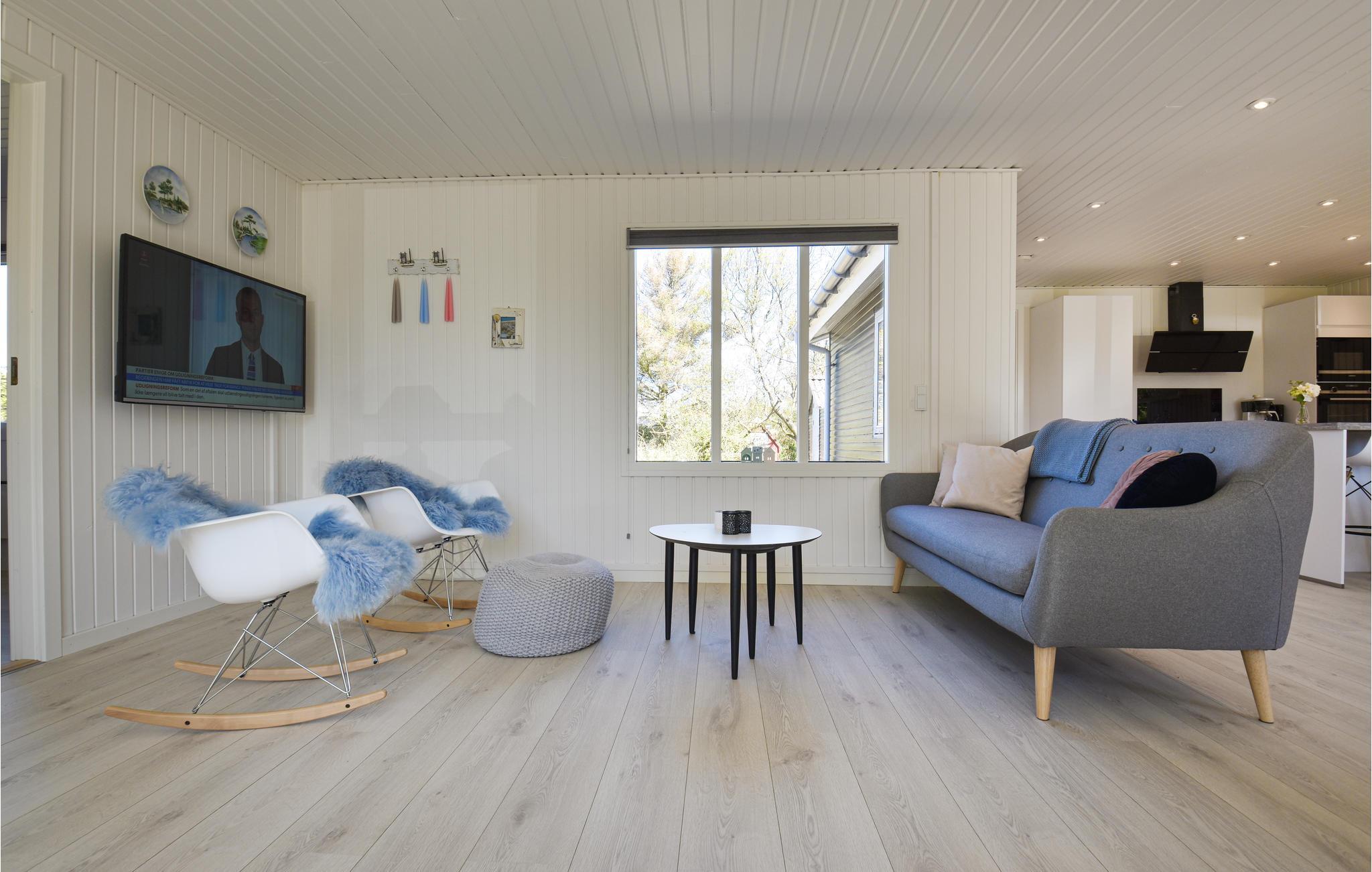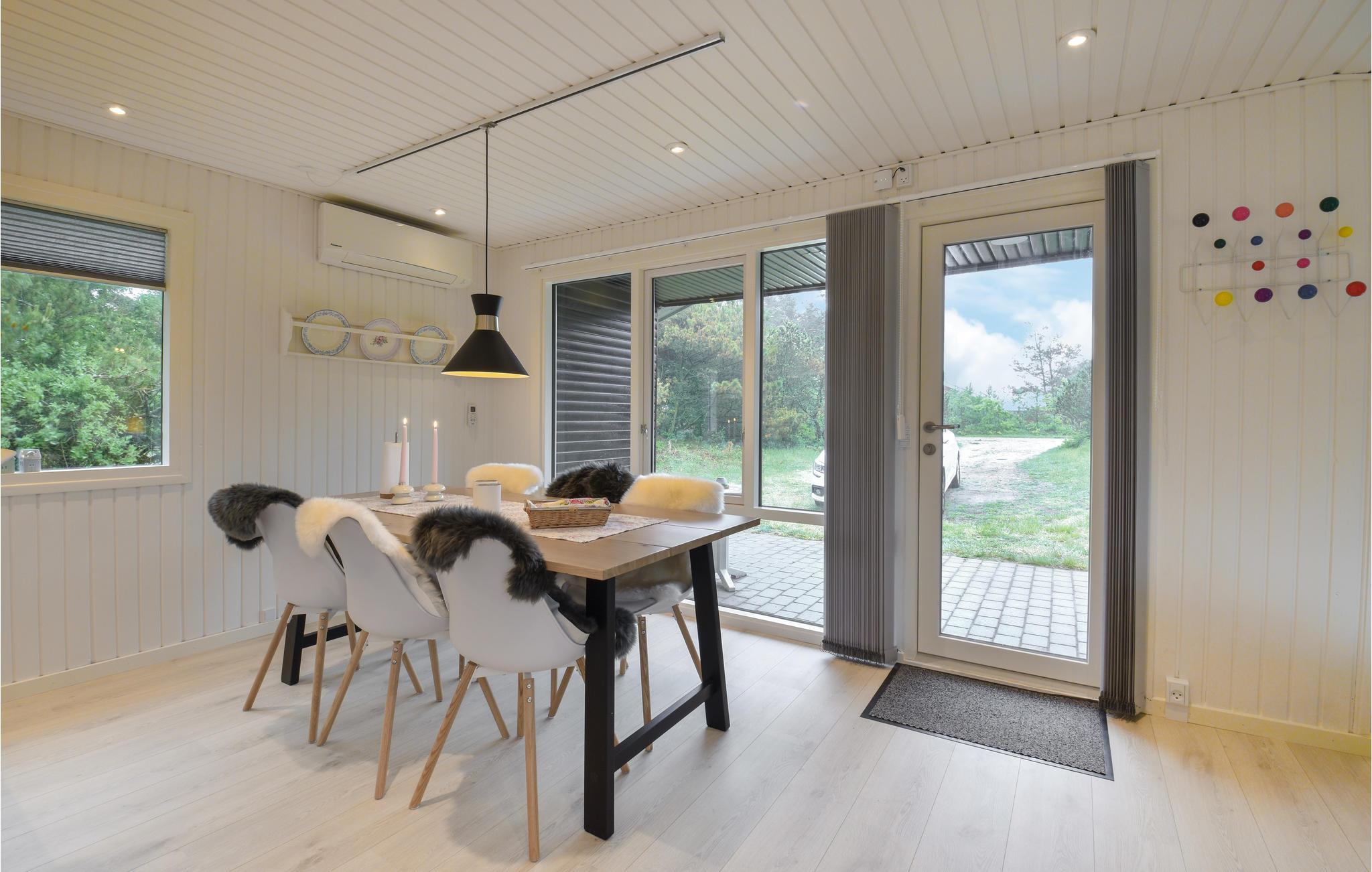 I det meget populære ferieområde ved Søndervig ligger dette fine og meget moderne indrettede sommerhus. Huset er gennemrenoveret i 2019 og fremstår lyst og venligt med store vinduespartier, der giver et fantastisk lysindfald i hele huset. Det store køkken ligger i åben forbindelse med stuen, og fra stuen er der adgang til husets to soveværelser, hver med en dobbeltseng. Badeværelset er indrettet med bruser samt vaskemaskine og tørretumbler. Der forefindes varmepumpe som supplerende varmekilde samt gulvvarme i køkken/alrummet og badeværelset. Ved huset ligger en dejlig, læfuld og overdækket, lille terrasse, samt en større åben terrasse, der liigger helt ugenert bagved huset.