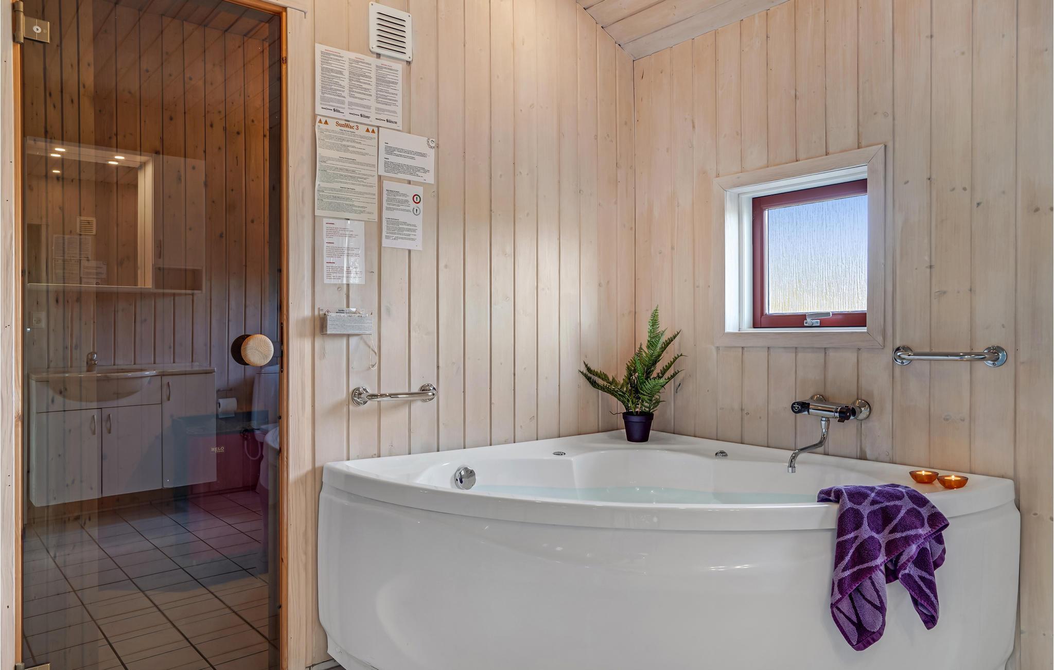 Nyd et nyrenoveret fritidshus med fjordudsigt, sauna og spabad tæt på Søndervig Strand.