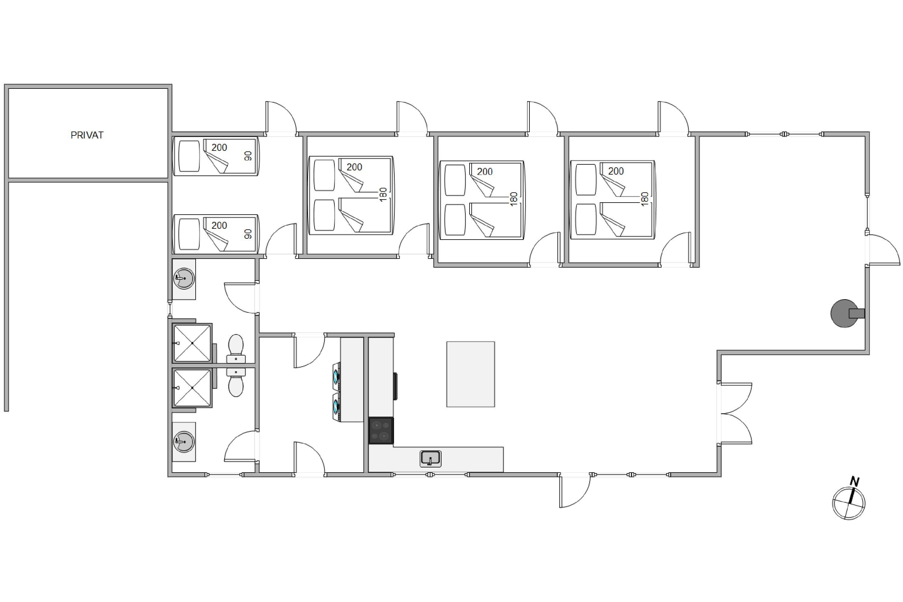 Med plads til op til 8 personer tilbyder dette sommerhus en ideel base for dem, der ønsker at nyde hinandens selskab uden at gå på kompromis med komforten. Sommerhuset har fire rummelige soverum, der er indrettet med tre dobbeltsenge og to enkelsenge. De to badeværelser er begge udstyret med gulvvarme, hvilket er særligt behageligt på kølige morgener.