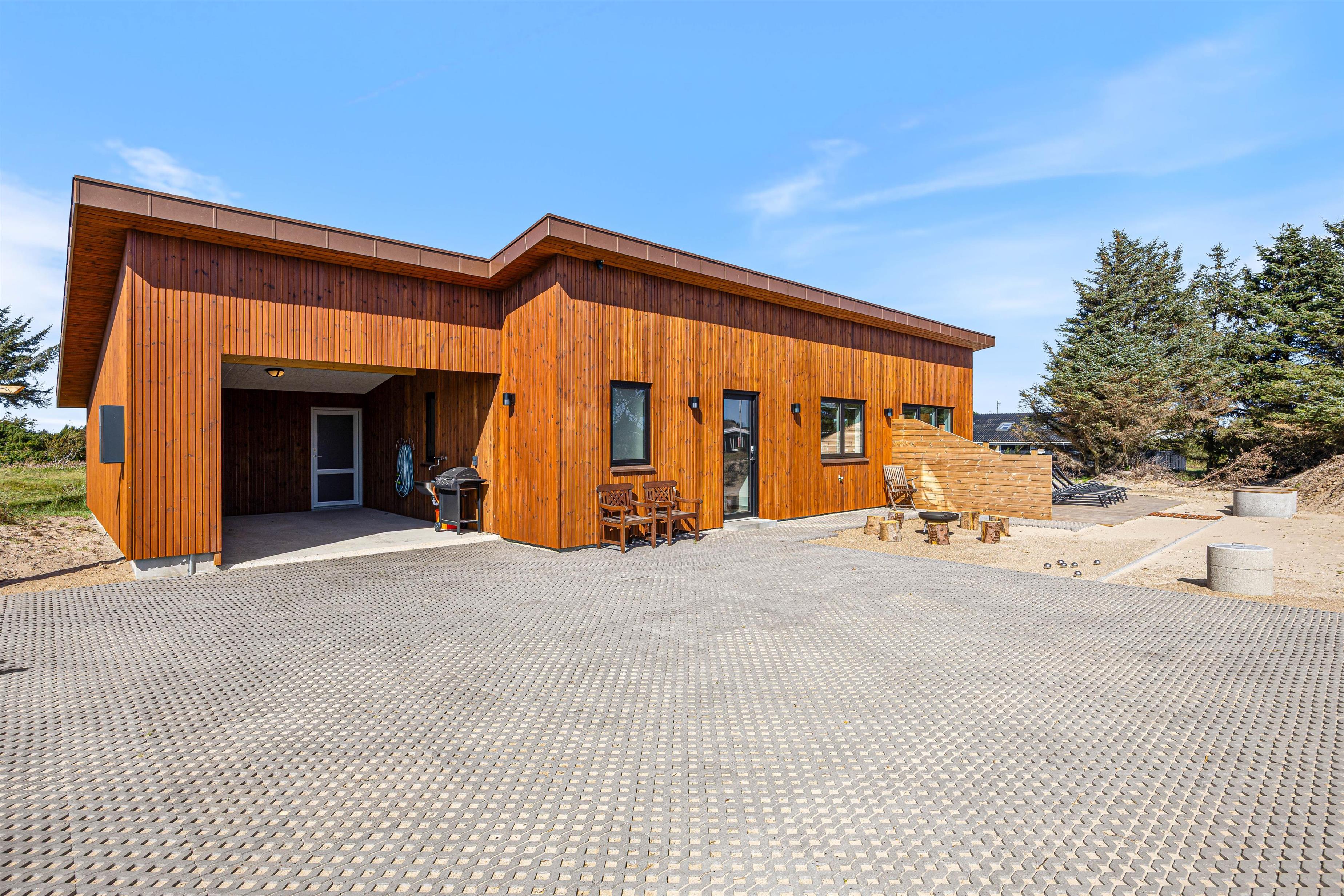 For dem der kører el-bil, er sommerhuset udstyret med ladestik, hvilket gør det muligt at lade bilen direkte ved sommerhuset.