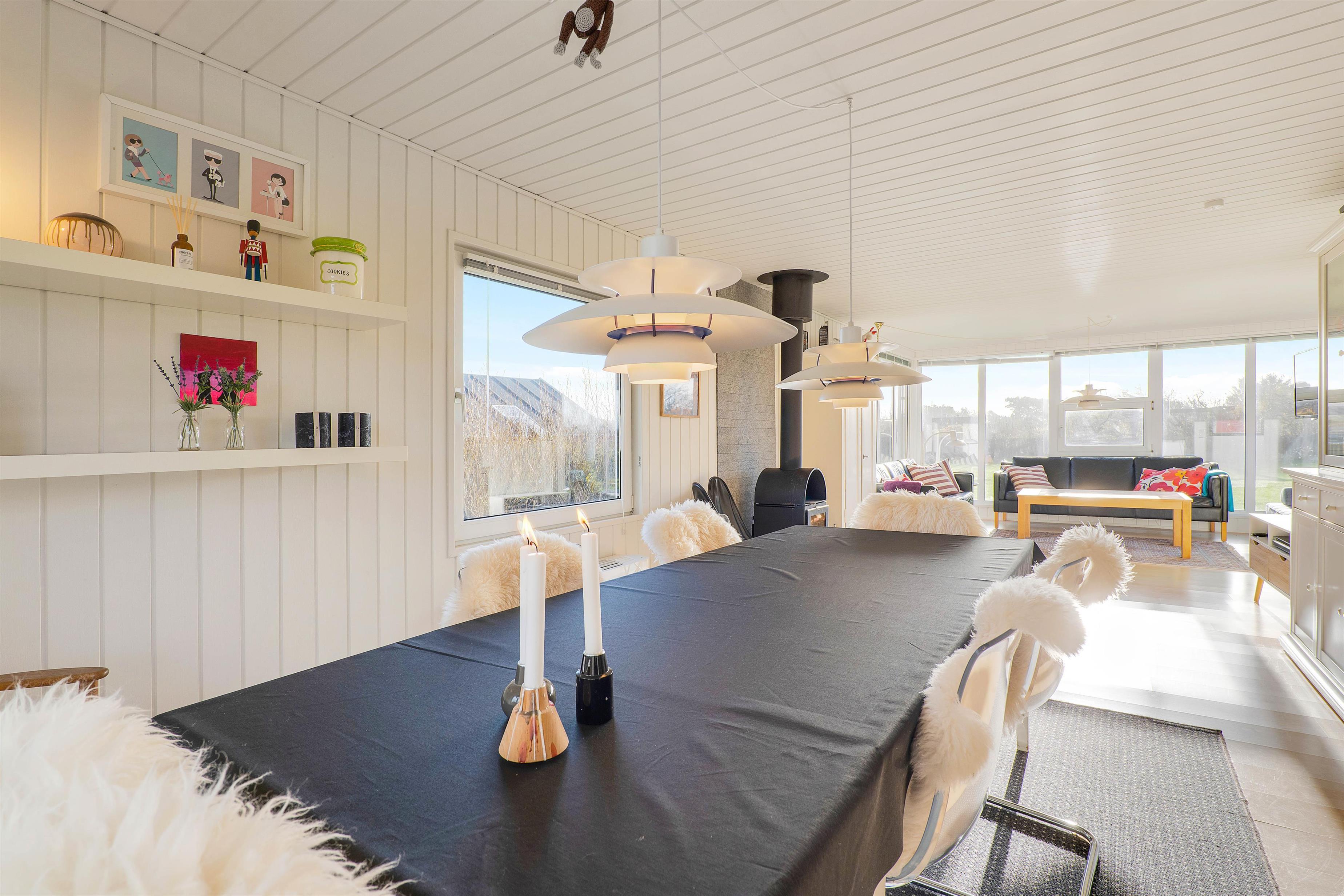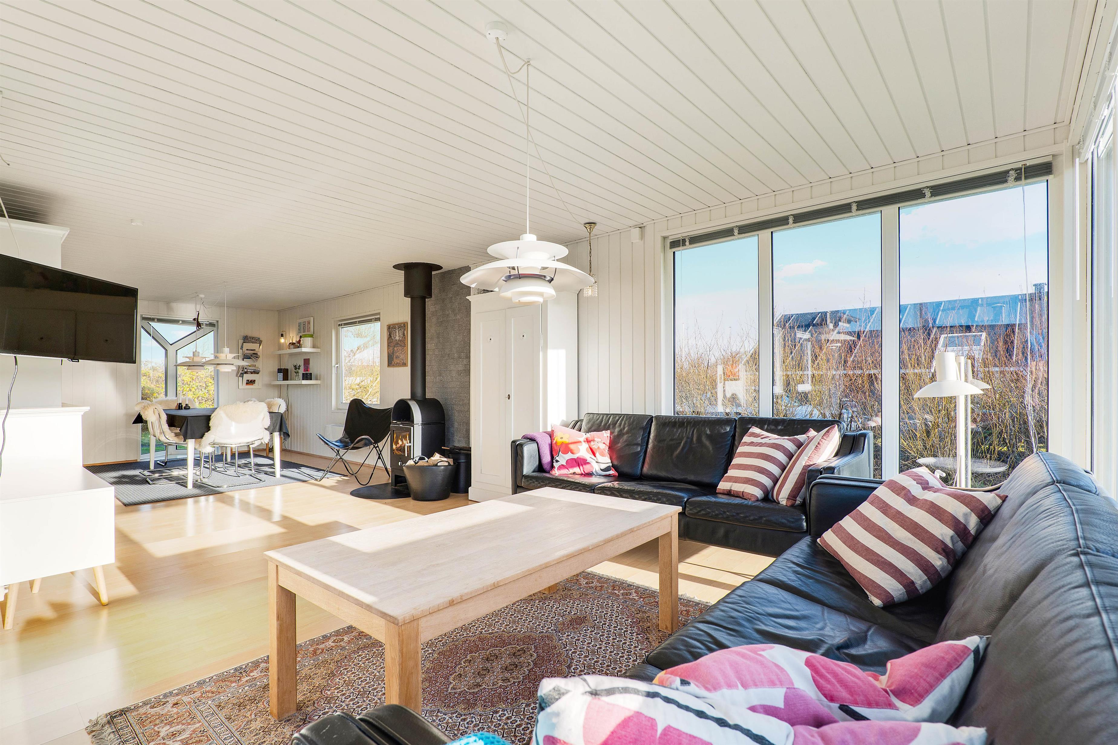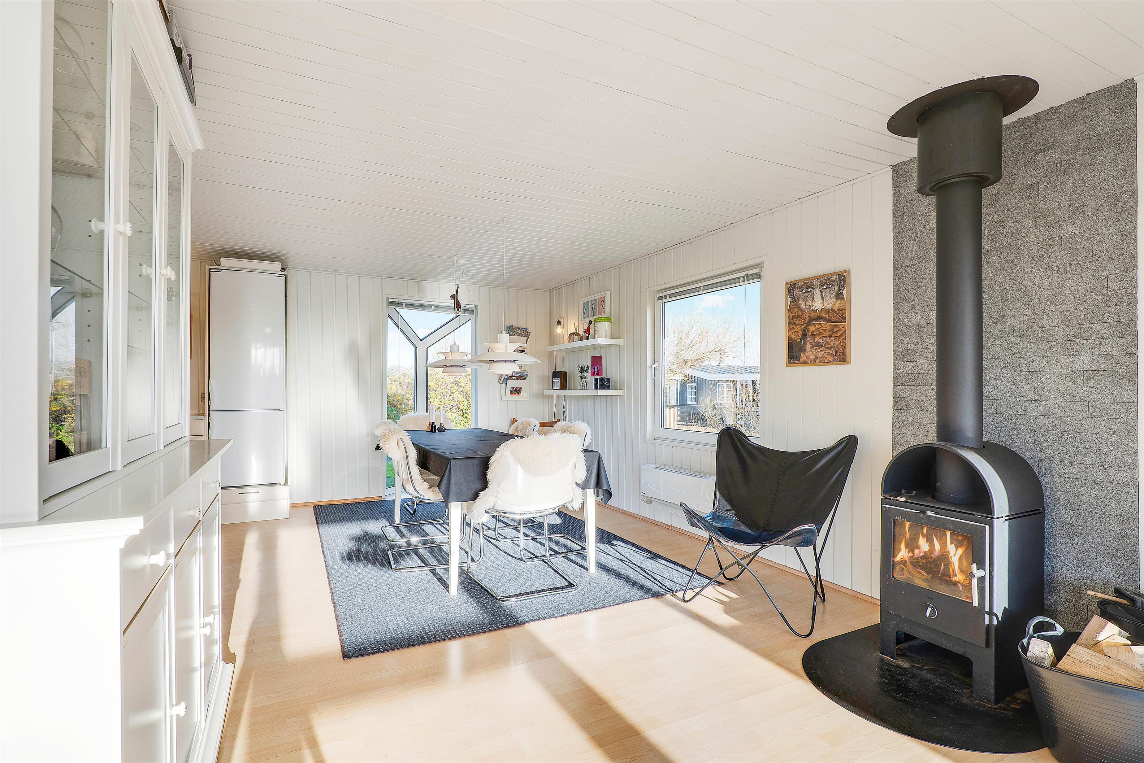 Hyggelig indretning med brændeovn på Solvej 38