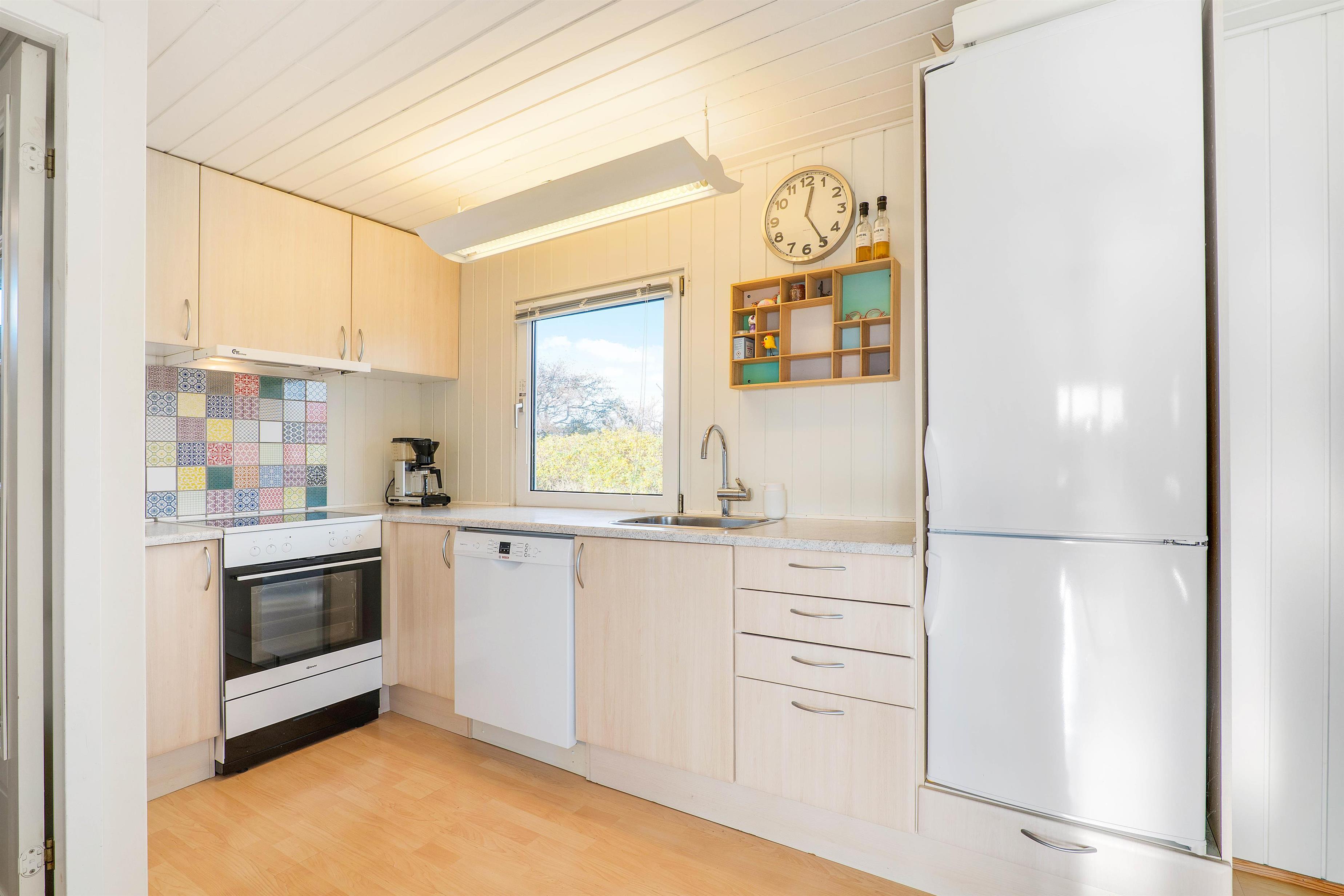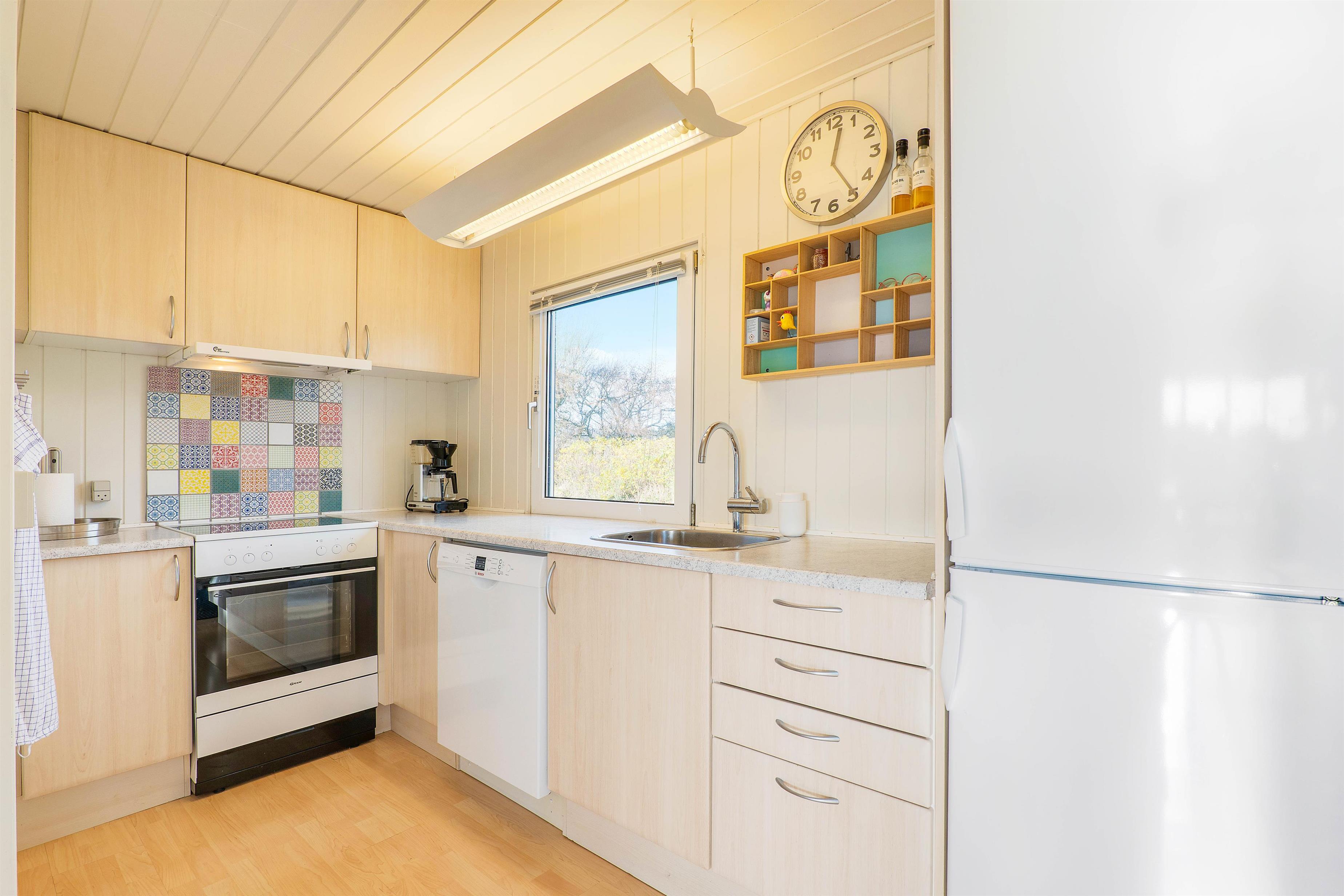 Foruden brændeovnen er der også en varmepumpe i sommerhuset, som på energivenlig vis sørger for, at I altid har et godt indeklima med gode temperaturer. Desuden er der en opvaskemaskine i køkkenet, der sørger for opvasken efter madlavningen.