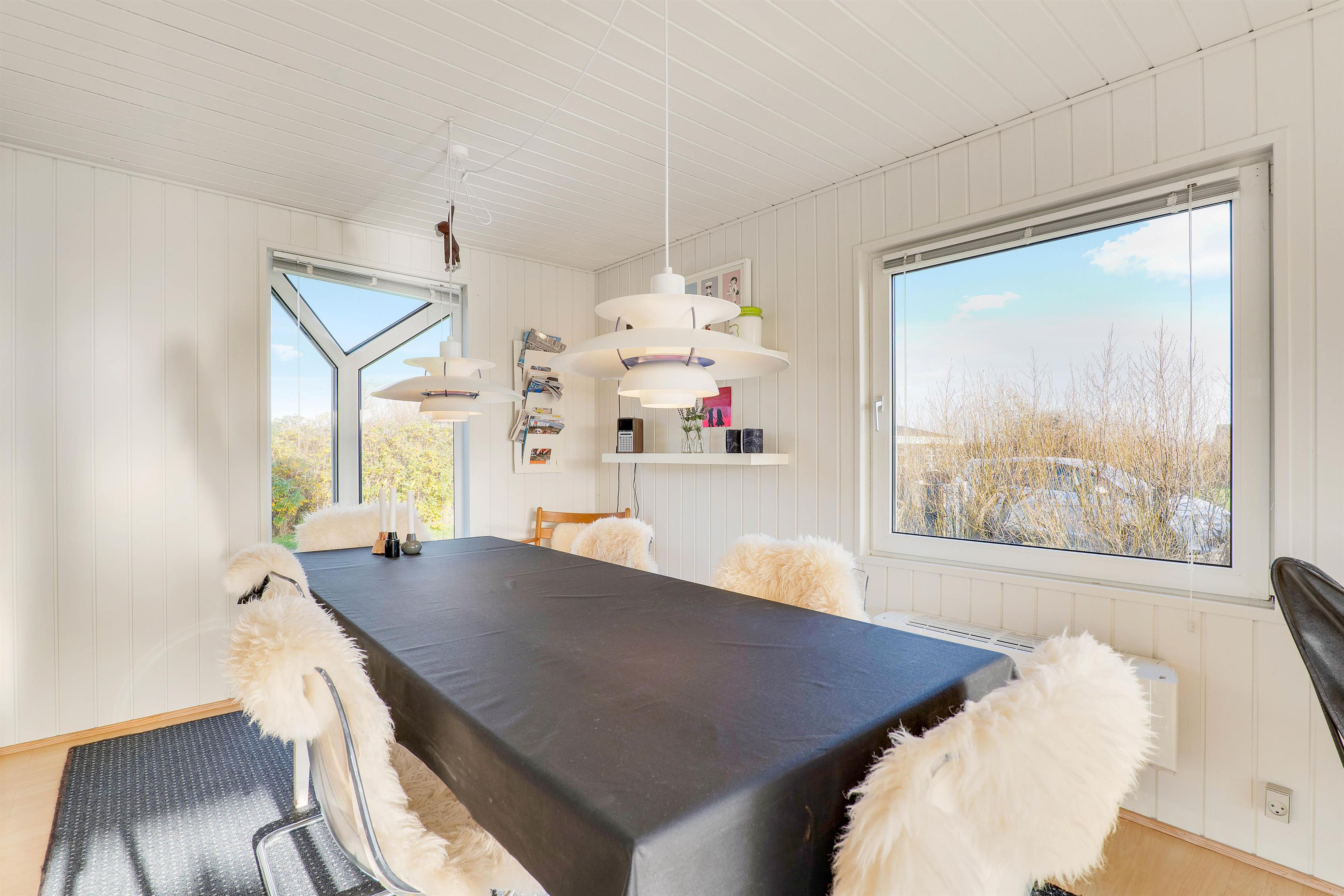 Sommerhuset på Solvej 38 danner rammen om jeres næste ferie, og der er garanti for, at det bliver en hyggelig en af slagsen. I sommerhuset er der nemlig en lys og hyggelig indretning, der sammen med det skønne lysindfald skaber en helt fantastisk ferieatmosfære.