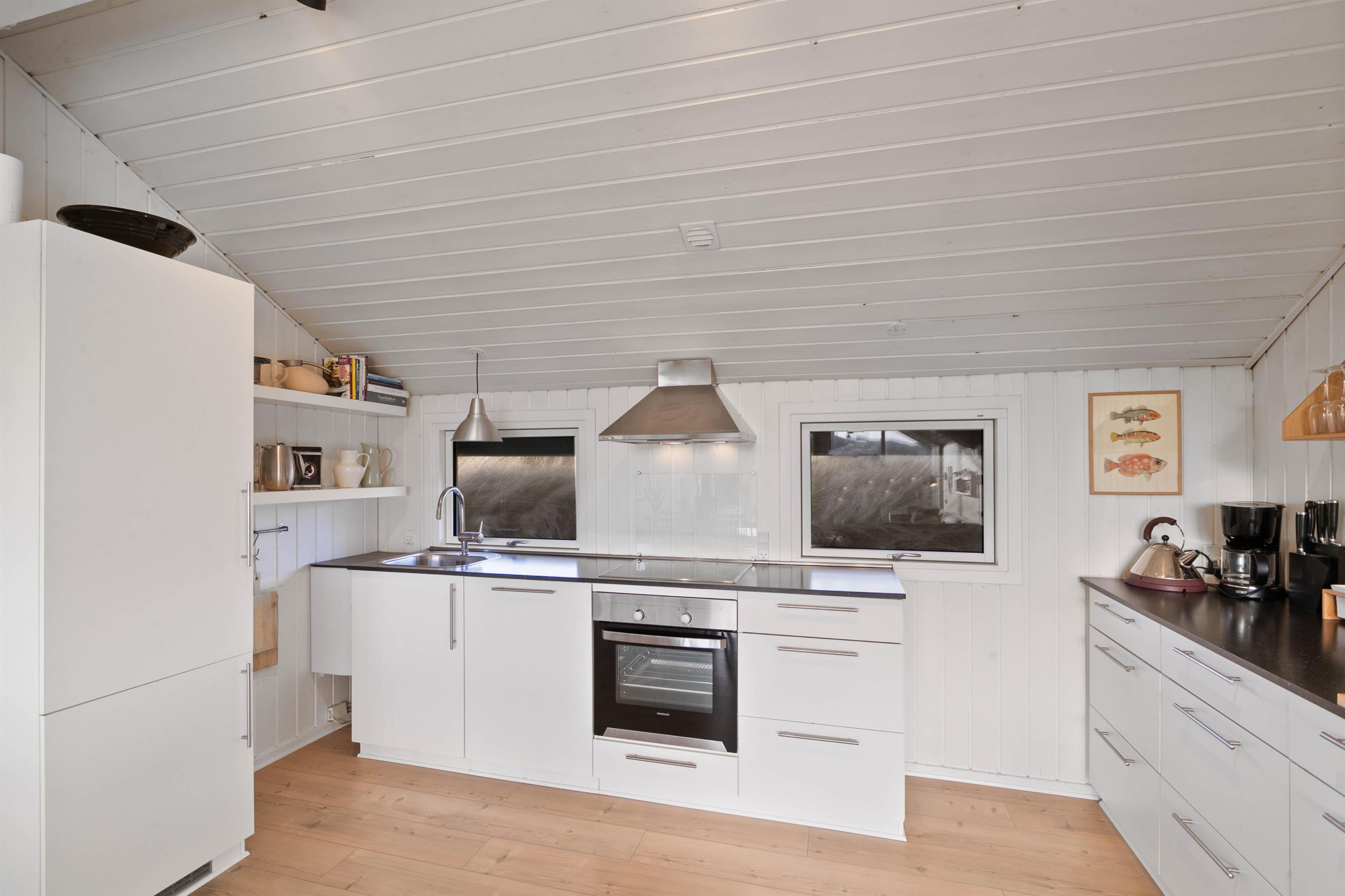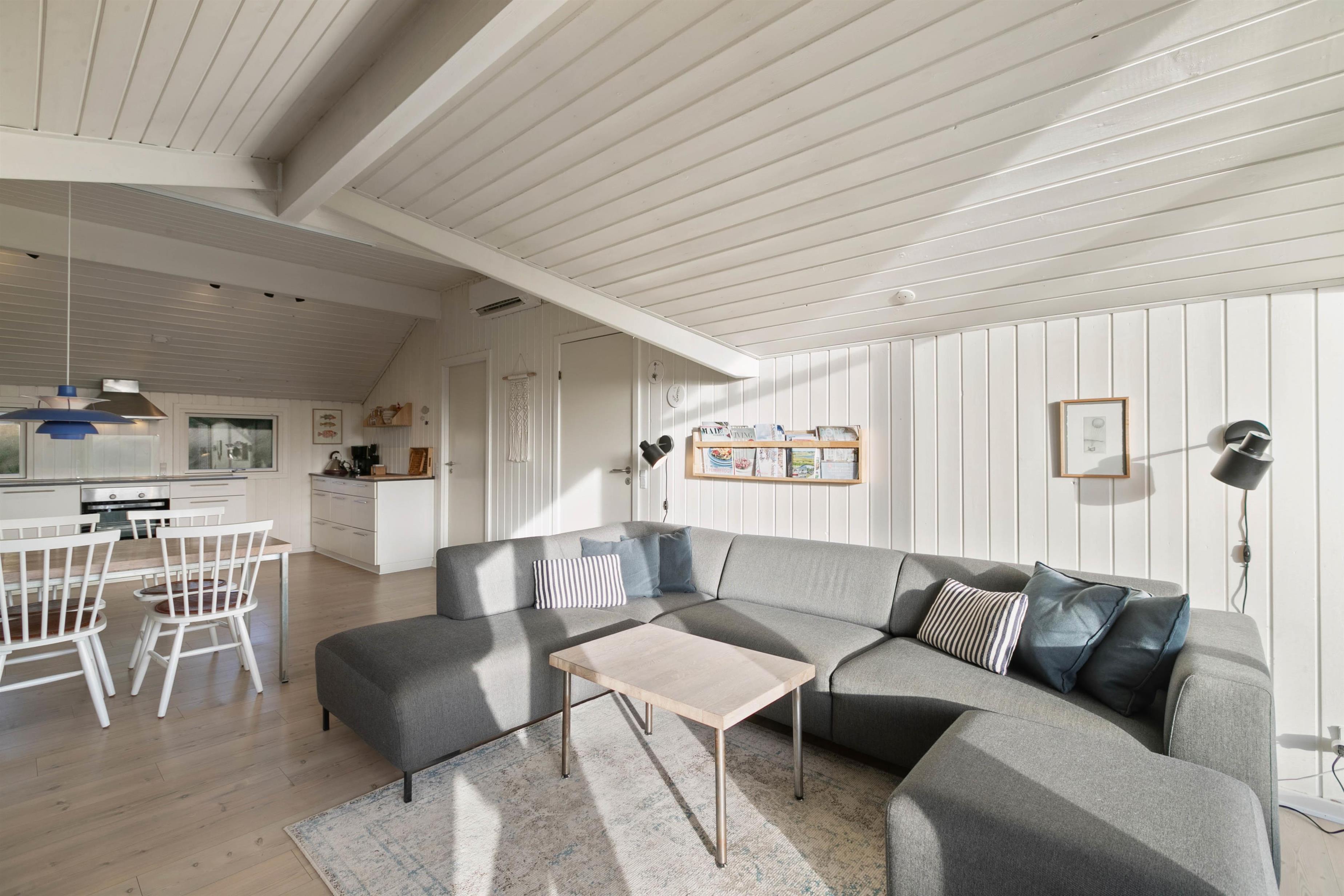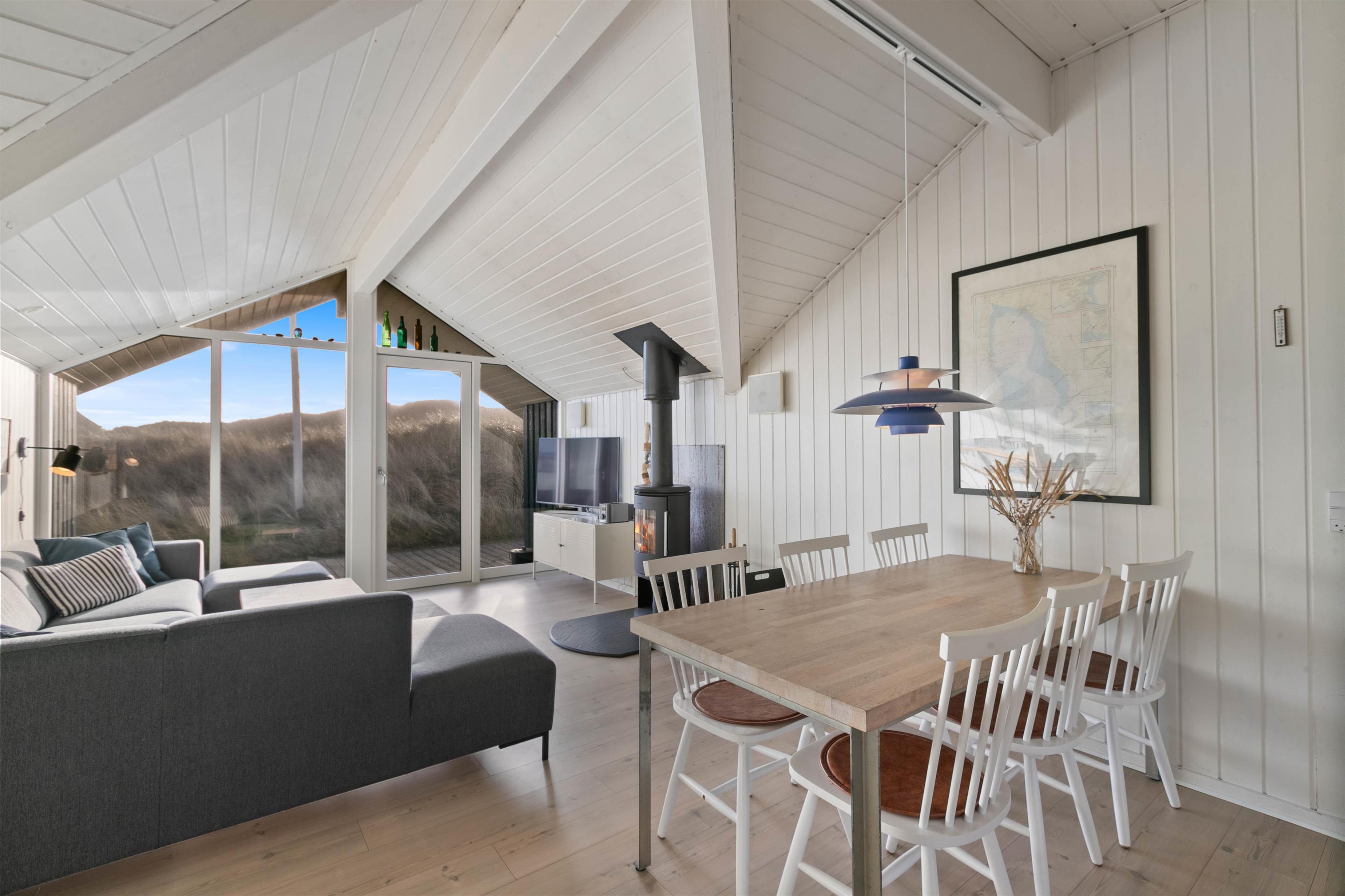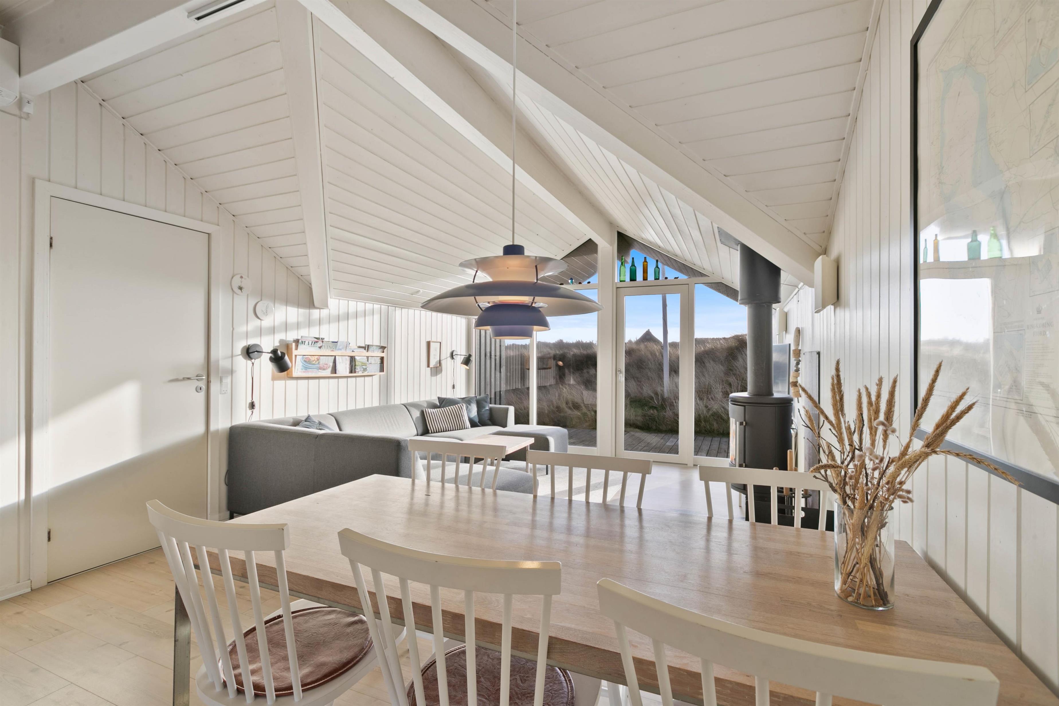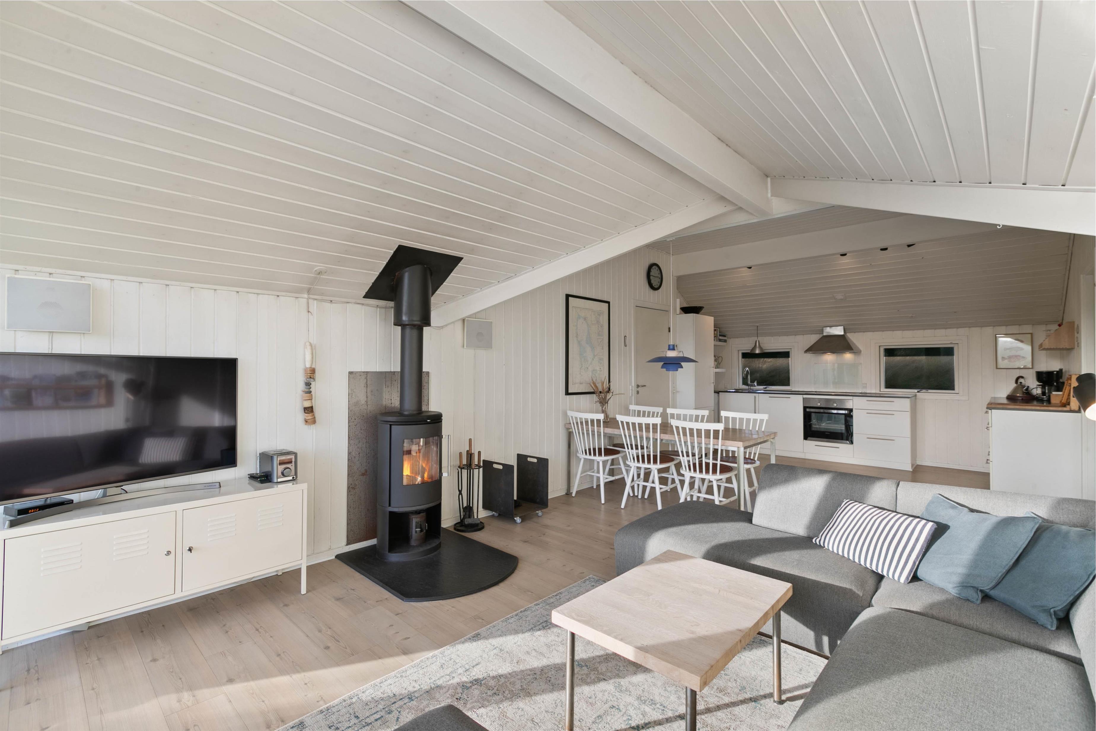 Dette dejlige klassiske sommerhus er det helt rigtige til den lille familie, som gerne vil holde strandferie ved Vesterhavet. Det er rigtigt dejligt indrettet, med hyggeligt køkkenalrum og stue, hvidmalede og indrettet med gode møbler – det helt rigtige sted at nyde familielivet, sammen lave mad og hygge med spil ved spisebordet eller samles i den store bekvemme sofa til en god film. Naturligvis afrundes billedet af den klassiske hyggespredende brændeovn, der er et must i den kolde årstid, når mørket sænker sig og vinden suser fra havet.