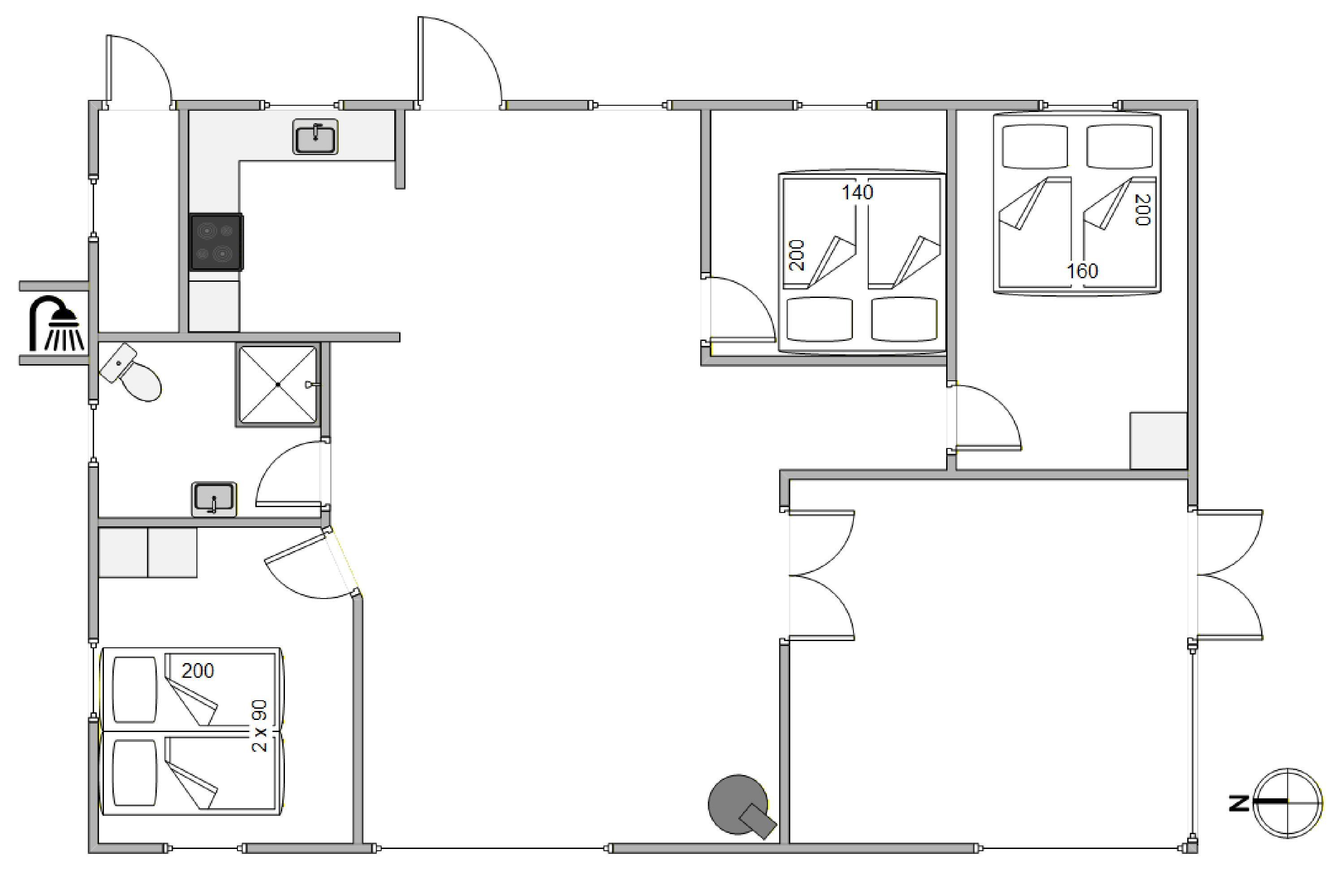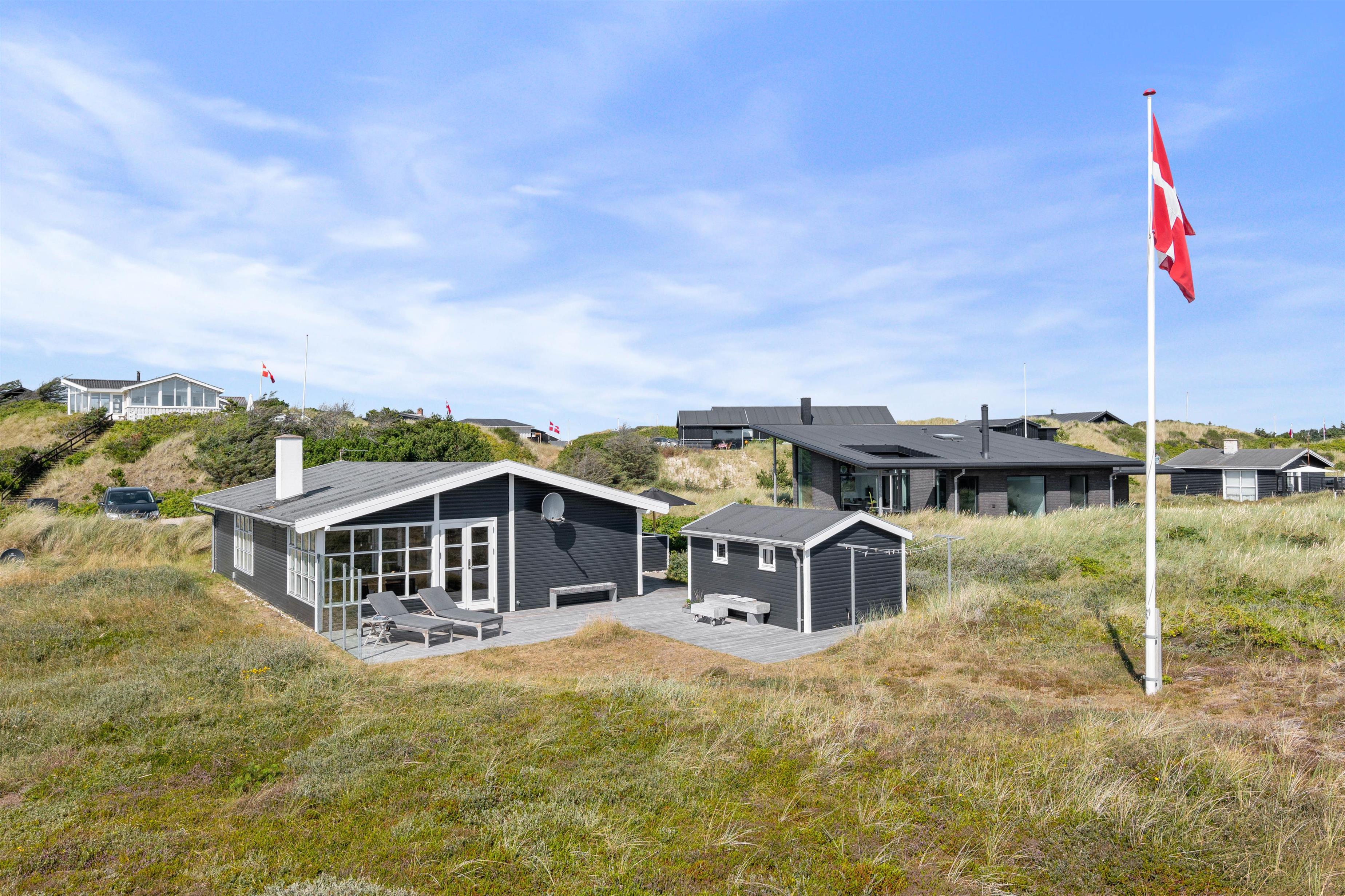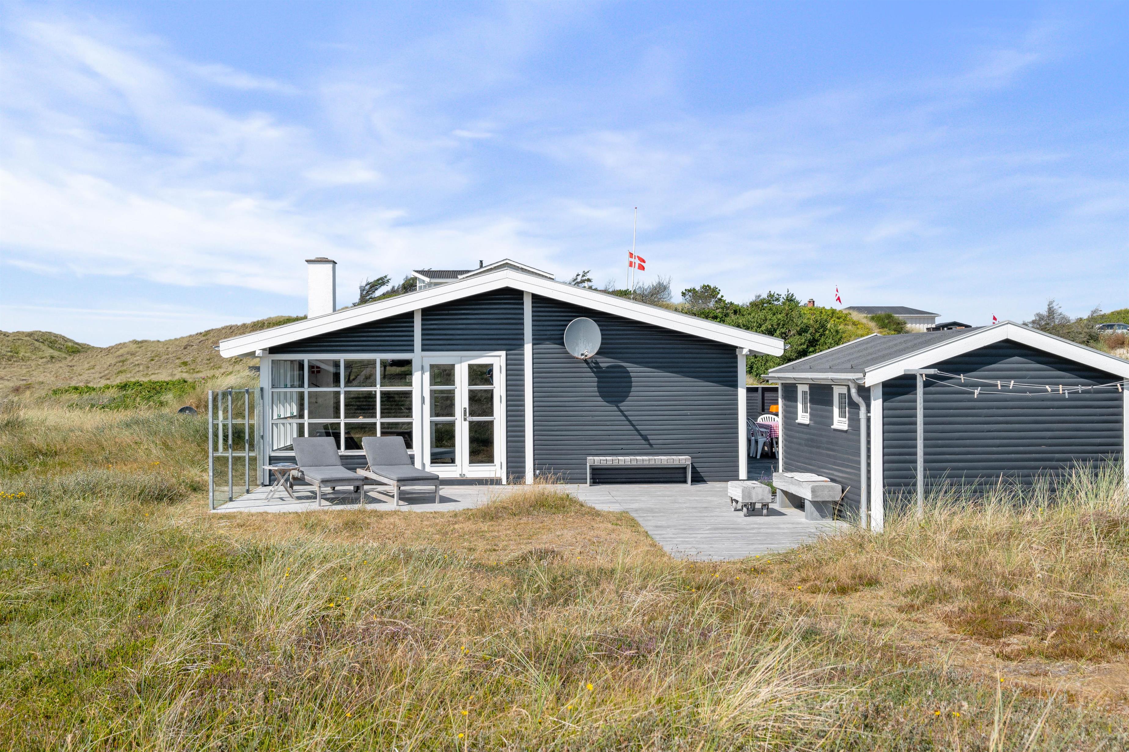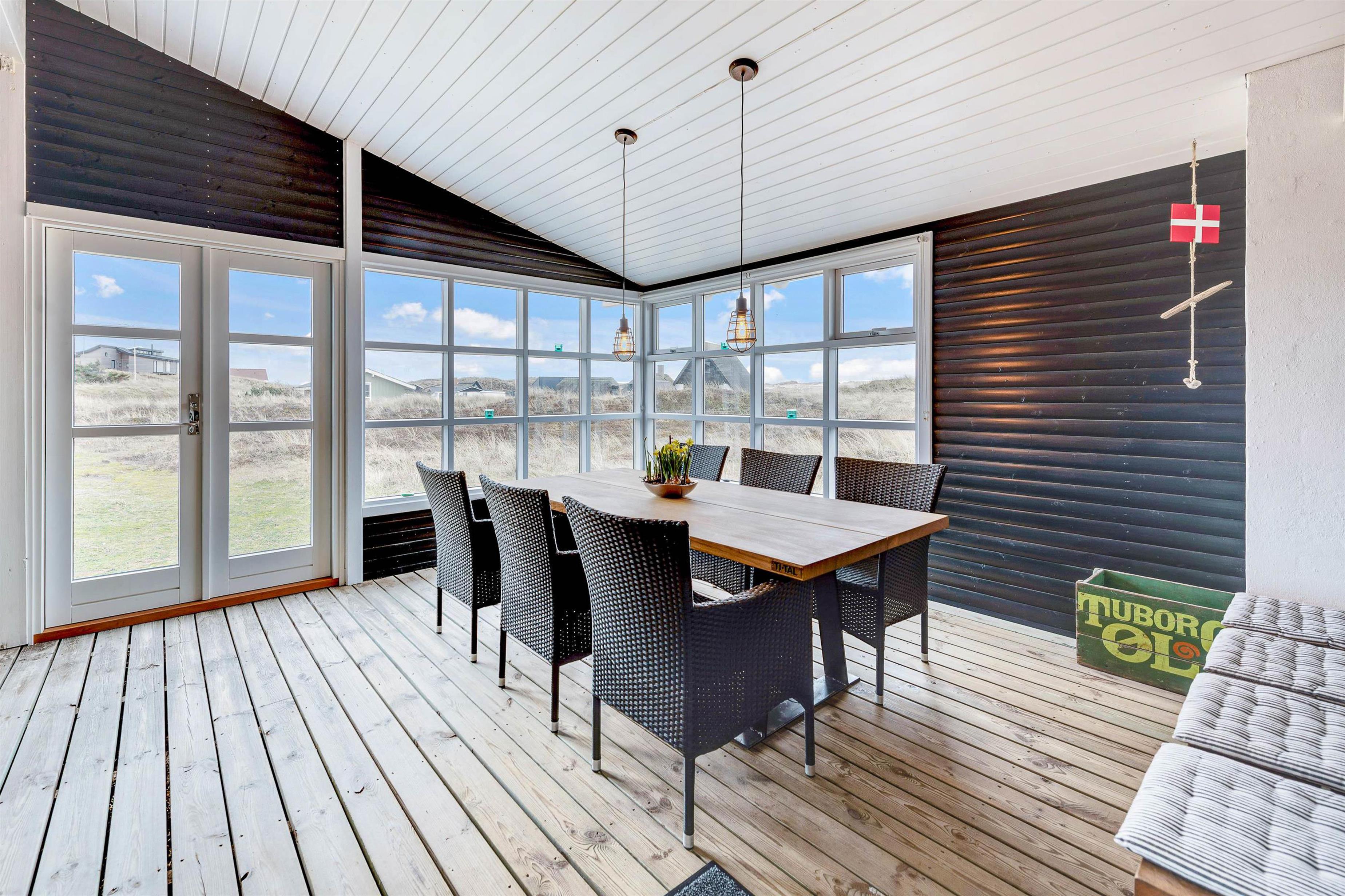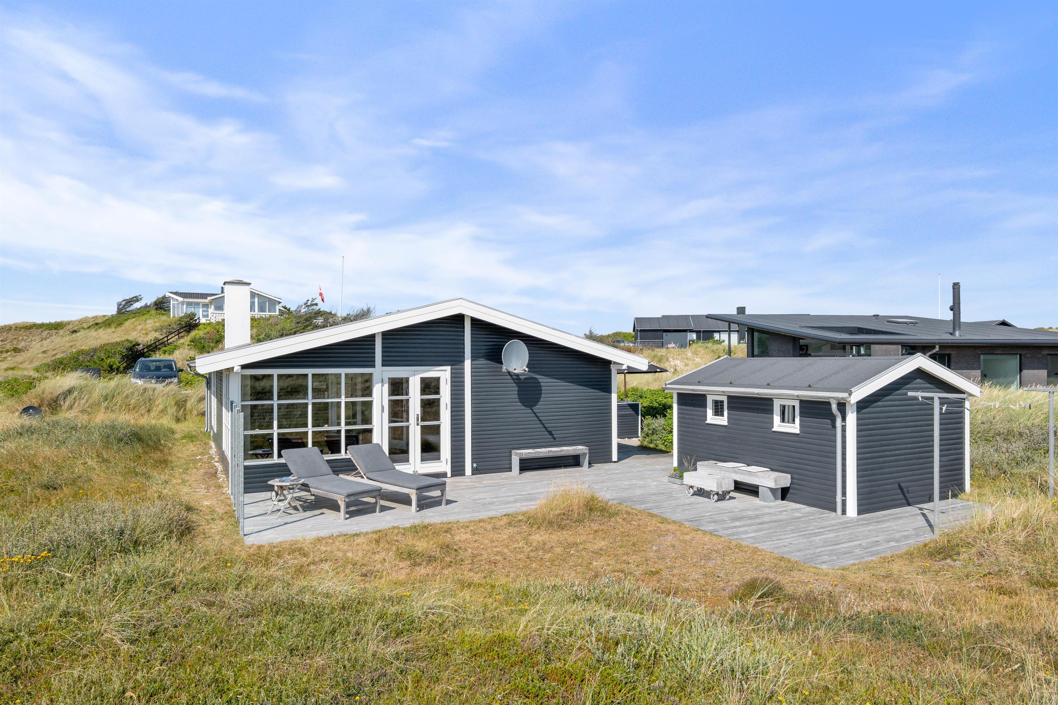 Udover den afskærmede og lukkede terrasse, så kan I også følge træterrassen hele vejen rundt om huset, og finde flere forskellige hyggelige lækroge, hvor I på de gode sommerdage kan sætte jer til rette med en god bog og noget koldt til ganen. En praktisk udebruser sikrer også, at I kan skylle sandet af efter en dag på stranden. Bruseren er til benyttelse i månenderne fra april til November.