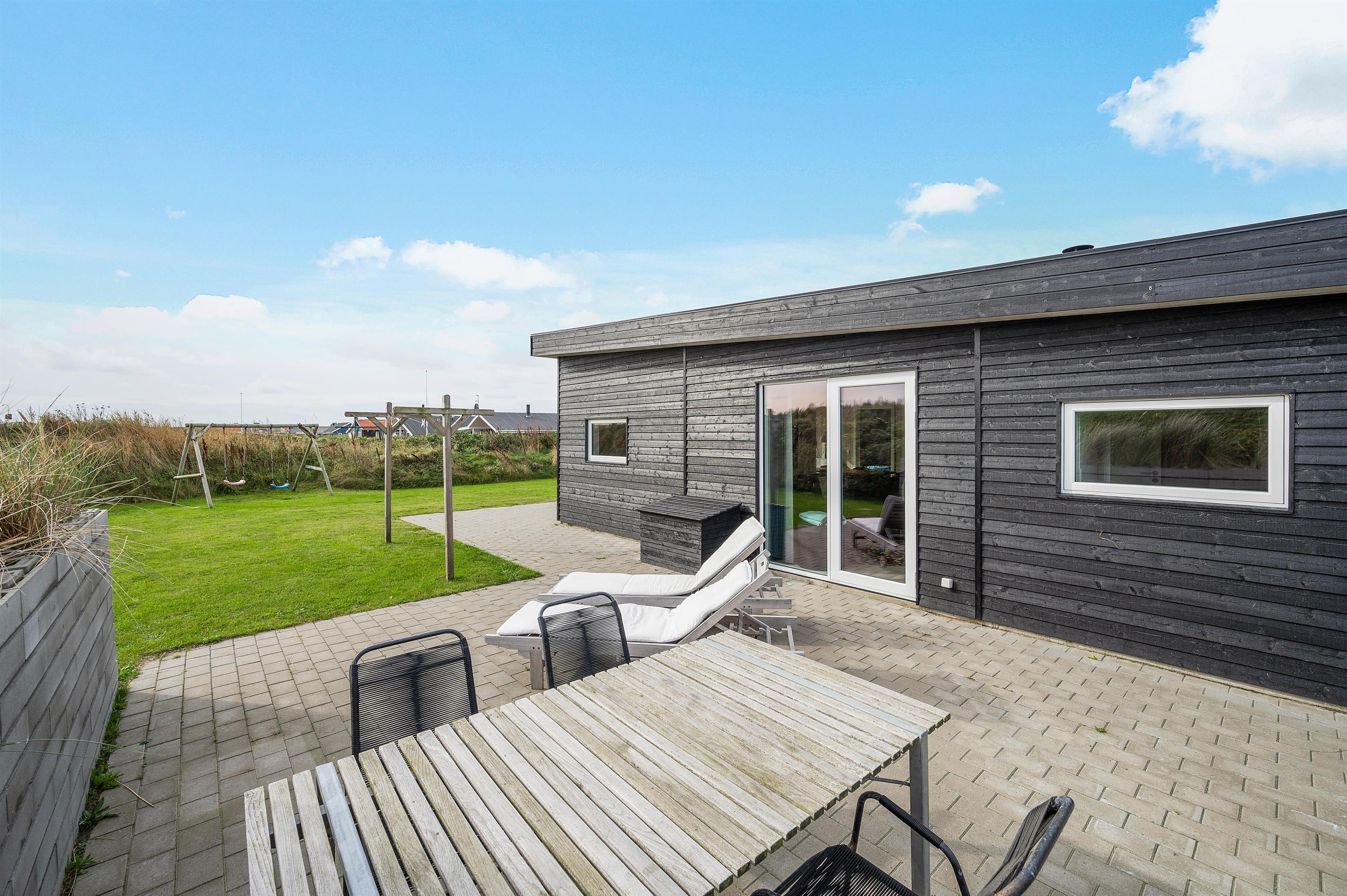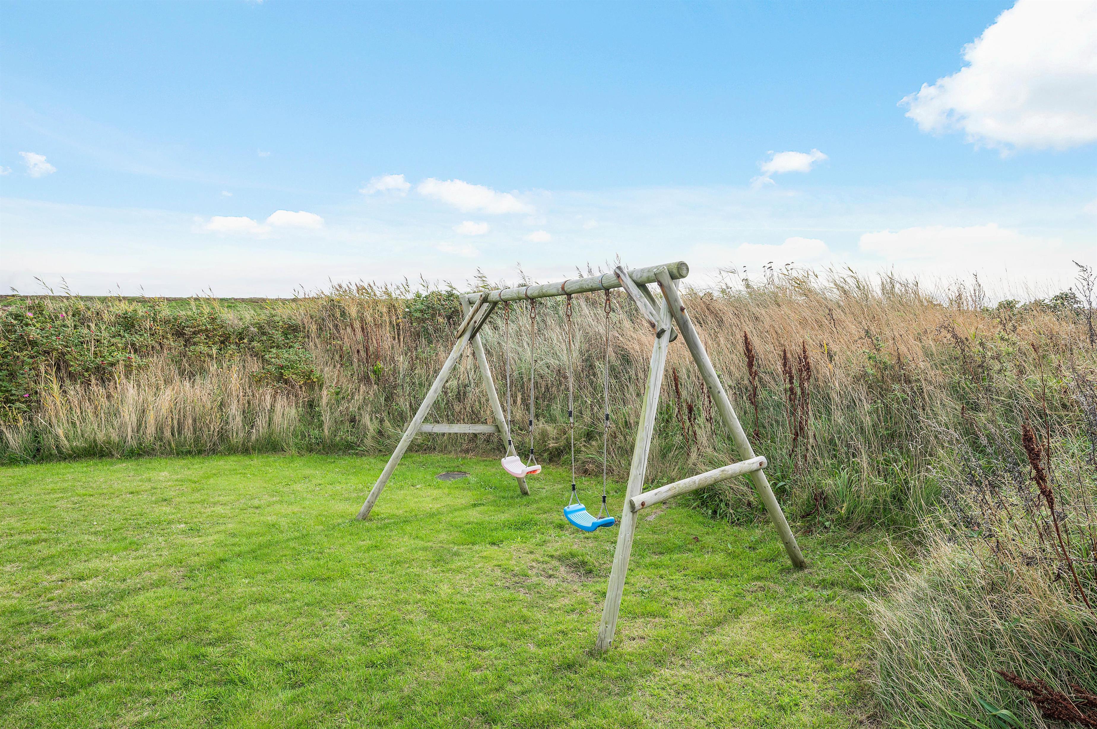 Sand Holms Vej 1 ligger på en dejlig grund med både sandkasse og gynger til børnene. Der er ikke langt til stranden og I kan sågar tage turen til den livlige ferieby Søndervig til fods.