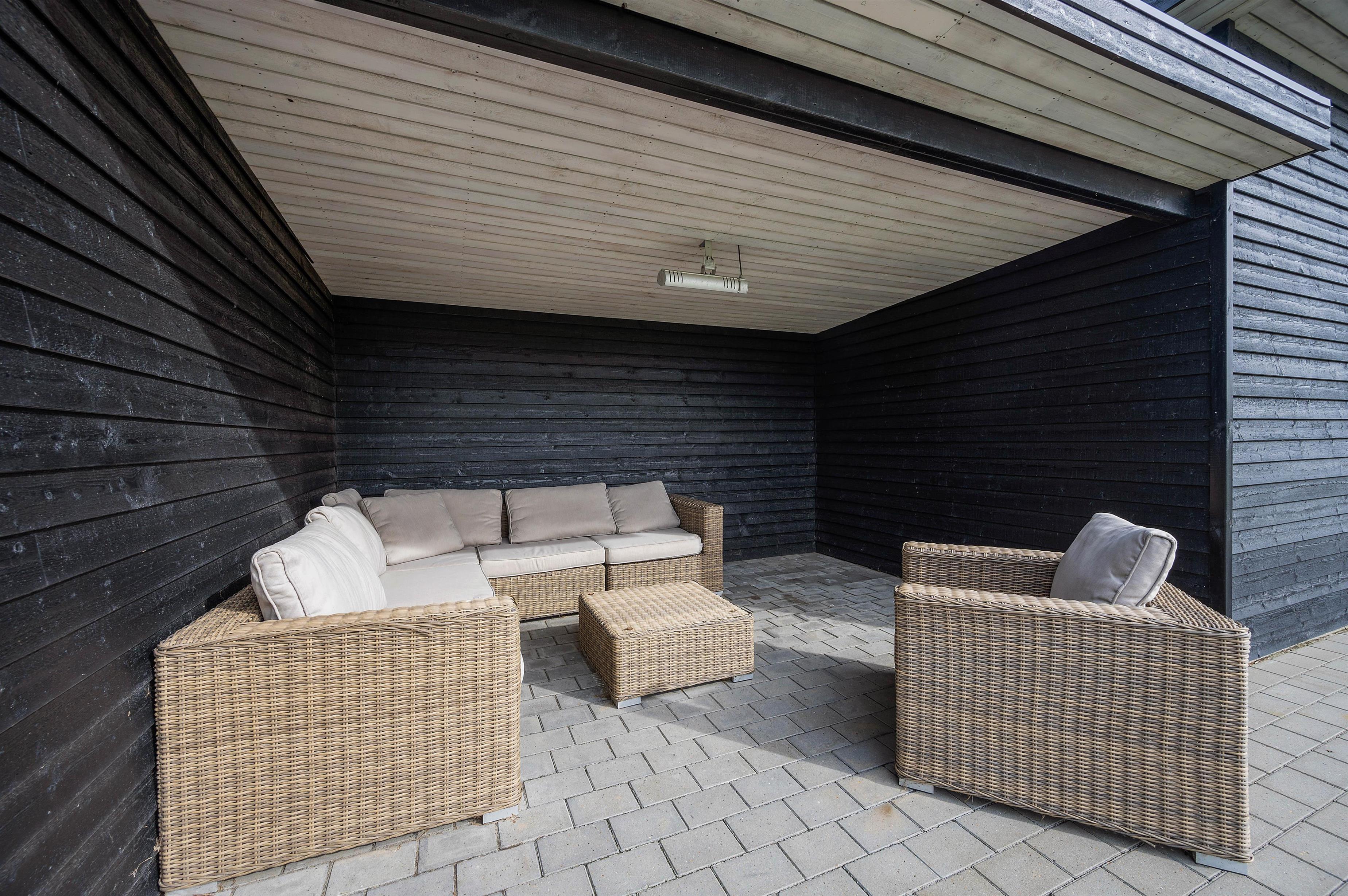Imens stuens store lækre lædersofa indenfor lokker til at lægge fødderne op og gøre sig det bekvemt med en god bog eller til at tænde for det store fladskærms-tv og se en feelgod-film, lokker et ligeså hyggeligt sofahjørne udenfor til at tilbringe mange hyggelige timer. For optimal udnyttelse af terrassen står der nemlig i et dejligt overdækket læhjørne et lækkert udendørs loungesæt til jeres rådighed. Her er ikke kun det perfekte sted til eftermiddagskaffen, men også til at finde sammen om aftenen med en god flaske rødvin, lidt ost og kiks og diskutere verdenssituationen, - eller måske bare småsnakke lidt om feriedagens hændelser, og lægge planer for den følgende dag.