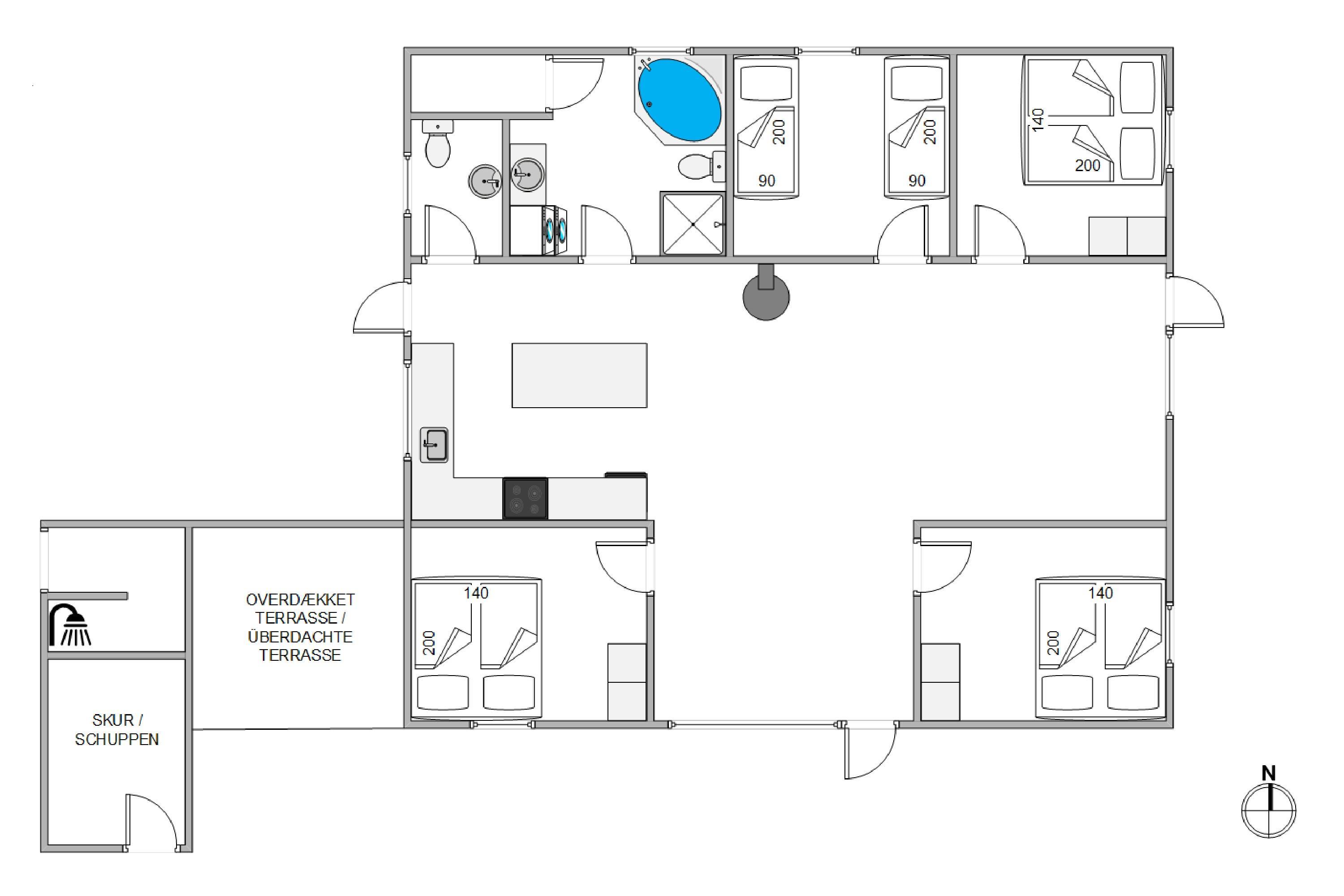 Når op til 8 personer vil holde ferie sammen, er det vigtigt, at der ikke opstår badeværelseskø. På Sand Holms Vej 1 har I ved siden af det store lækre badeværelse med egen spa naturligvis et ekstra gæste-wc. Det er helt uden bekymringer, I efter en lang dag med frisk vesterhavsluft kan fylder spaen op og lade jer glide ned i det varme vand. Her kan I slappe fuldstændigt af og bare nyde at have rigtig ferie.
